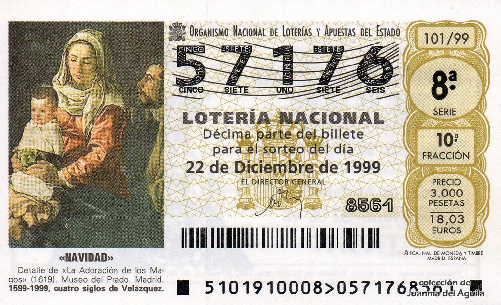 Es en el año 2000 cuando apareció impreso en la parte superior del décimo el texto “LOTERIAS Y APUESTAS DEL ESTADO” junto con el escudo de España. En 2001, en el reverso del décimo apareció un texto que indicaba que los premios del sorteo de Navidad, a partir del 1 de marzo de 2002, se cobrarían en euros.