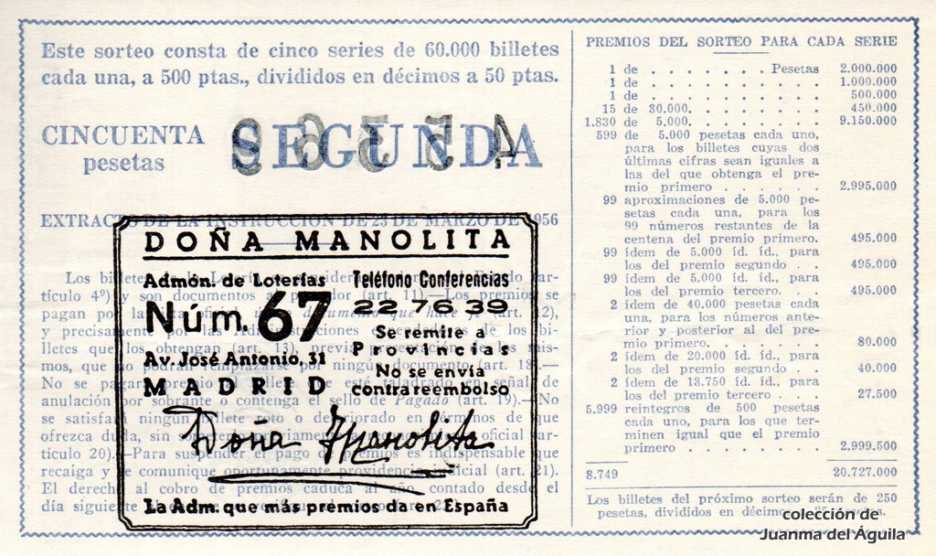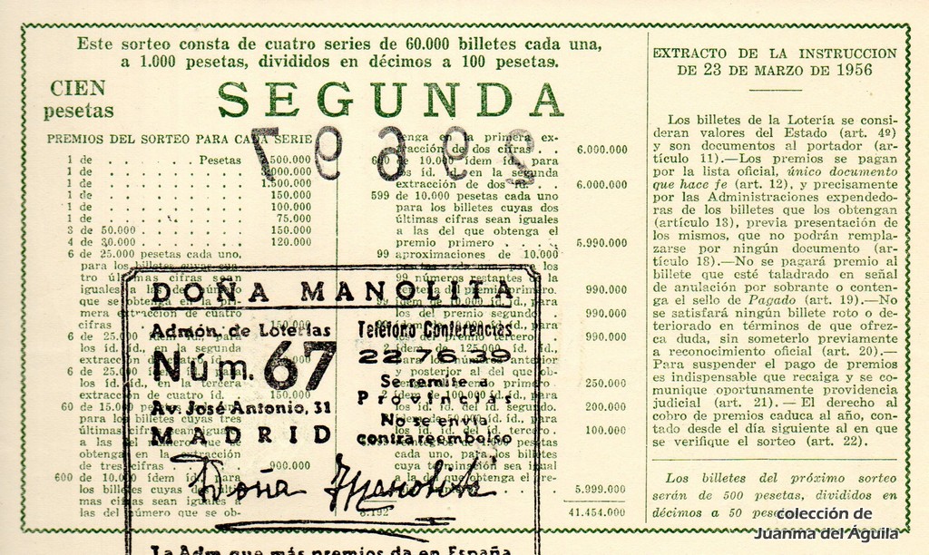 La firma que aparece en los décimos de este año es la del Director General de Tributos Especiales Don Francisco Rodríguez Cirugeda.