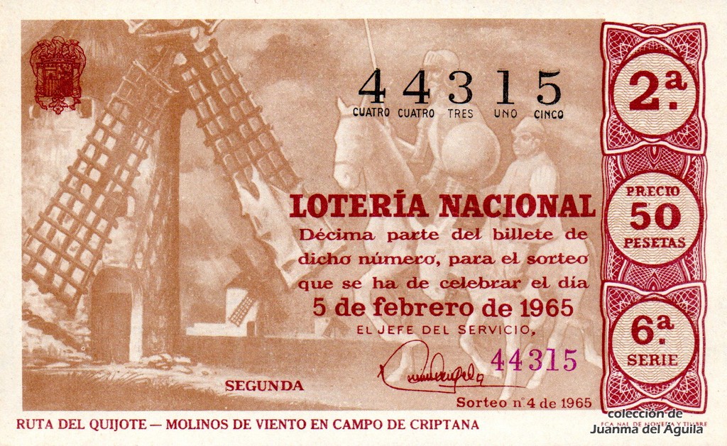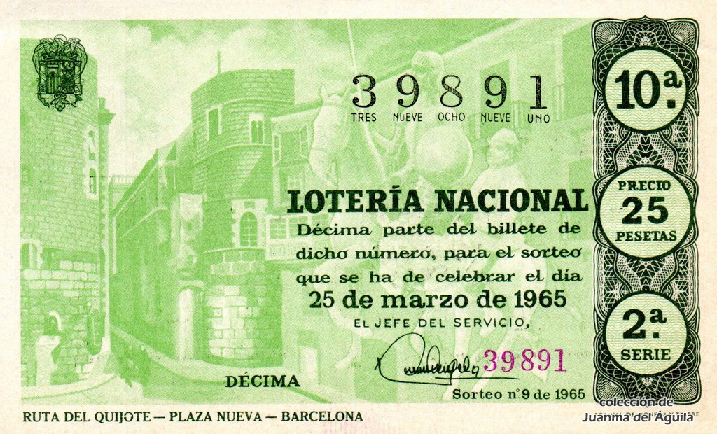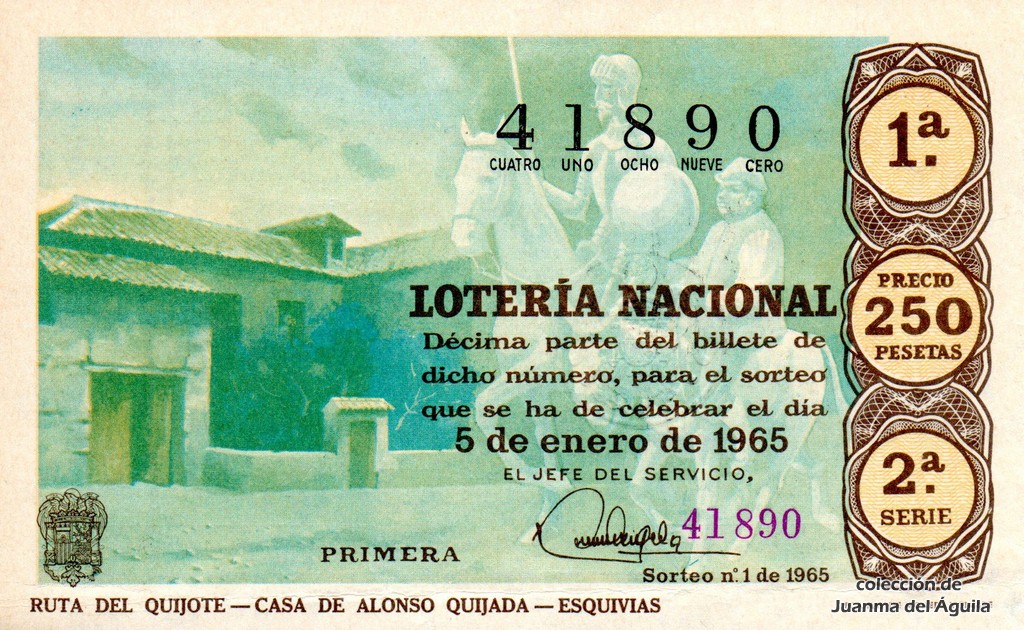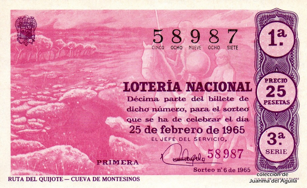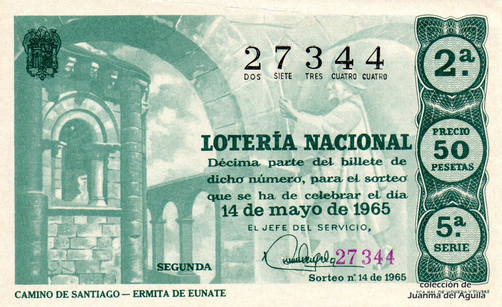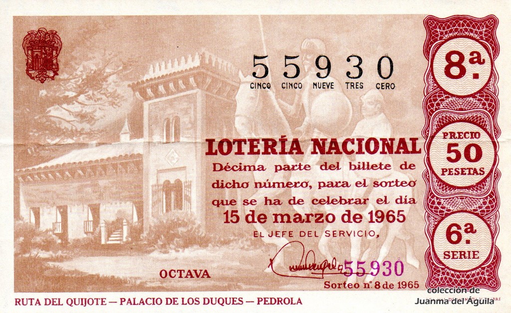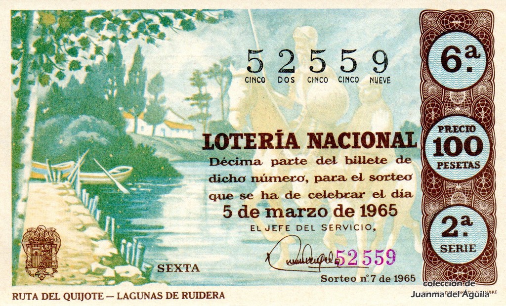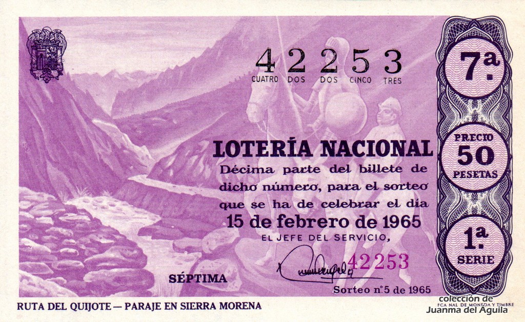 La Lotería Nacional del año 1965 está dedicado a "Rutas Españolas".
