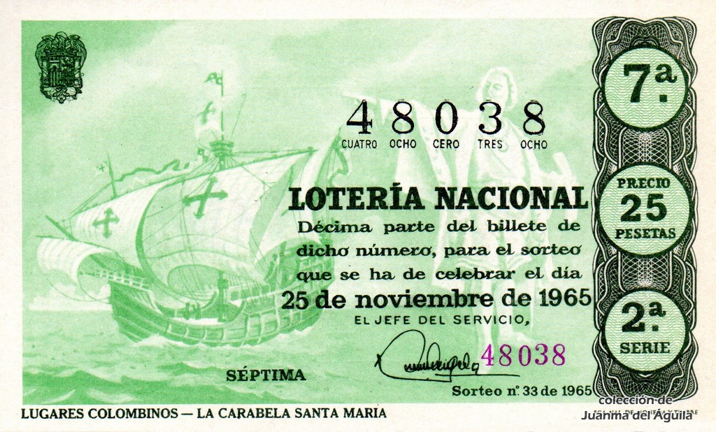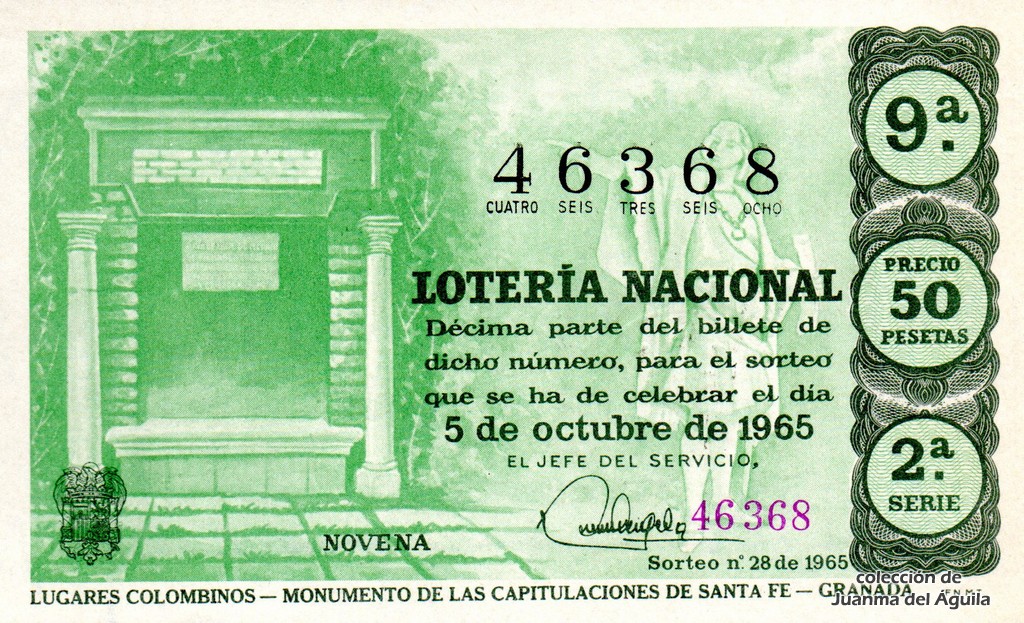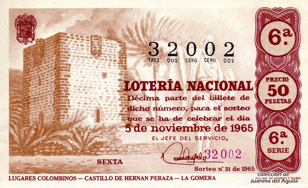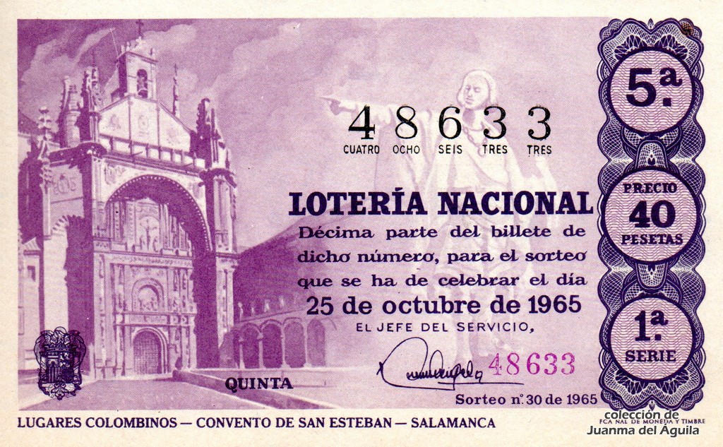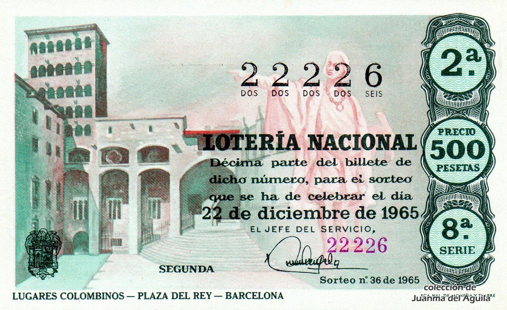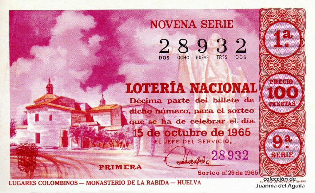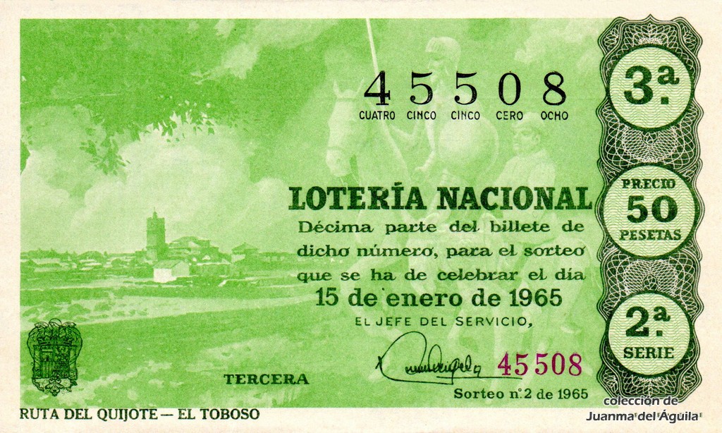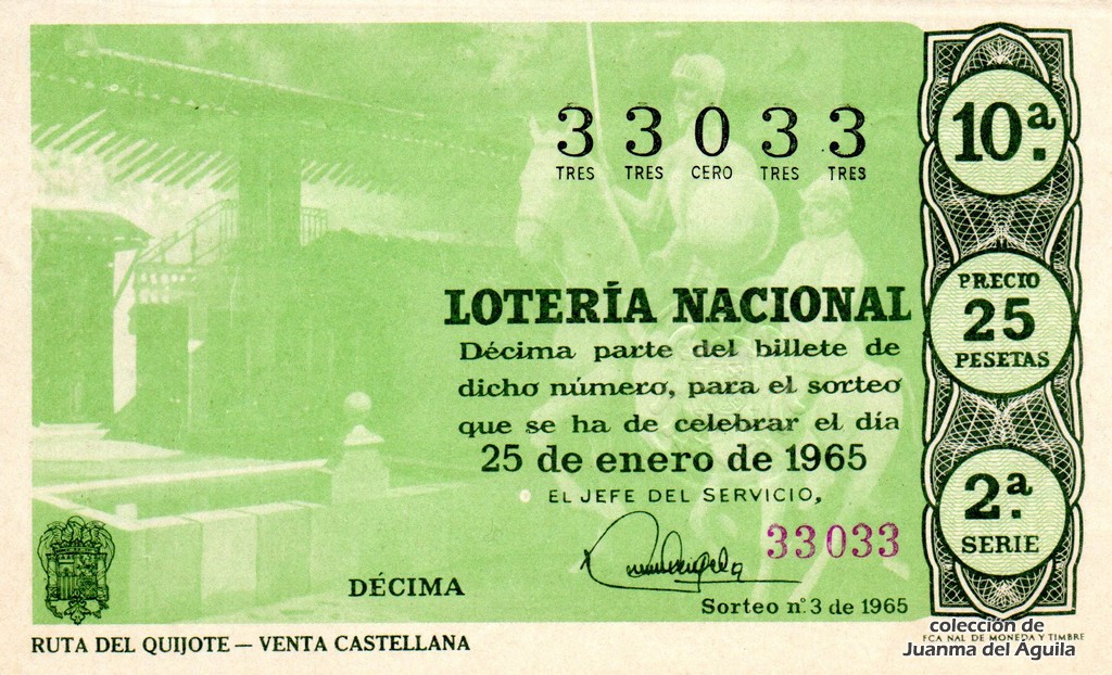 La Lotería Nacional del año 1965 está dedicado a "Rutas Españolas".