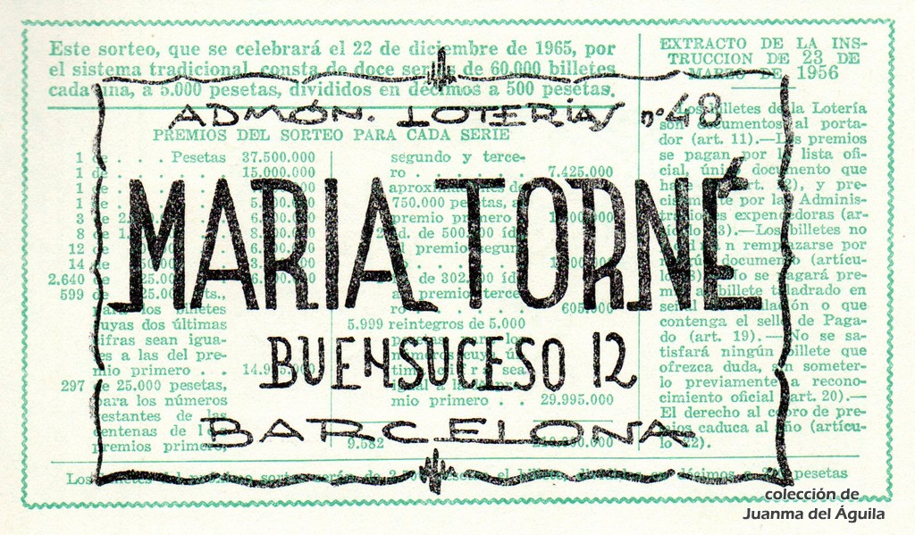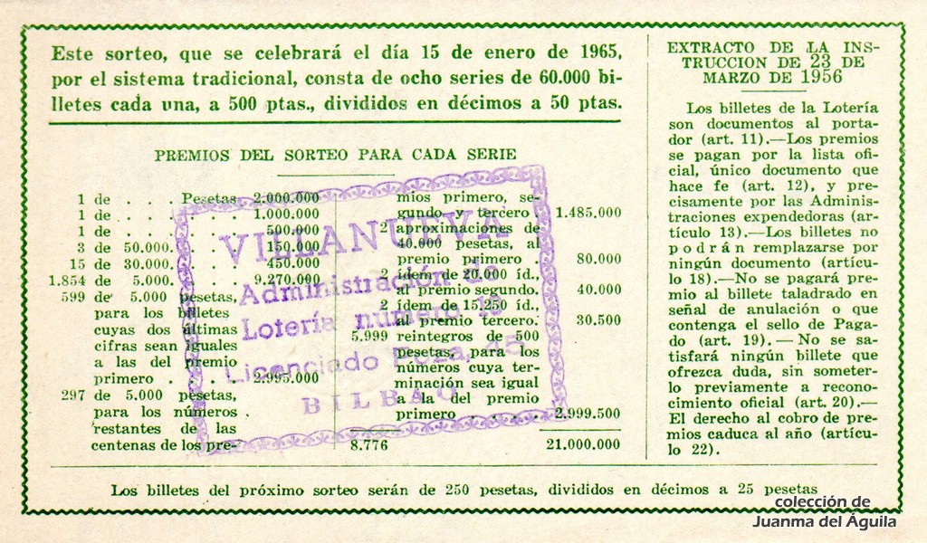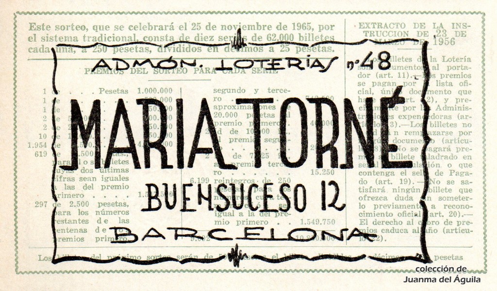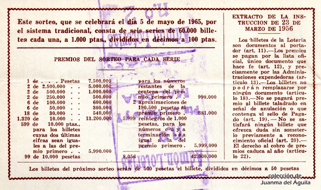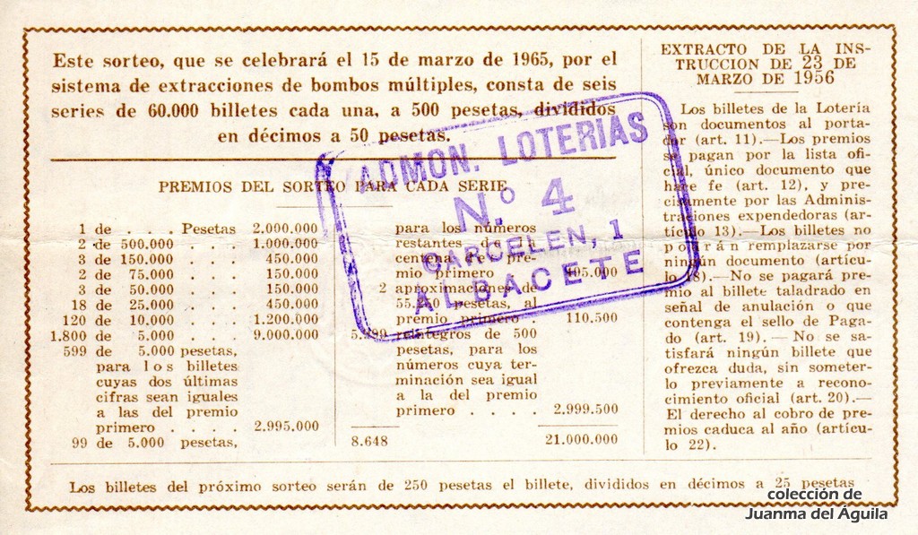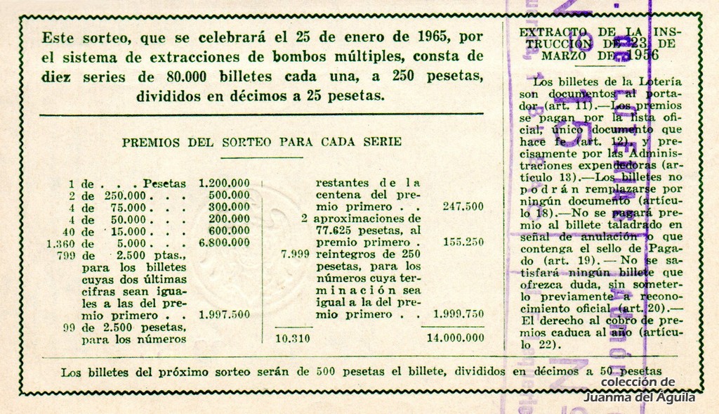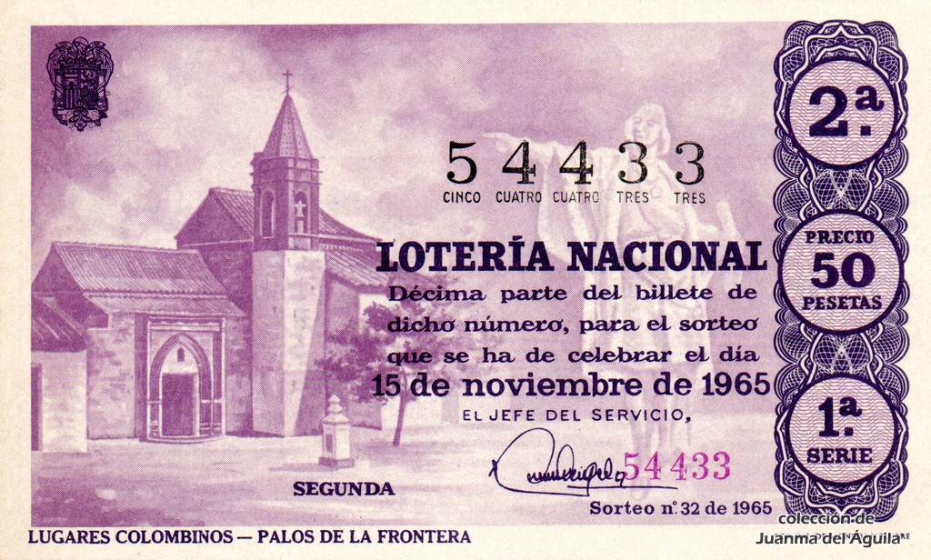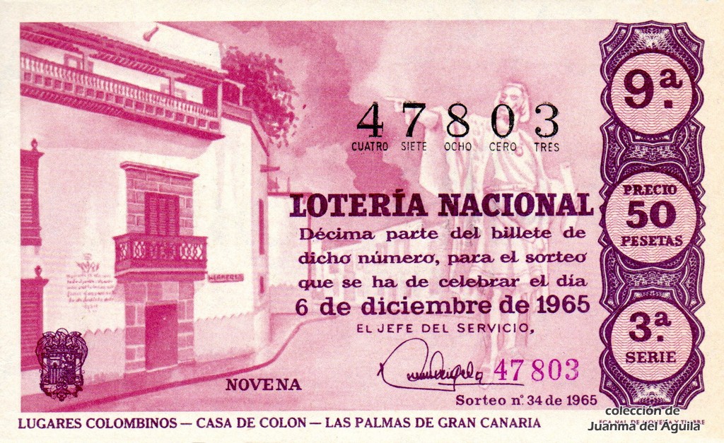 La Lotería Nacional del año 1965 está dedicado a "Rutas Españolas".