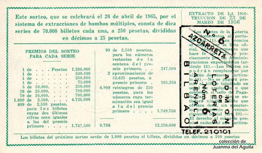 y el doble primer premio de 1.200.000 pesetas adjudicado en el siguiente sorteo: