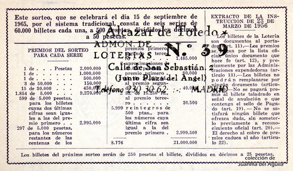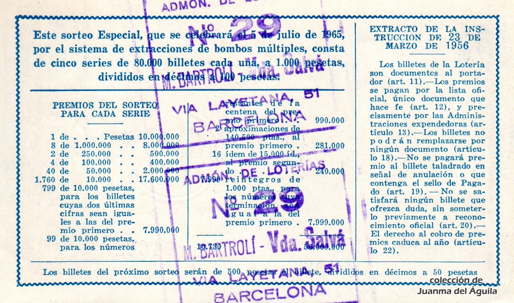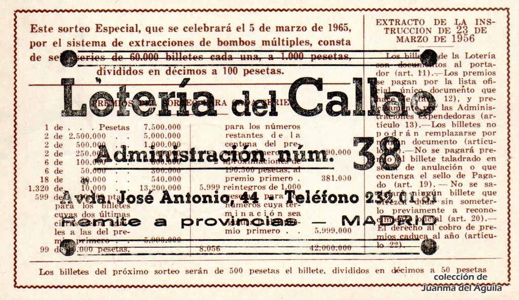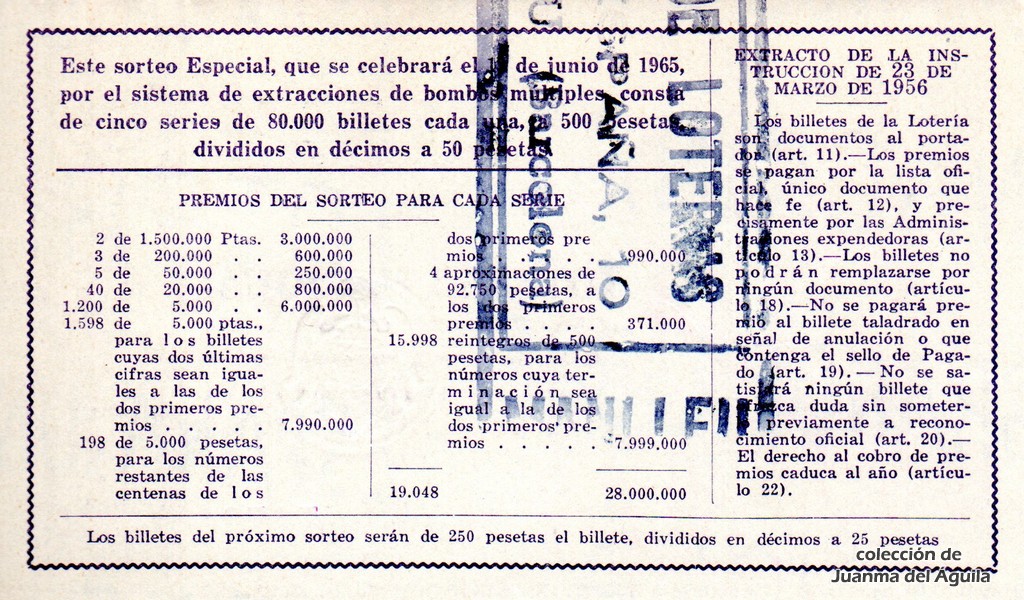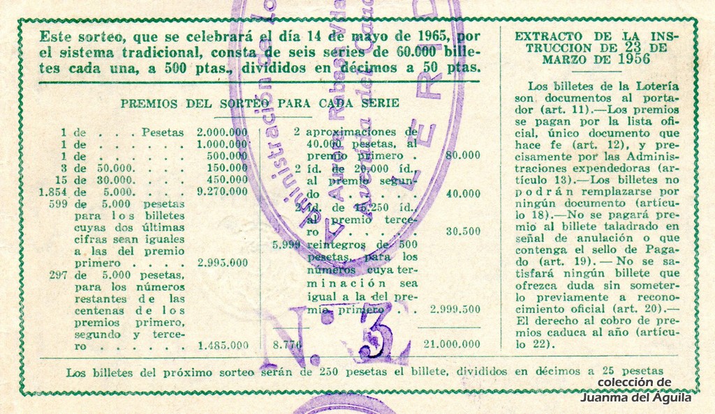 Como curiosidad destaca el doble primer premio de 1.500.000 pesetas adjudicado en los siguientes sorteos: