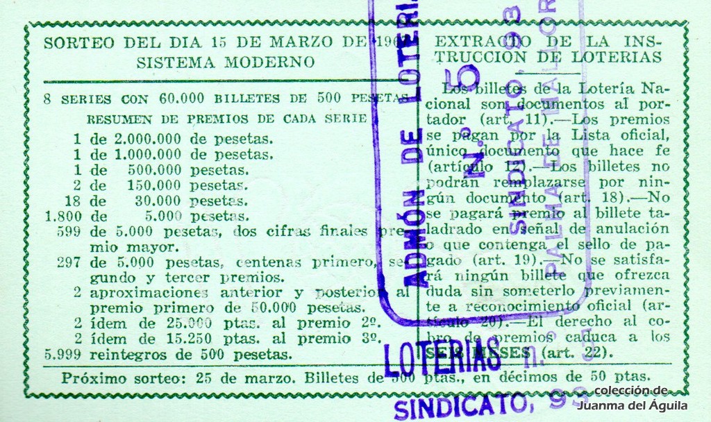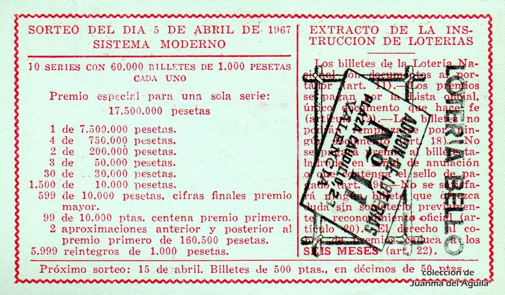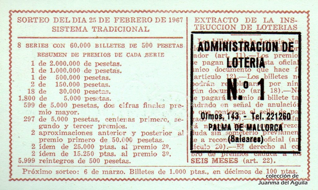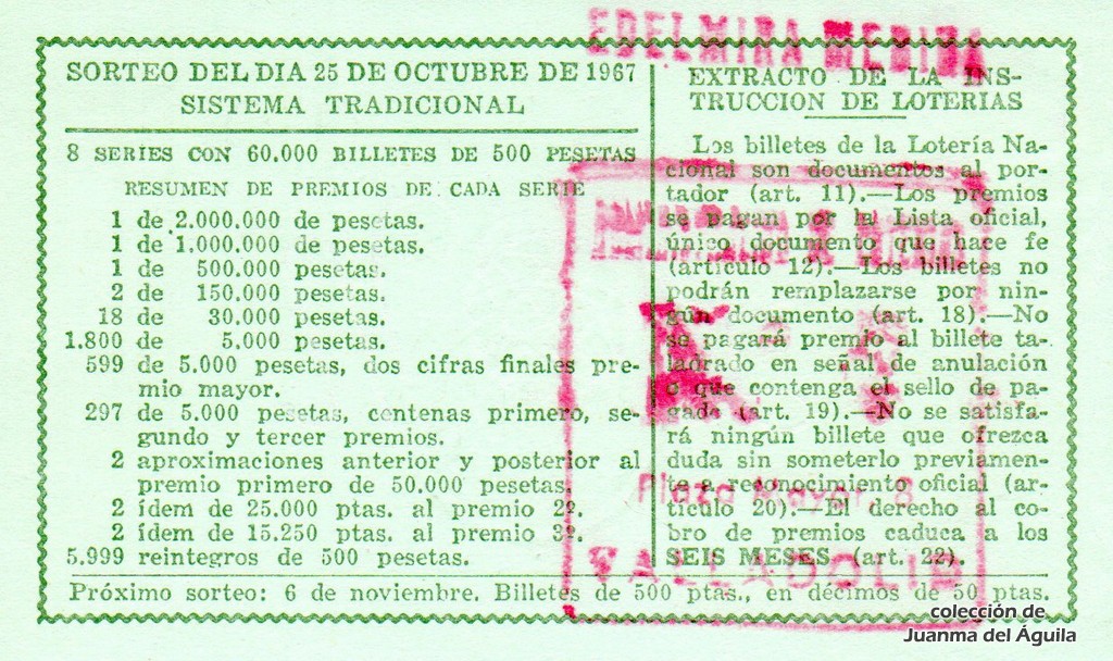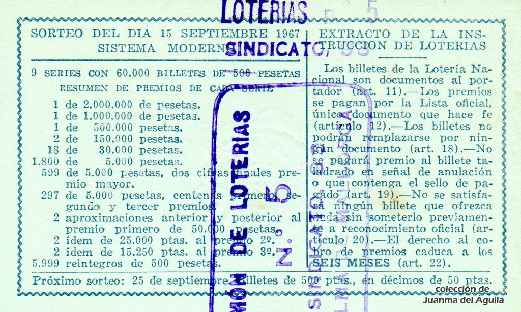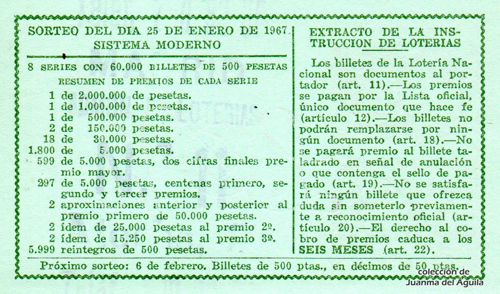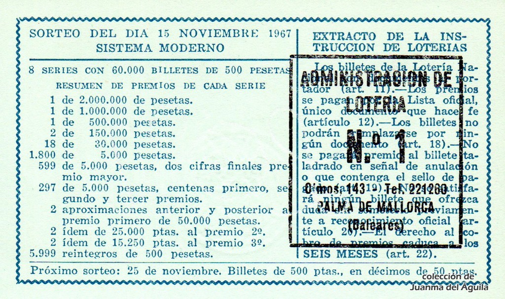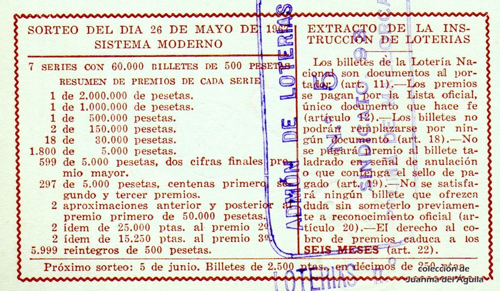 Como curiosidad destaca el doble primer premio de 2.000.000 de pesetas adjudicado en los siguientes sorteos con emisión de 100.000 billetes:
