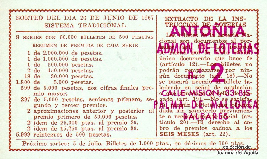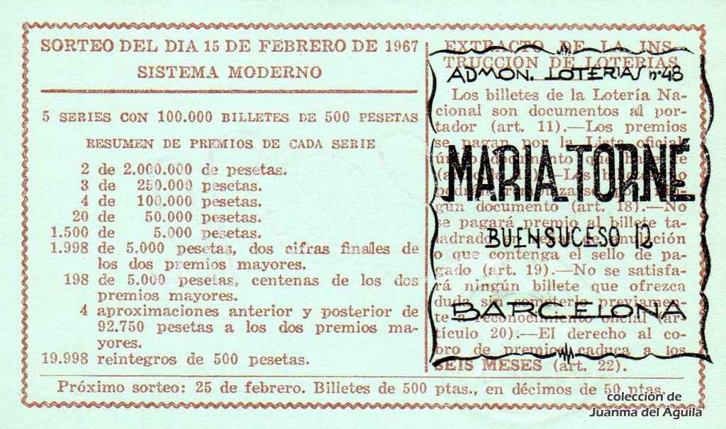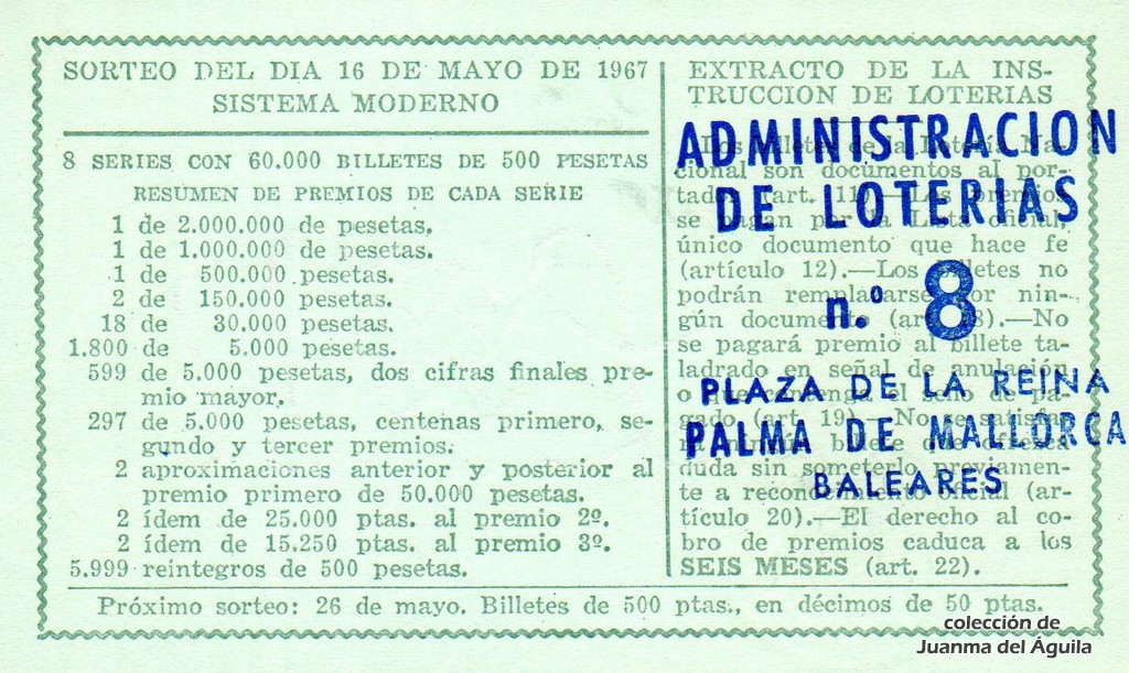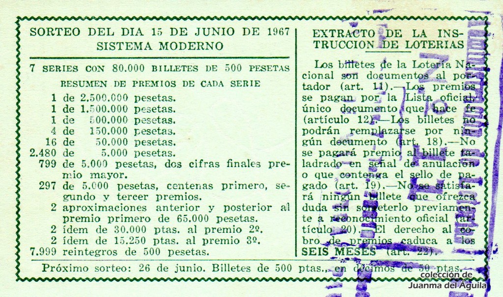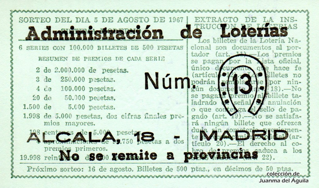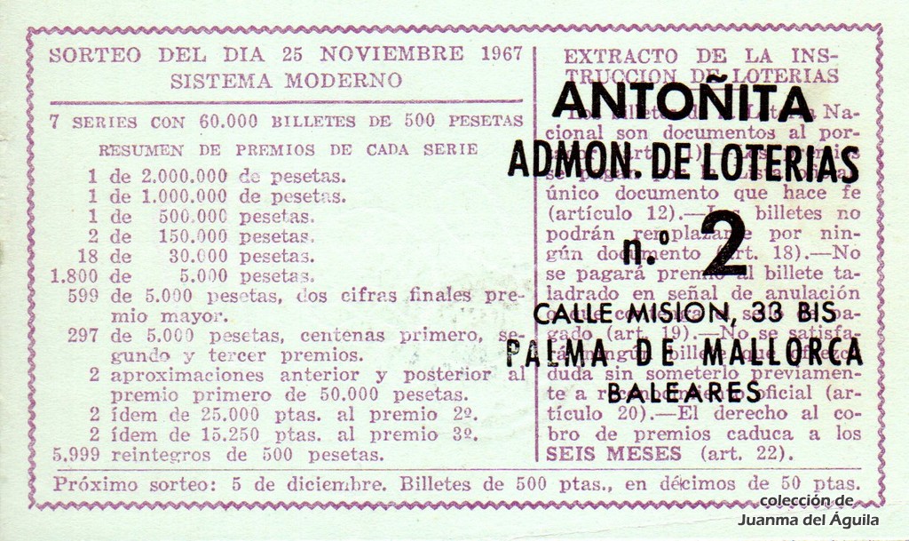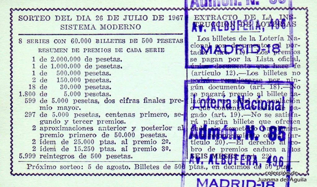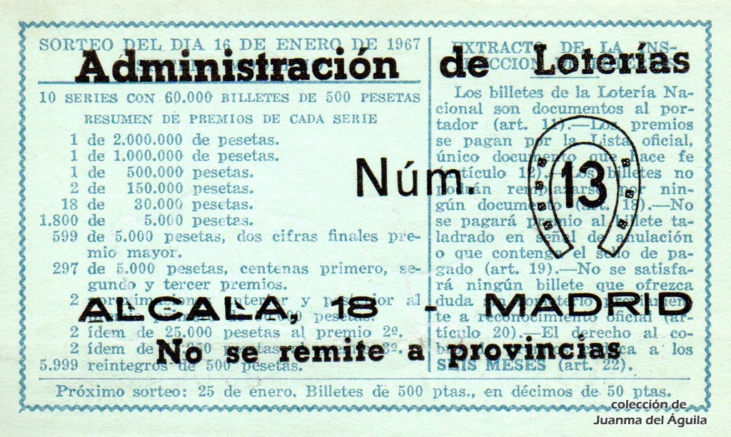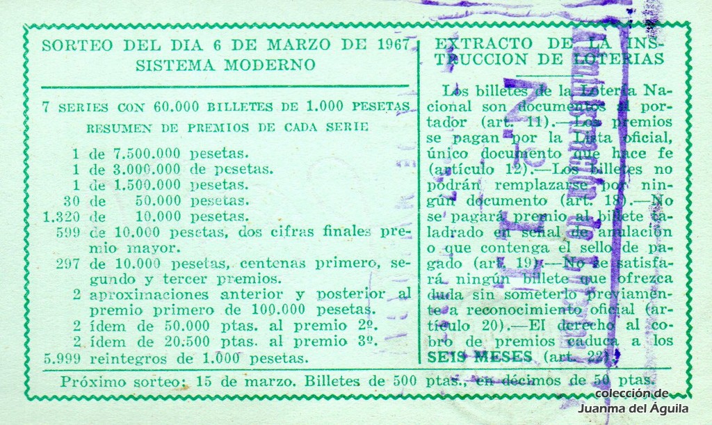 Como curiosidad destaca el doble primer premio de 2.000.000 de pesetas adjudicado en los siguientes sorteos con emisión de 100.000 billetes: