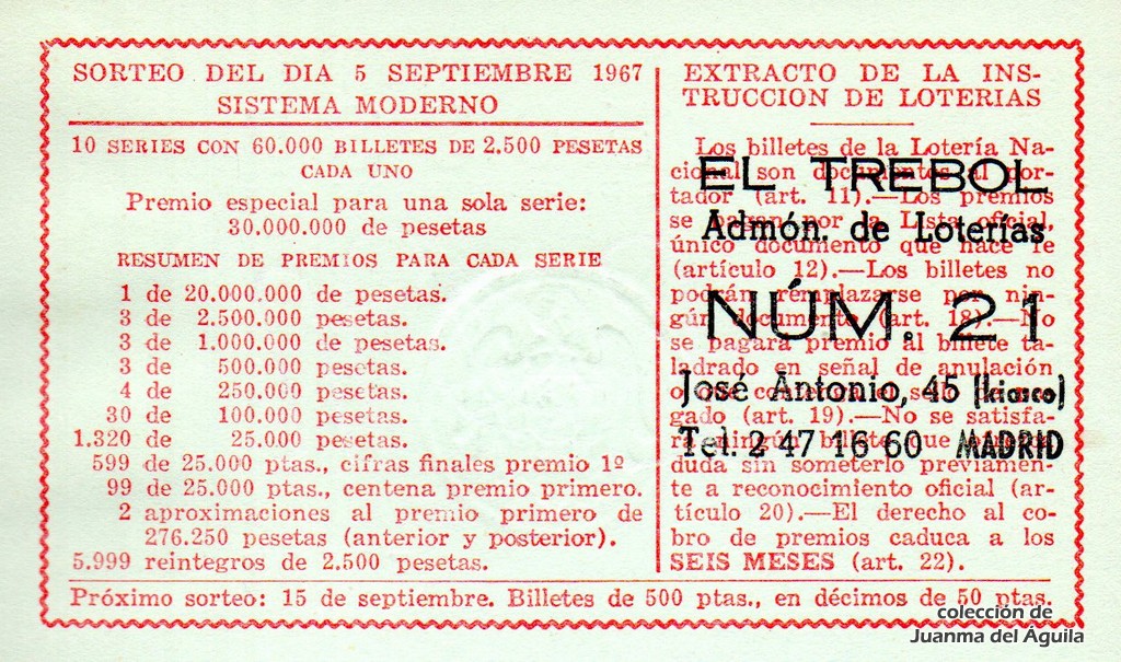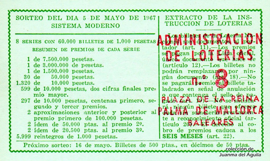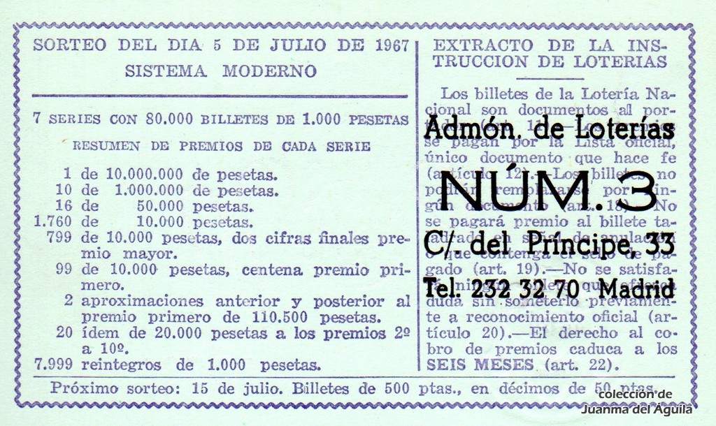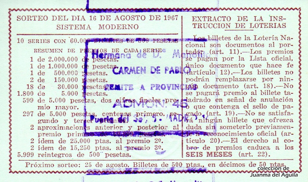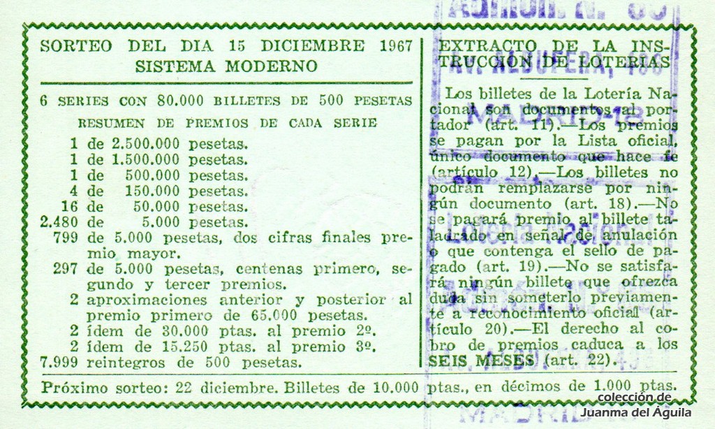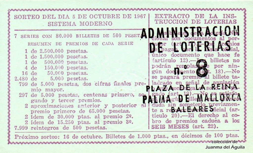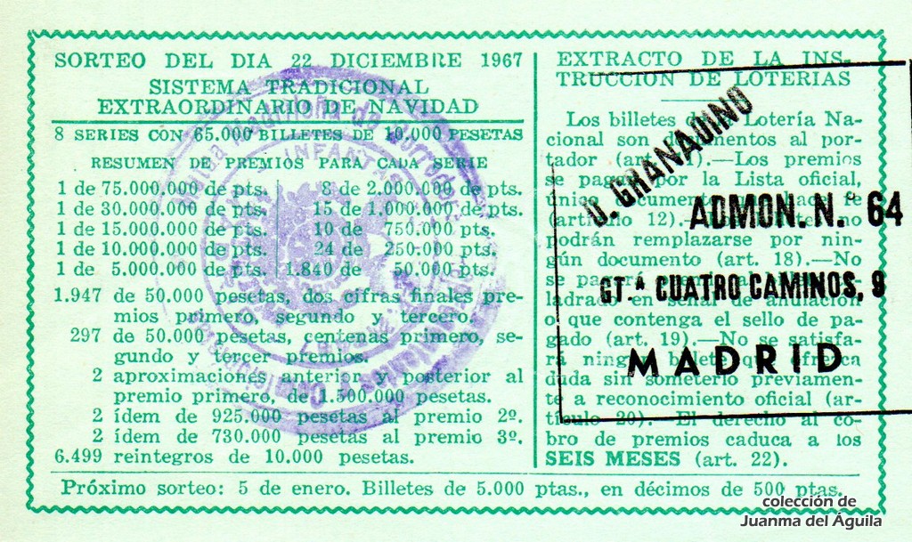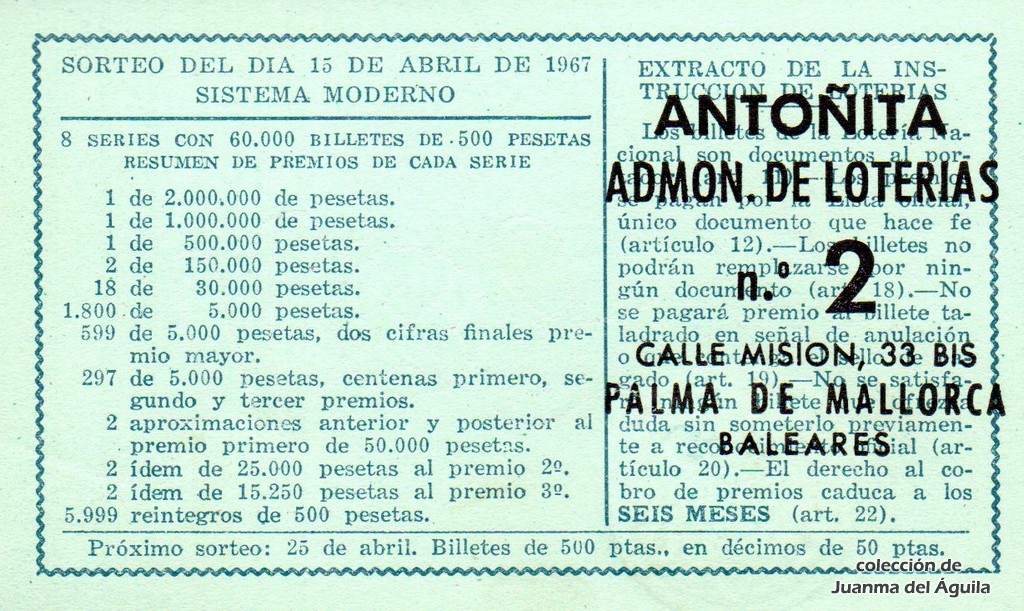 Como curiosidad destaca el doble primer premio de 2.000.000 de pesetas adjudicado en los siguientes sorteos con emisión de 100.000 billetes: