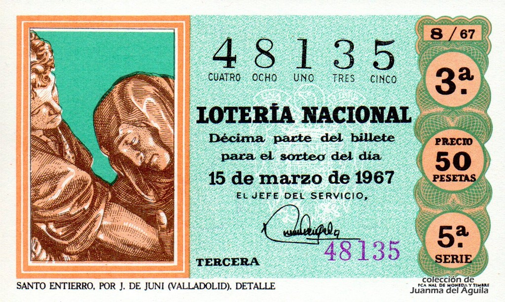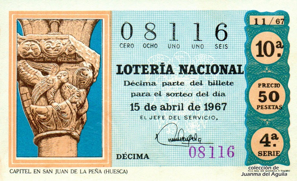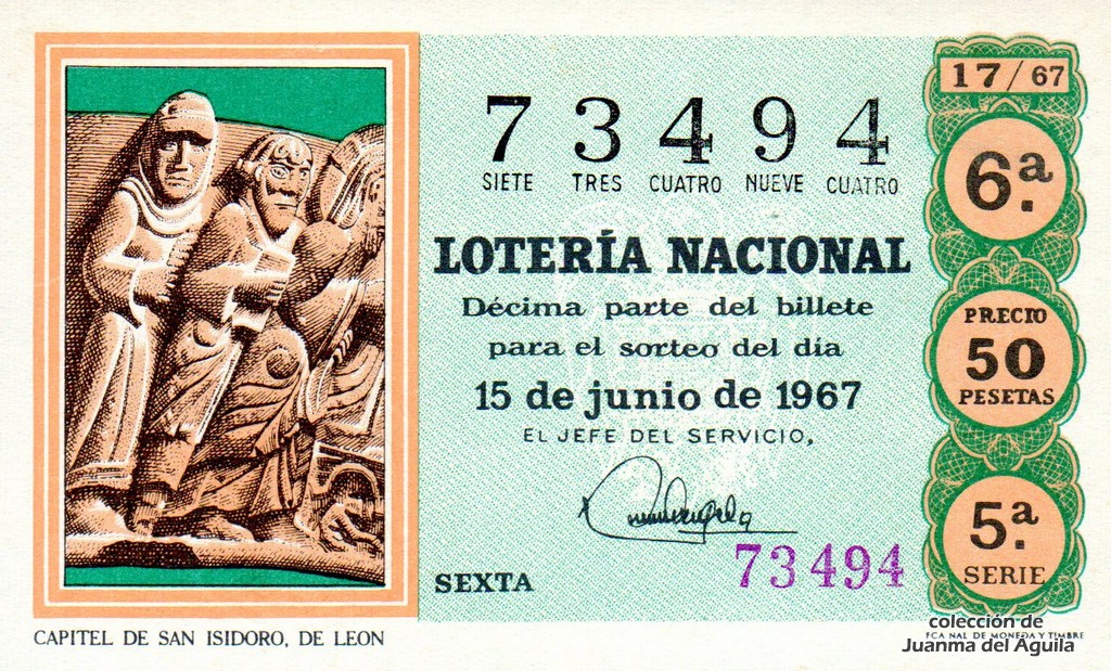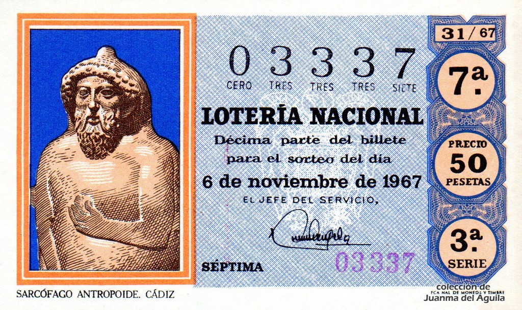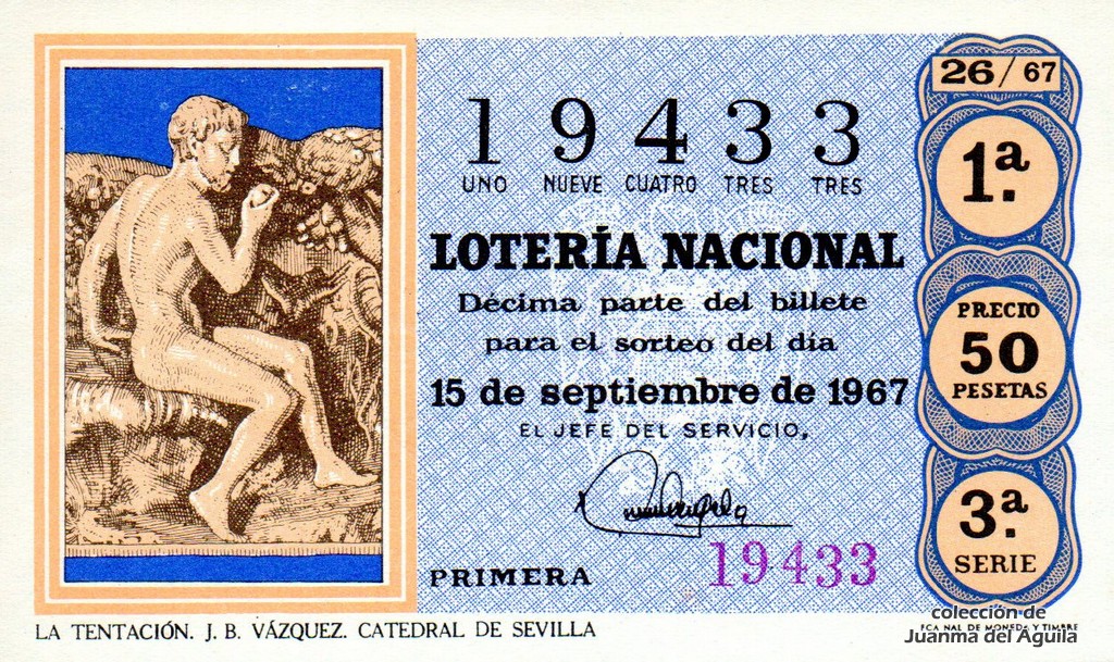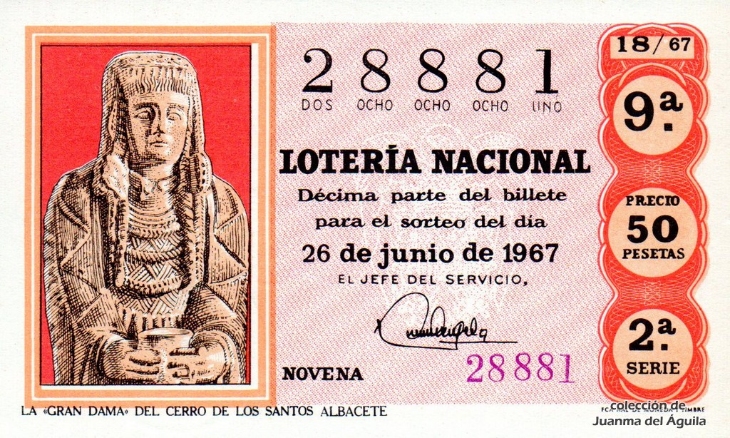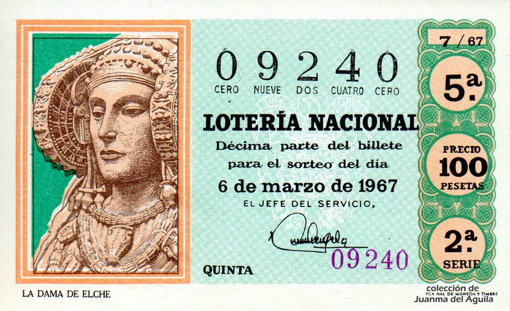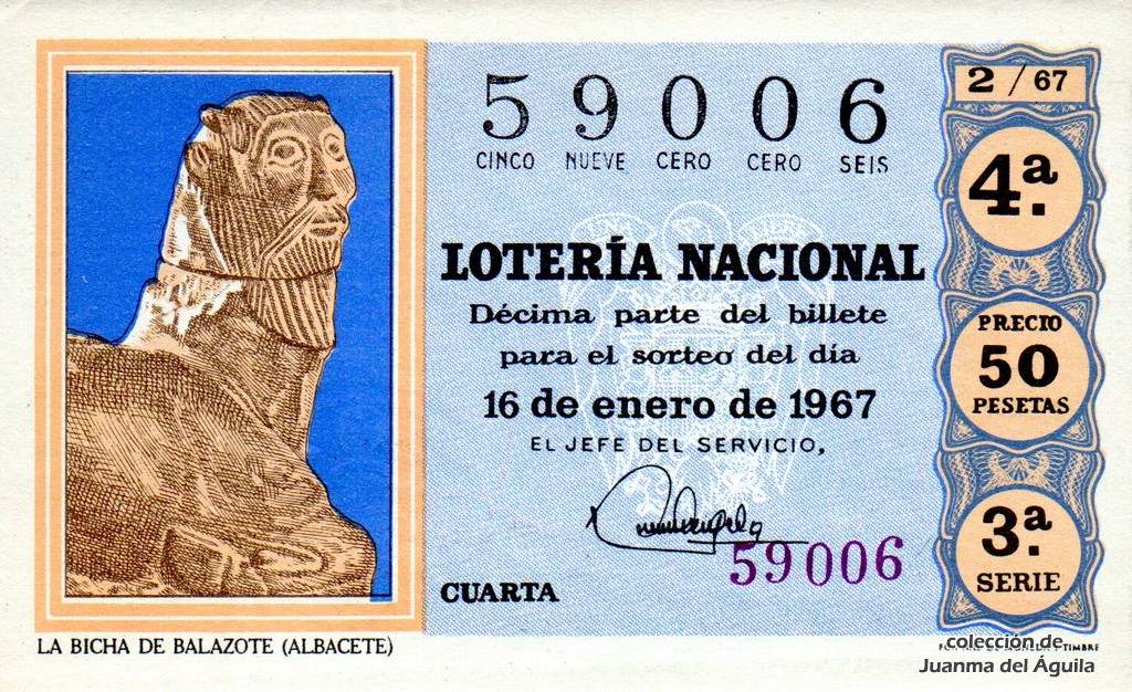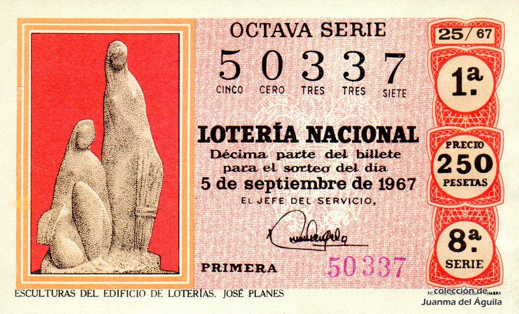 La Lotería Nacional del año 1967 está dedicada a "La Escultura Española".