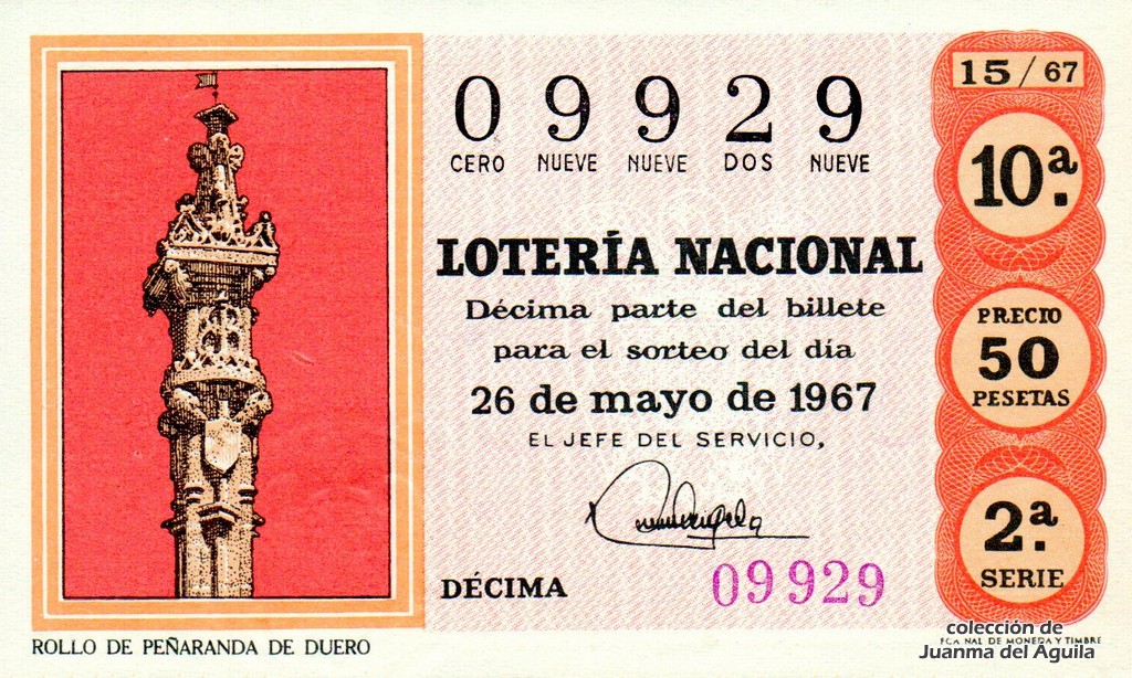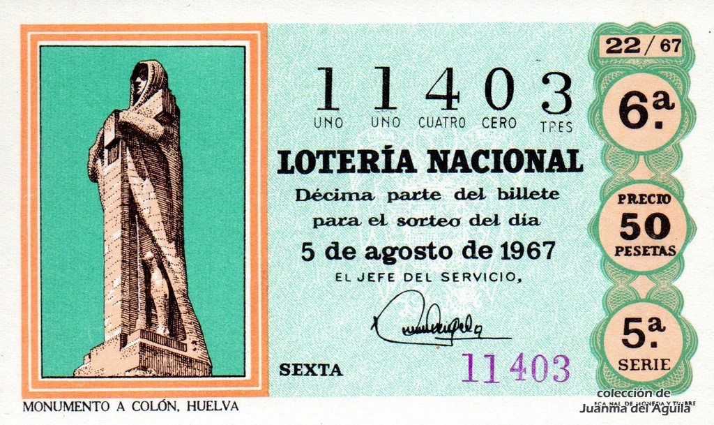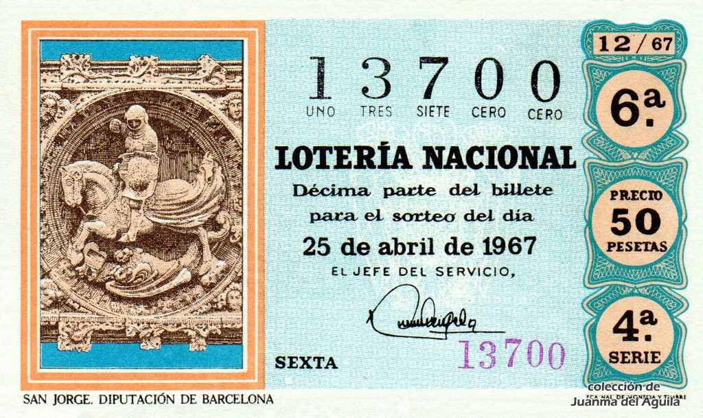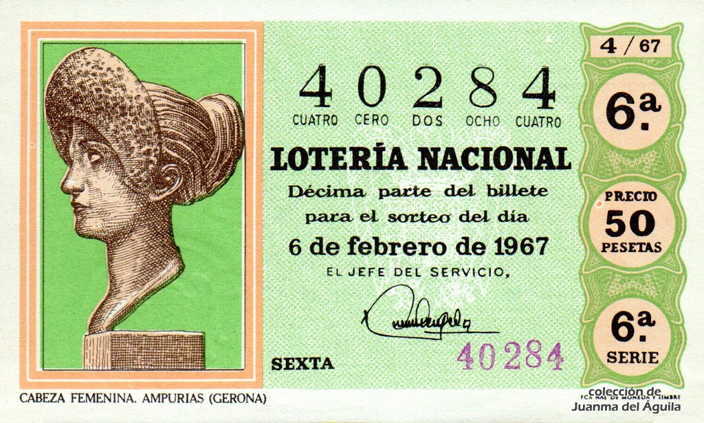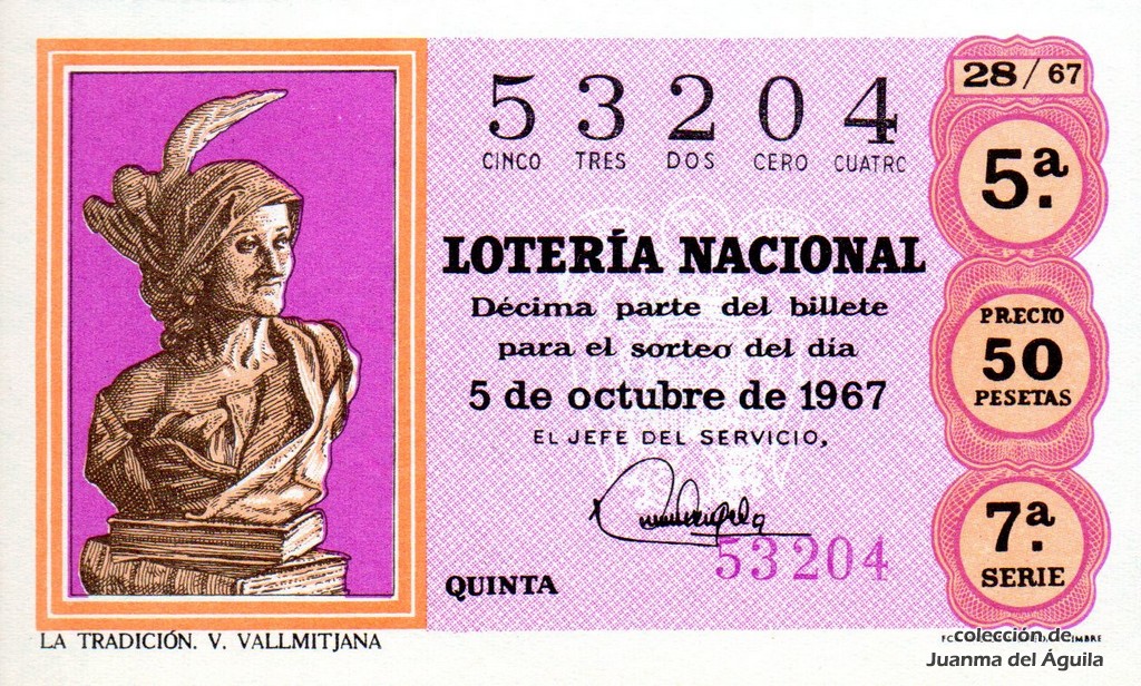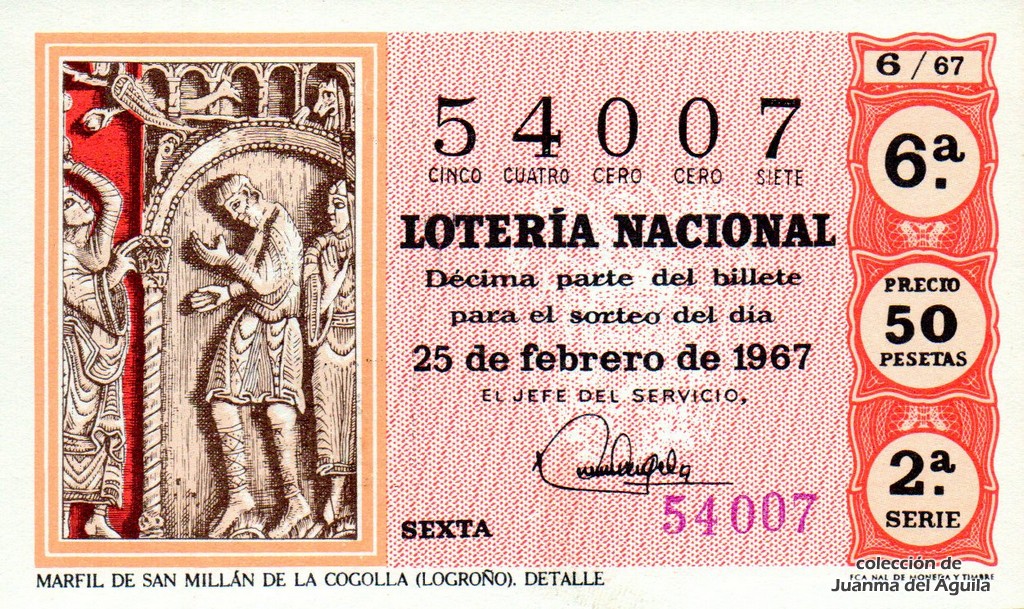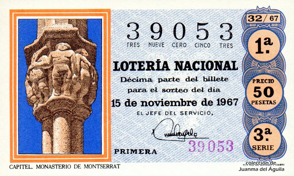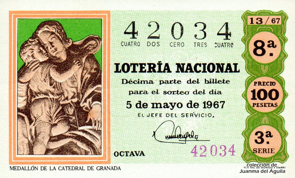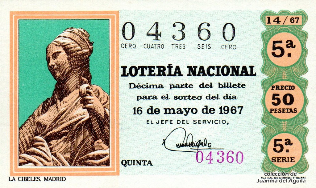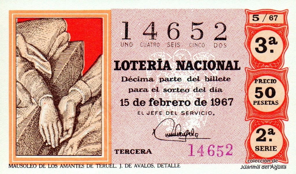 La Lotería Nacional del año 1967 está dedicada a "La Escultura Española".