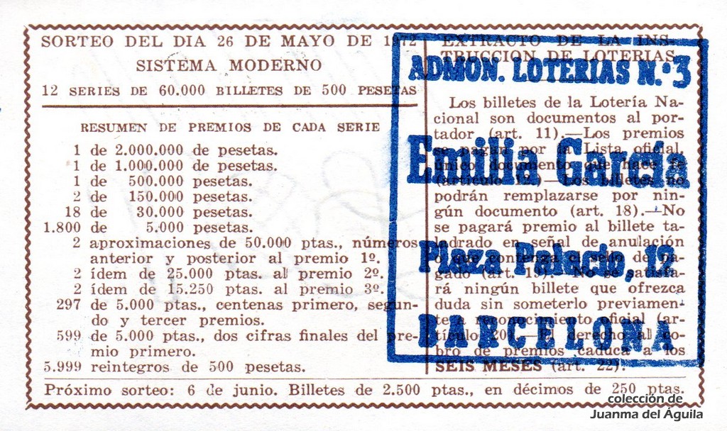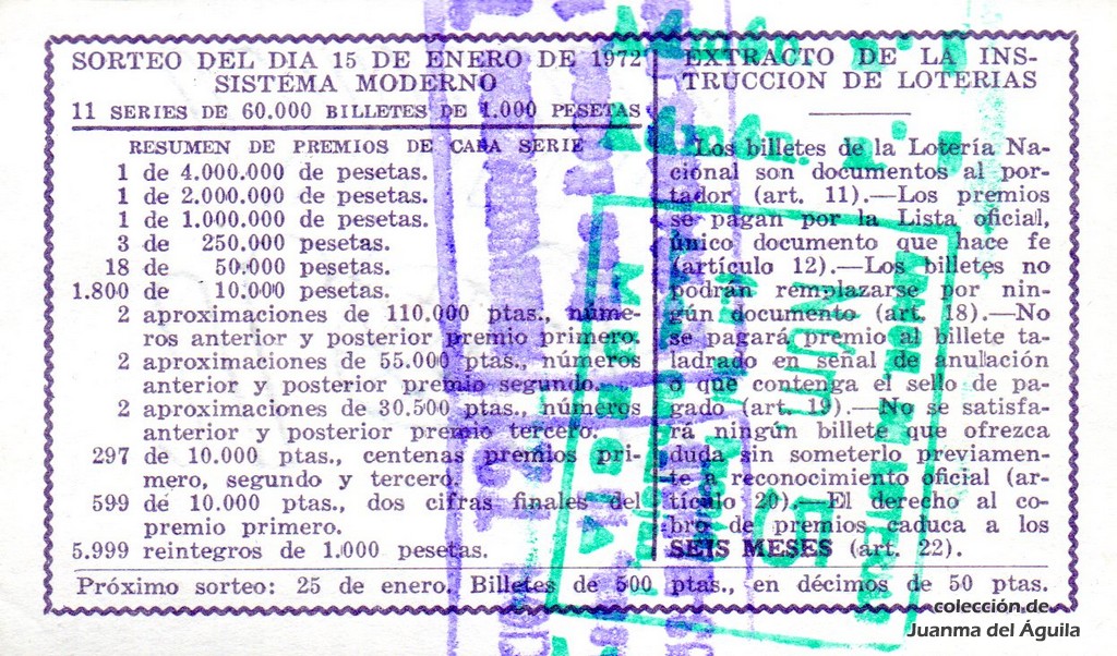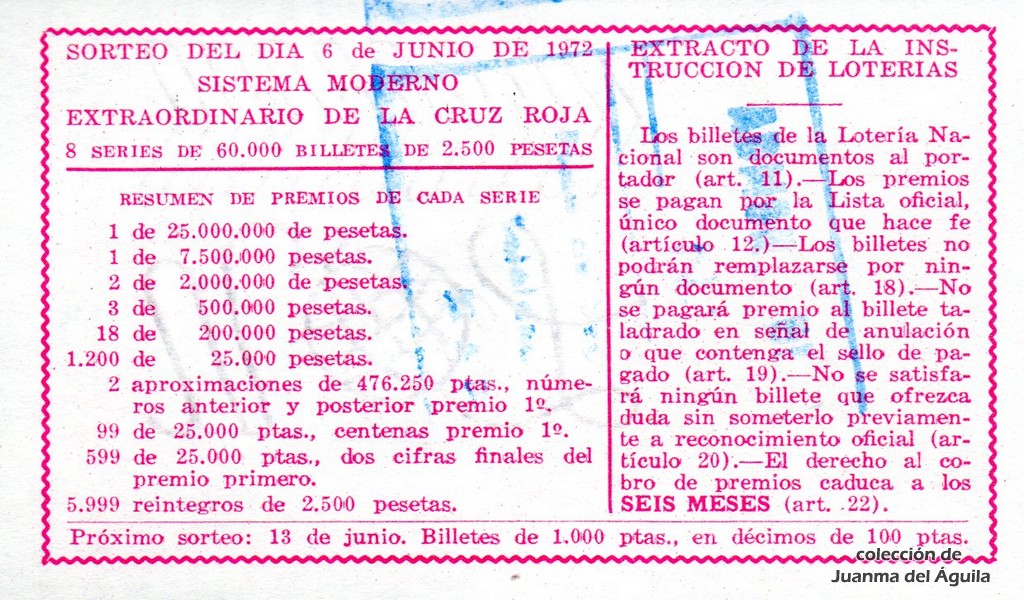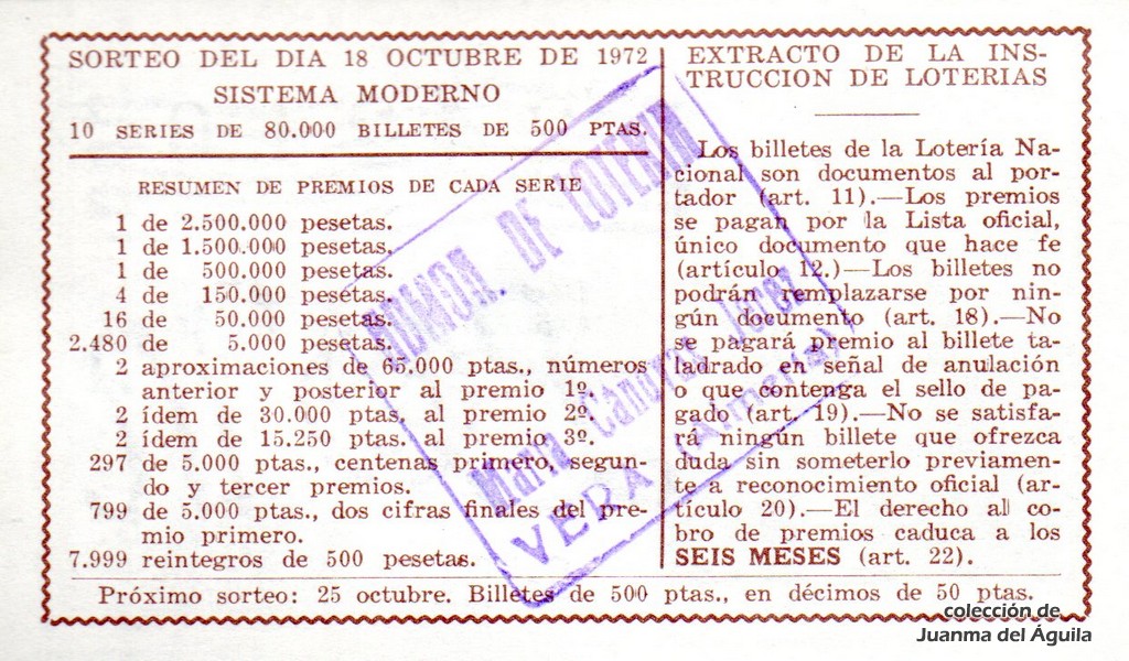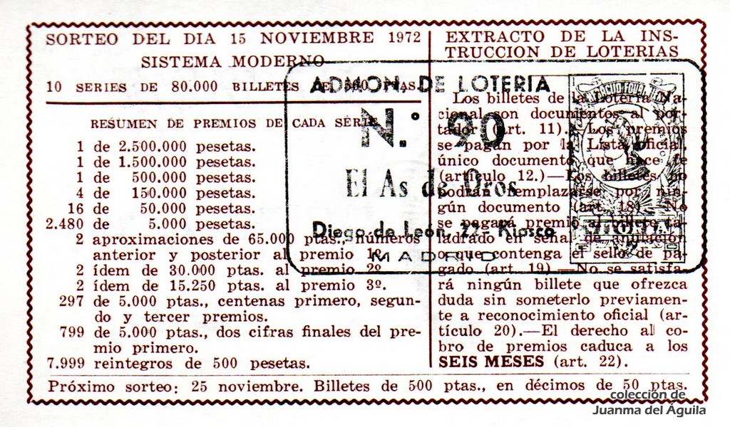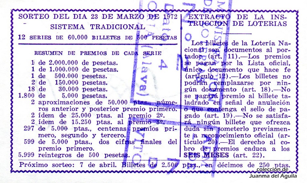 Extracto leido de la instrucción de Lotería del año 1972