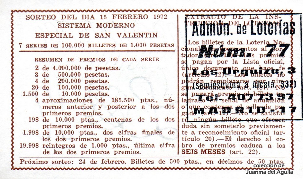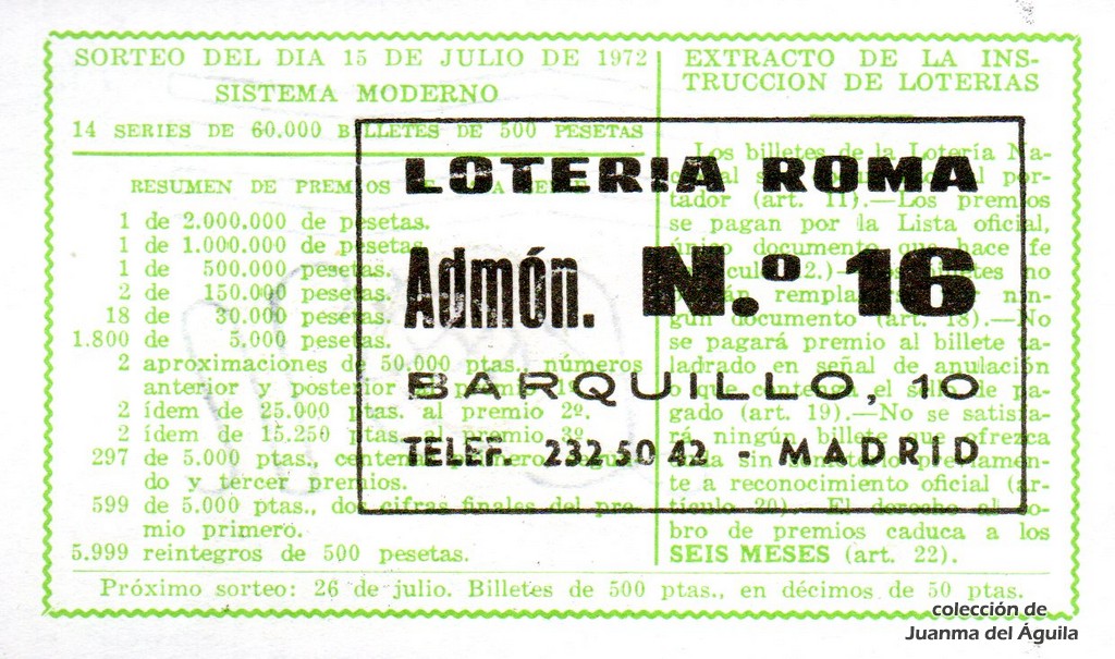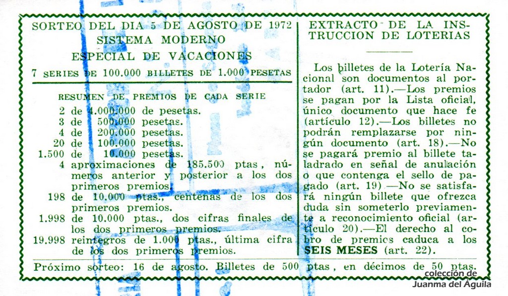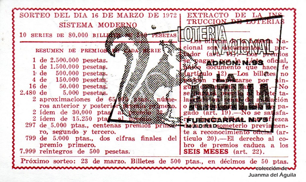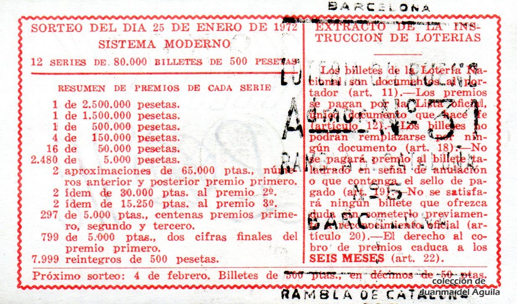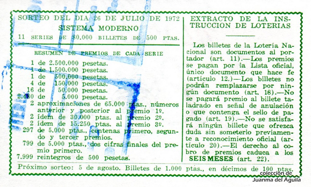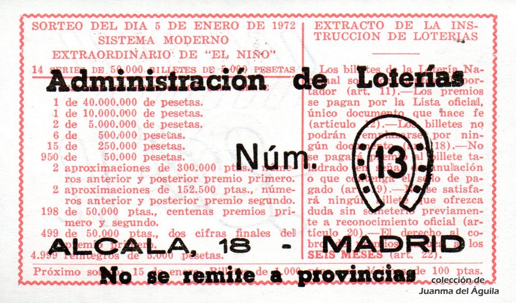 Extracto leido de la instrucción de Lotería del año 1972