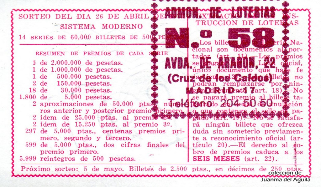Décimo: 18855 serie 1ª fracción 7ª de la administración nº 58 de Madrid
