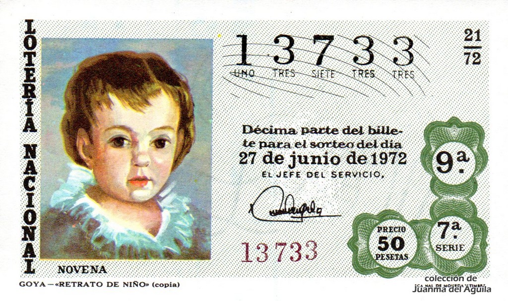 La Lotería Nacional del año 1972 está dedicada a "El niño en el arte español".