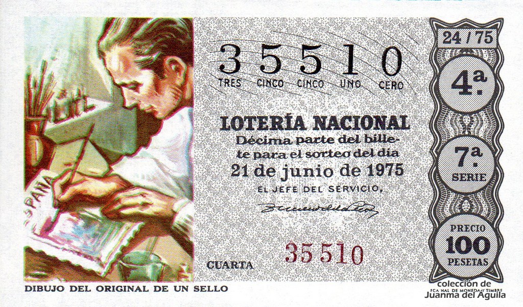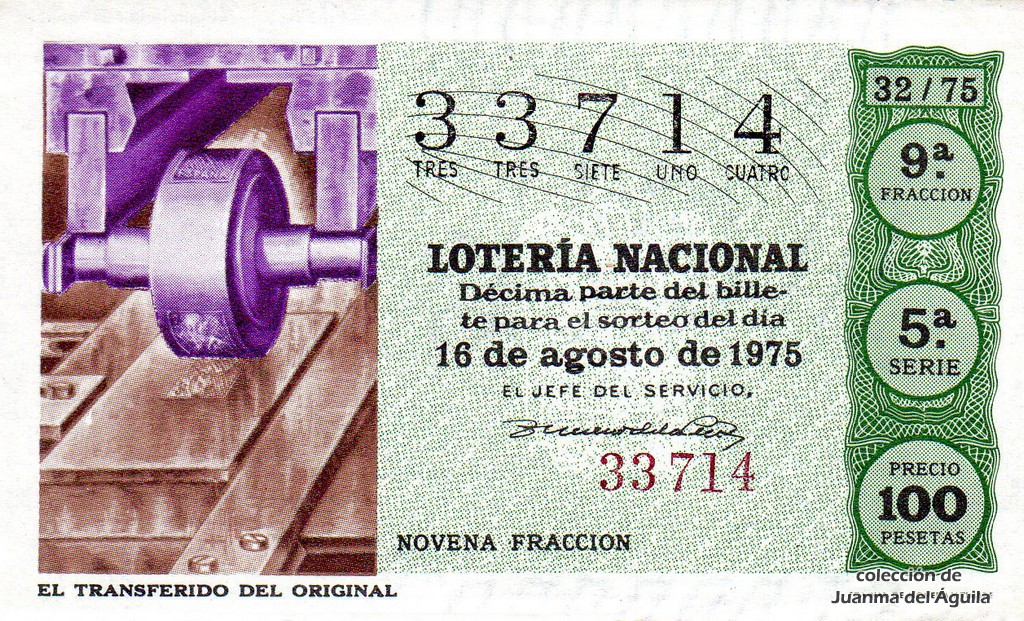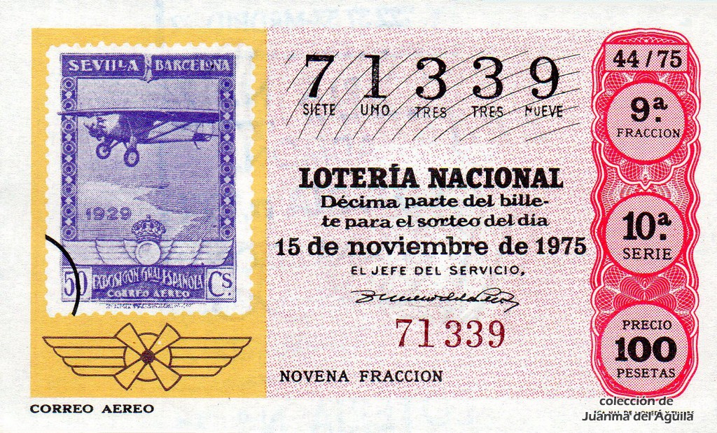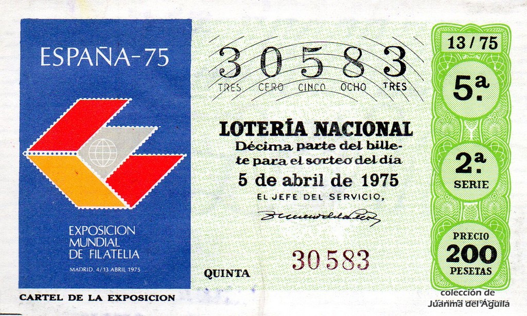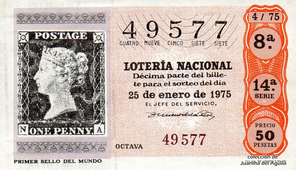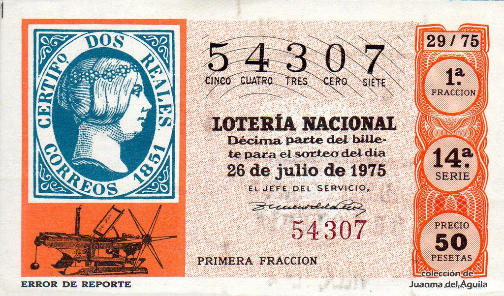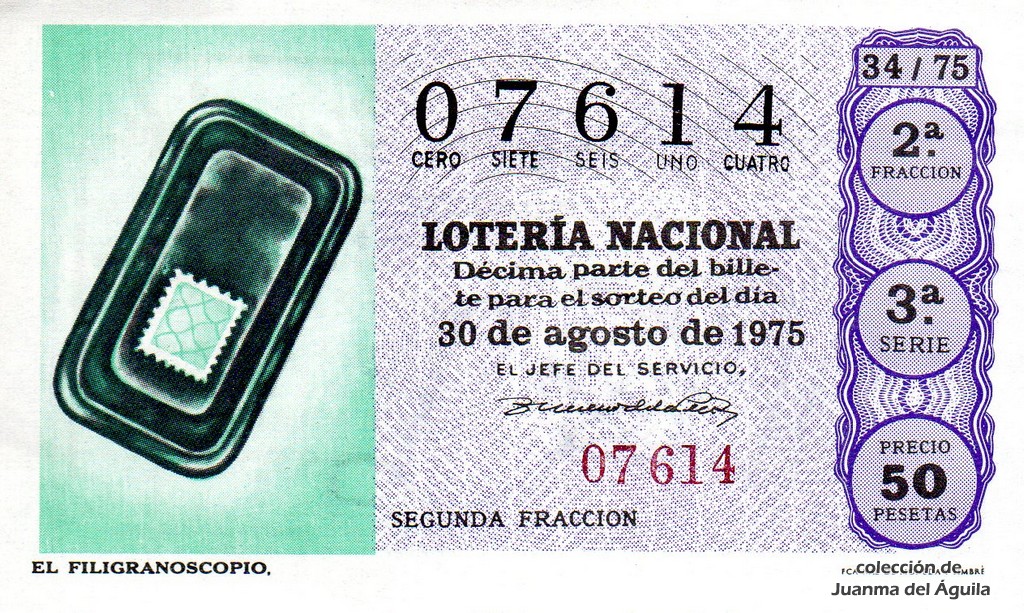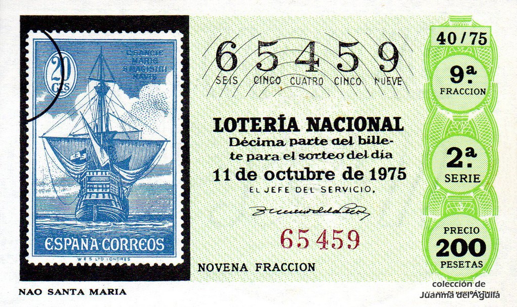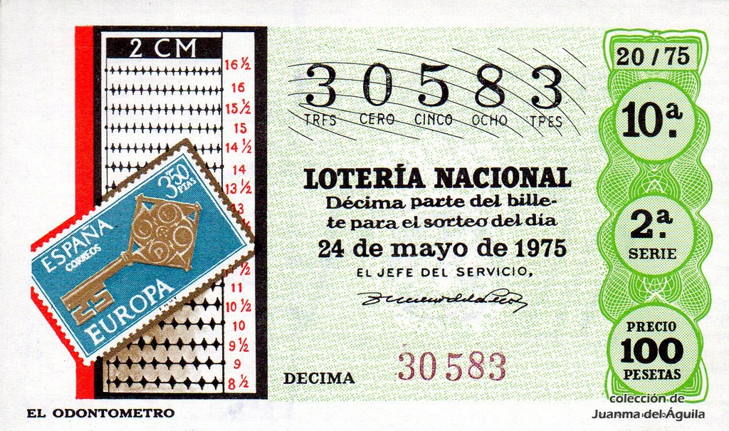 La firma que aparece en los décimos de este año es la del Jefe del Servicio Nacional de Loterías Don Rafael Gimeno de la Peña.
