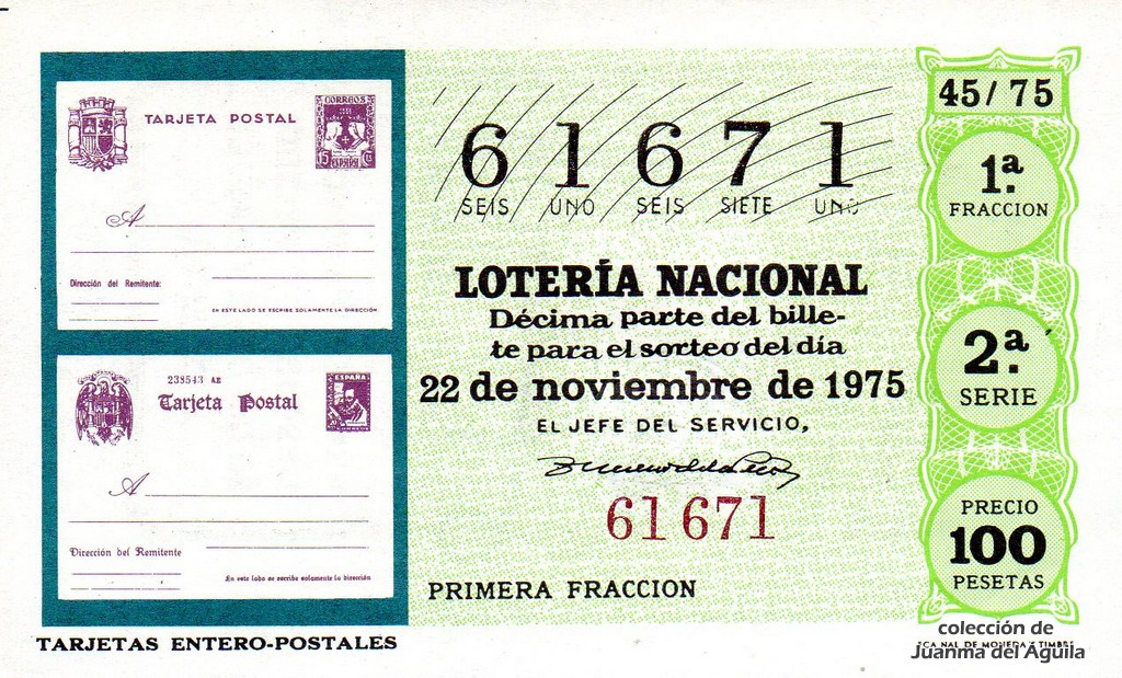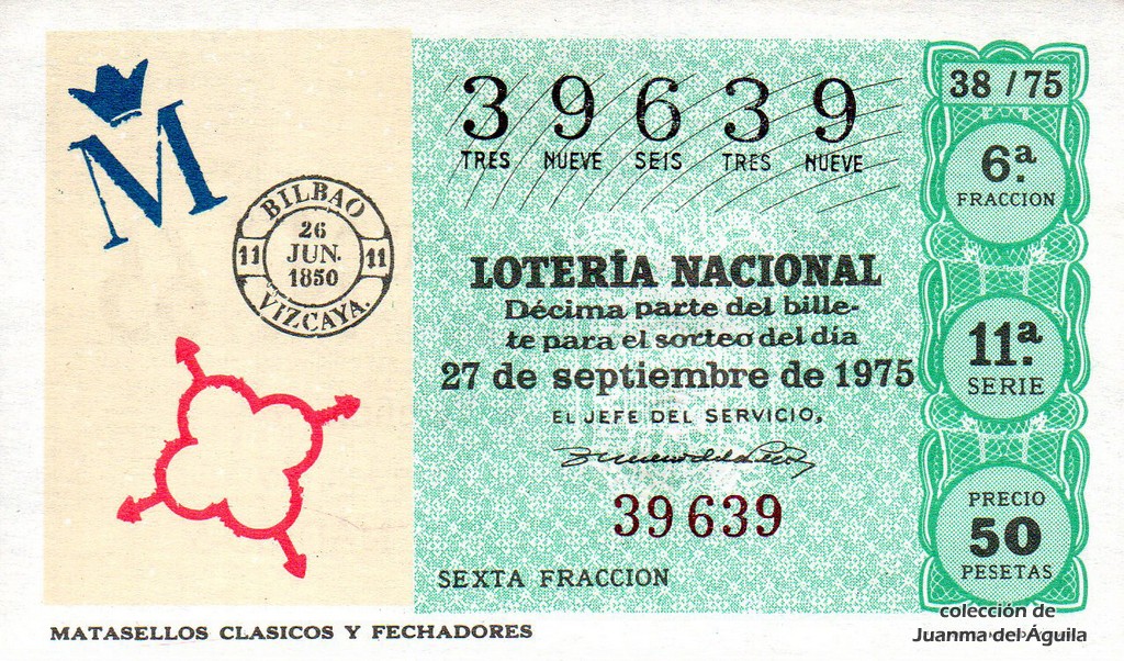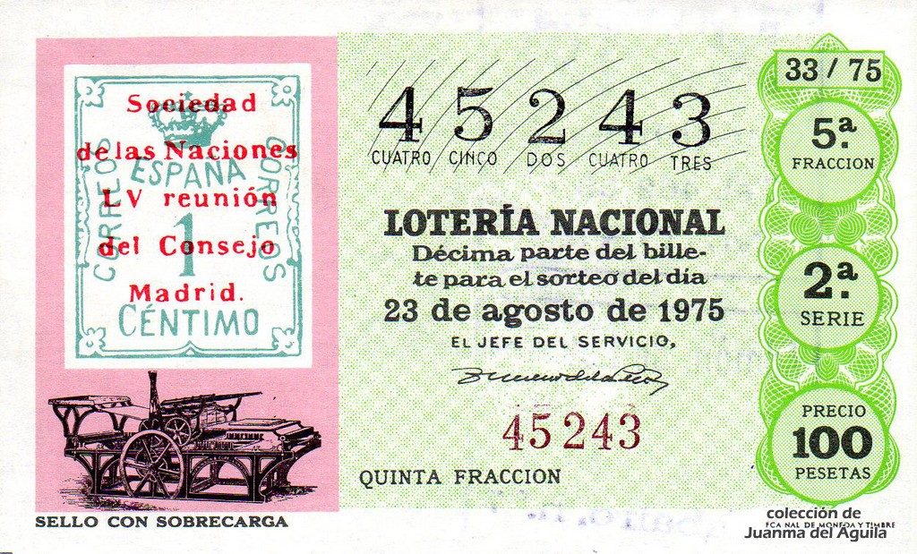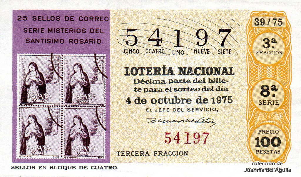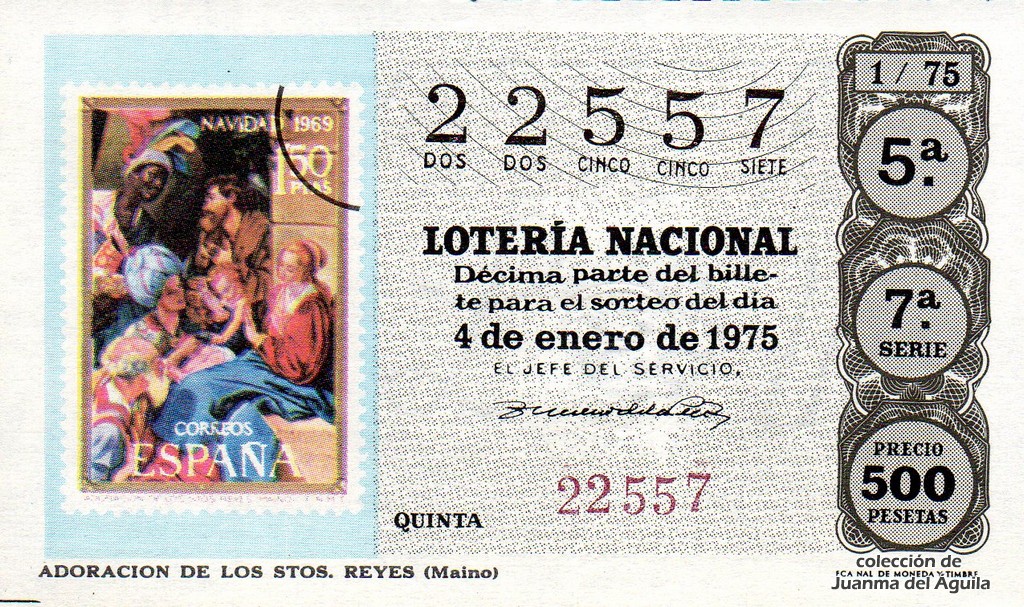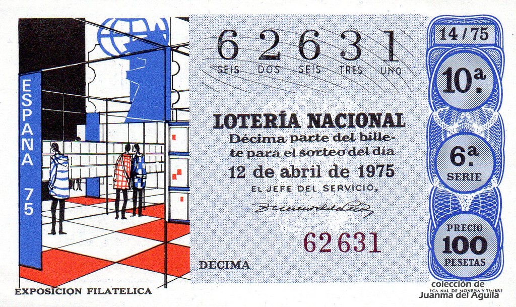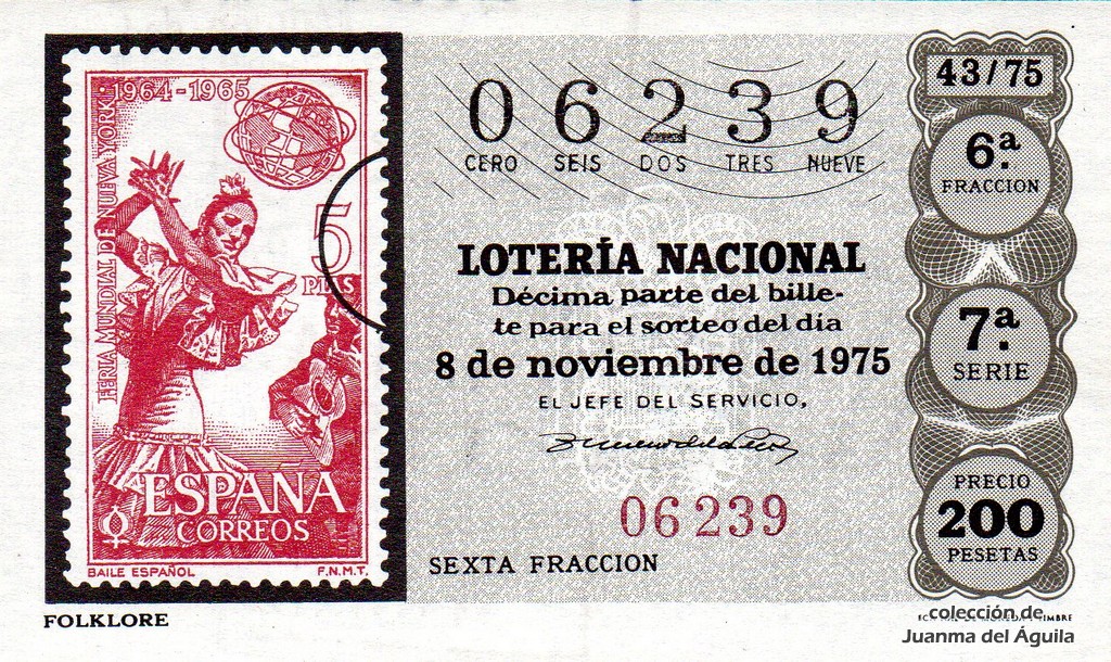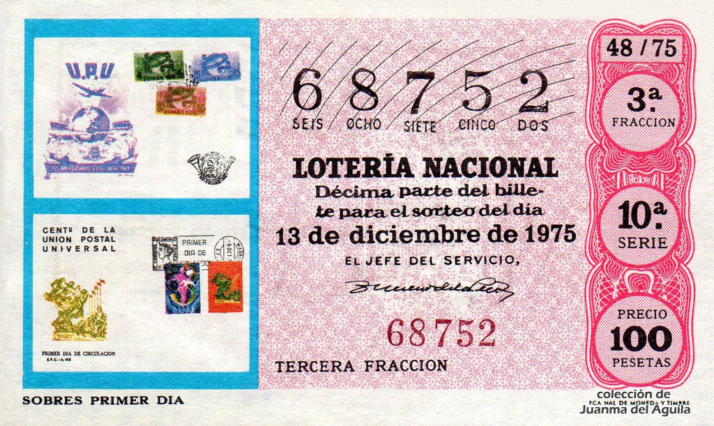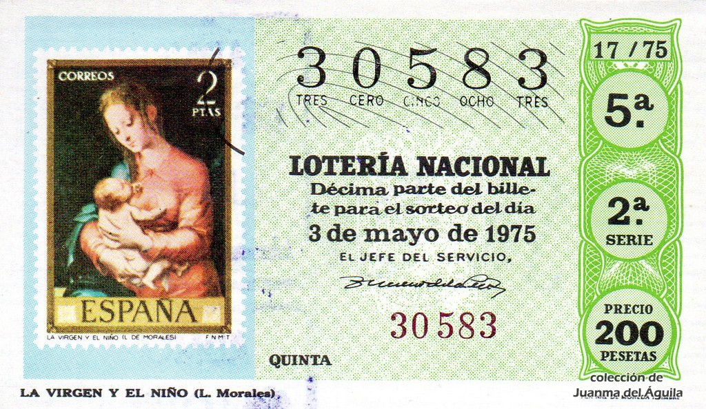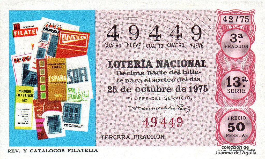 La firma que aparece en los décimos de este año es la del Jefe del Servicio Nacional de Loterías Don Rafael Gimeno de la Peña.