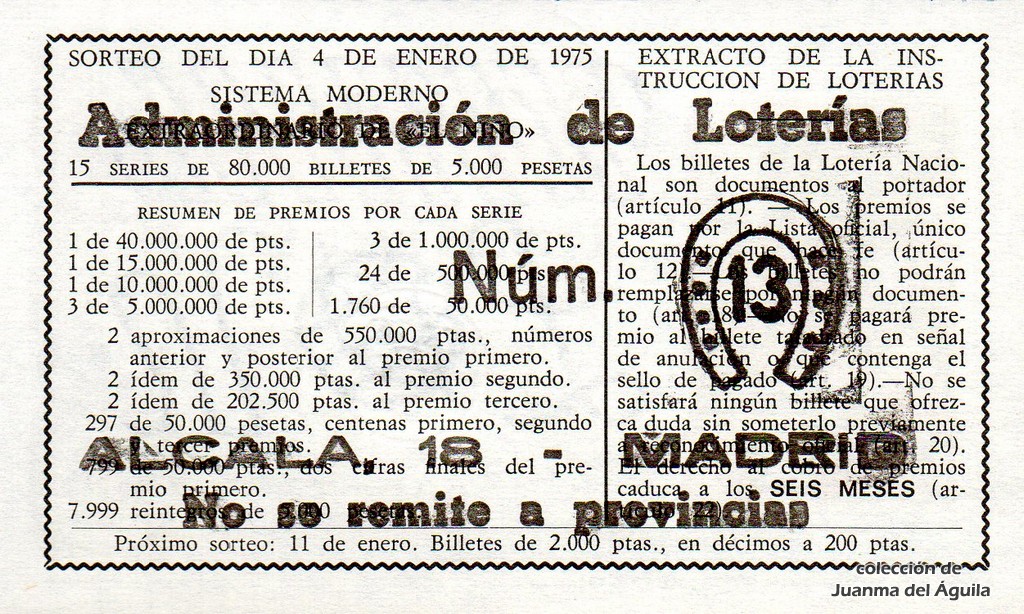 - "SORTEO EXTRAORDINARIO DE NAVIDAD" celebrado el 20 de diciembre