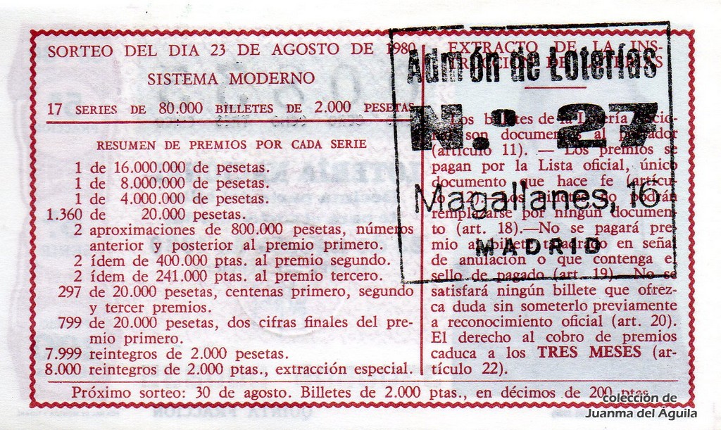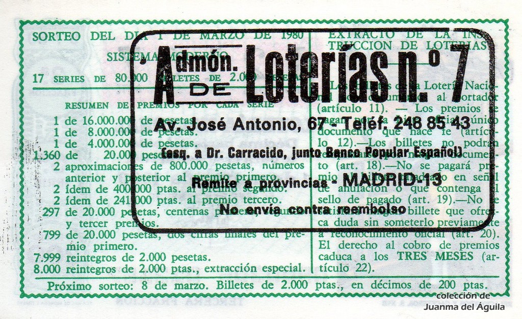 Es de destacar que el SORTEO EXTRAORDINARIO MUNDIAL '82, dedicado al mundial de fútbol, fue el primero de los 3 sorteos extraordinarios que la Lotería Nacional dedicó a este gran evento mundial y los beneficios que con él se consiguieron se destinaron como ingresos del Comité del Mundial-82.