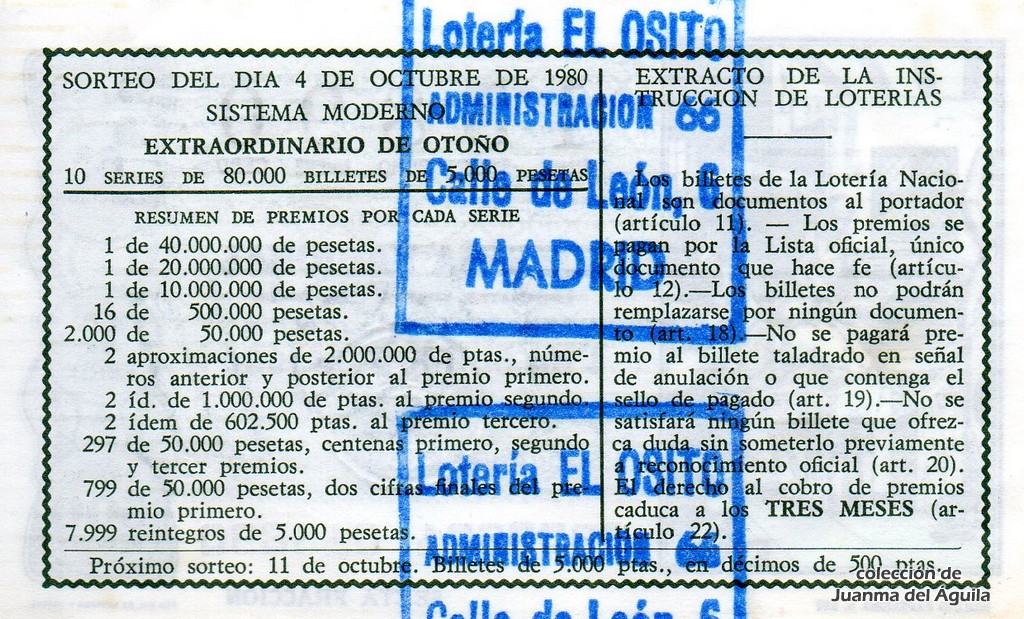 Son los SORTEOS EXTRAORDINARIOS siguientes:
