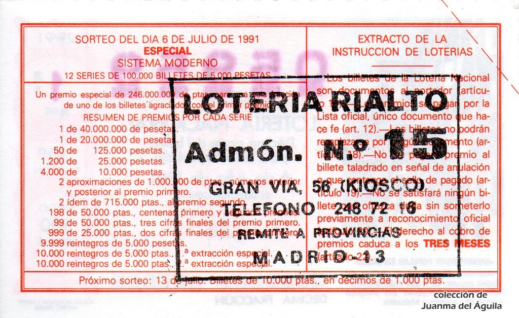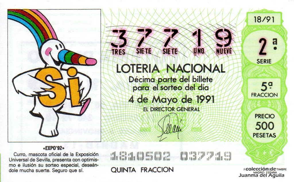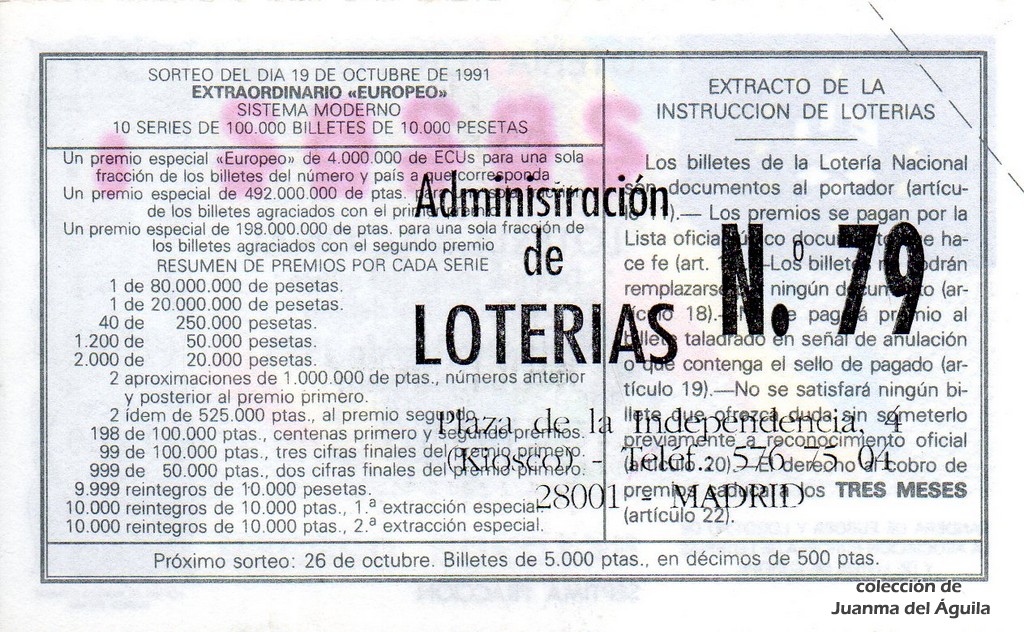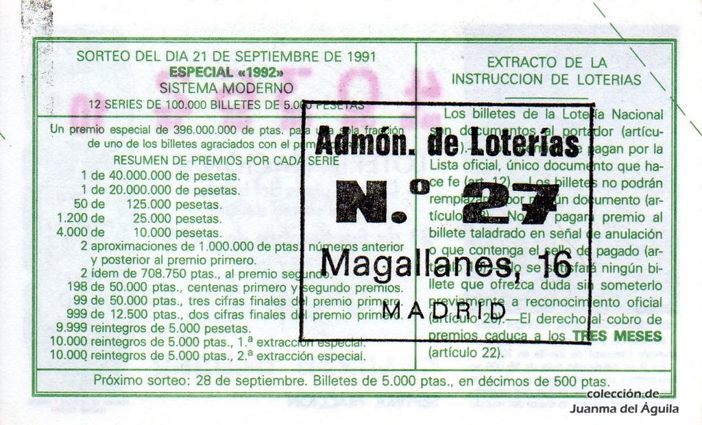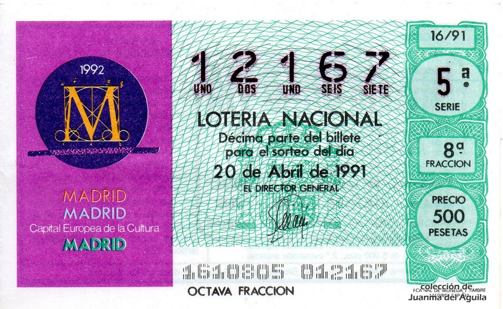 El 20 de abril se celebró un SORTEO ESPECIAL dedicado a "Madrid Capital Europea de la Cultura 1992".