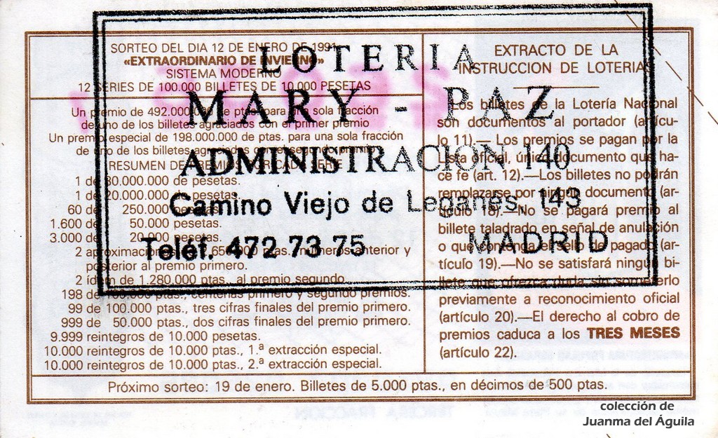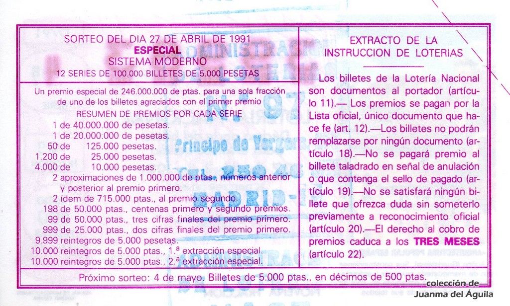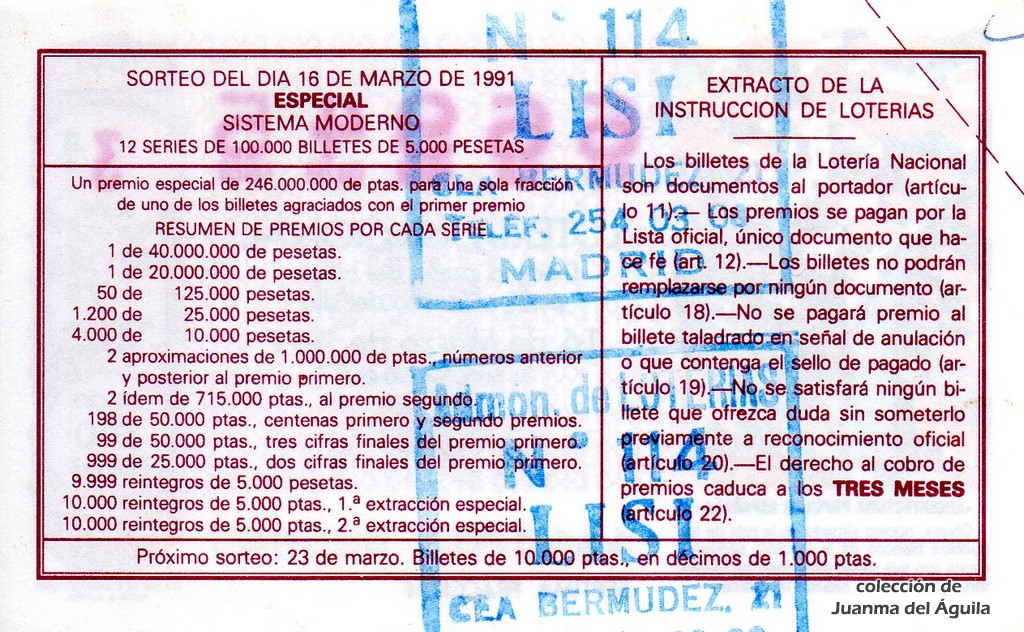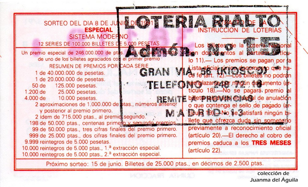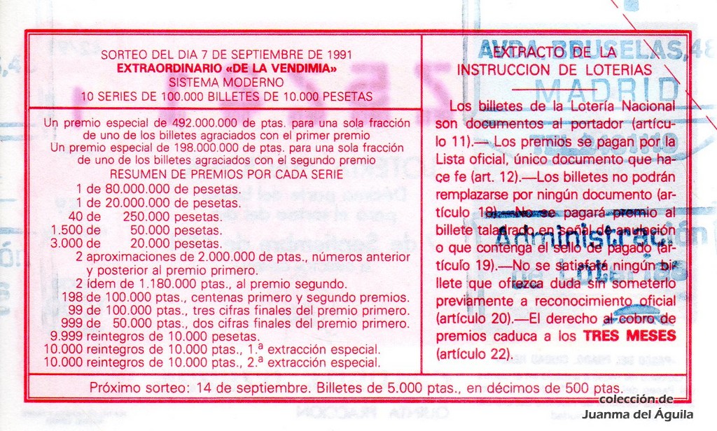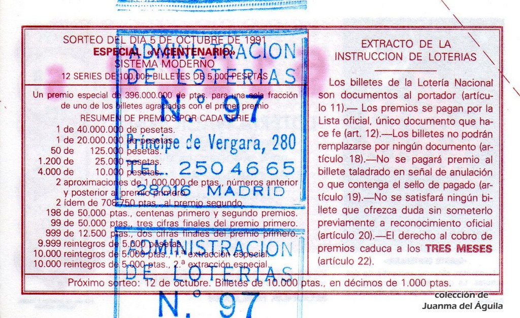El 20 de abril se celebró un SORTEO ESPECIAL dedicado a "Madrid Capital Europea de la Cultura 1992".