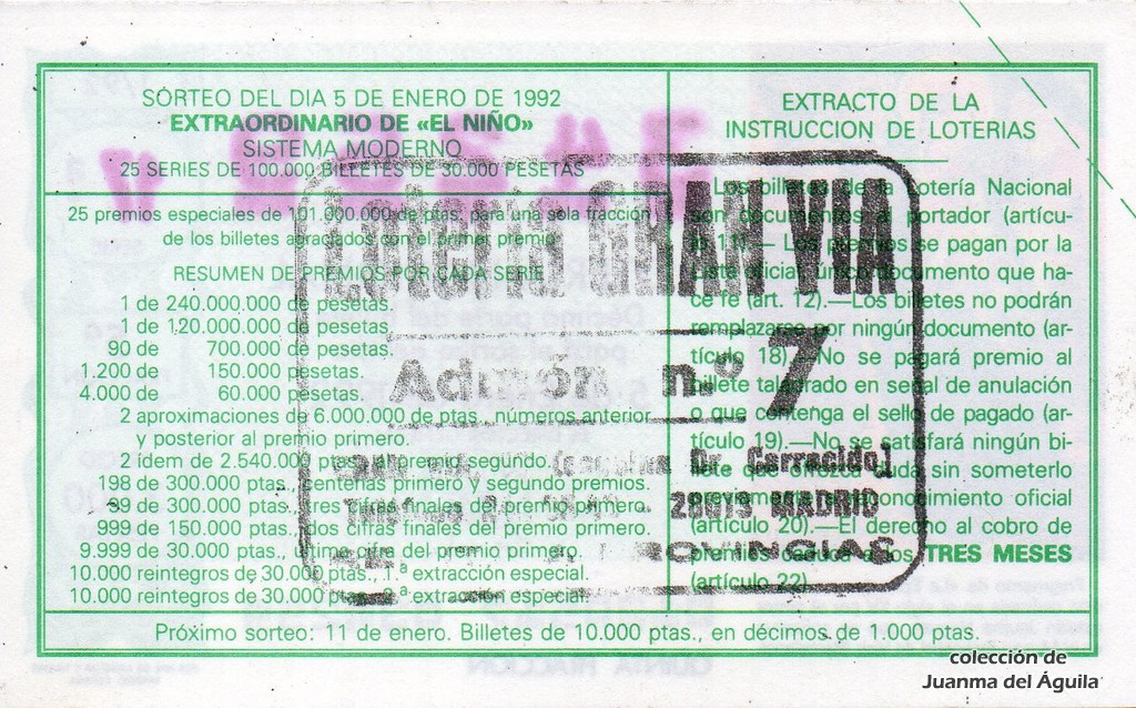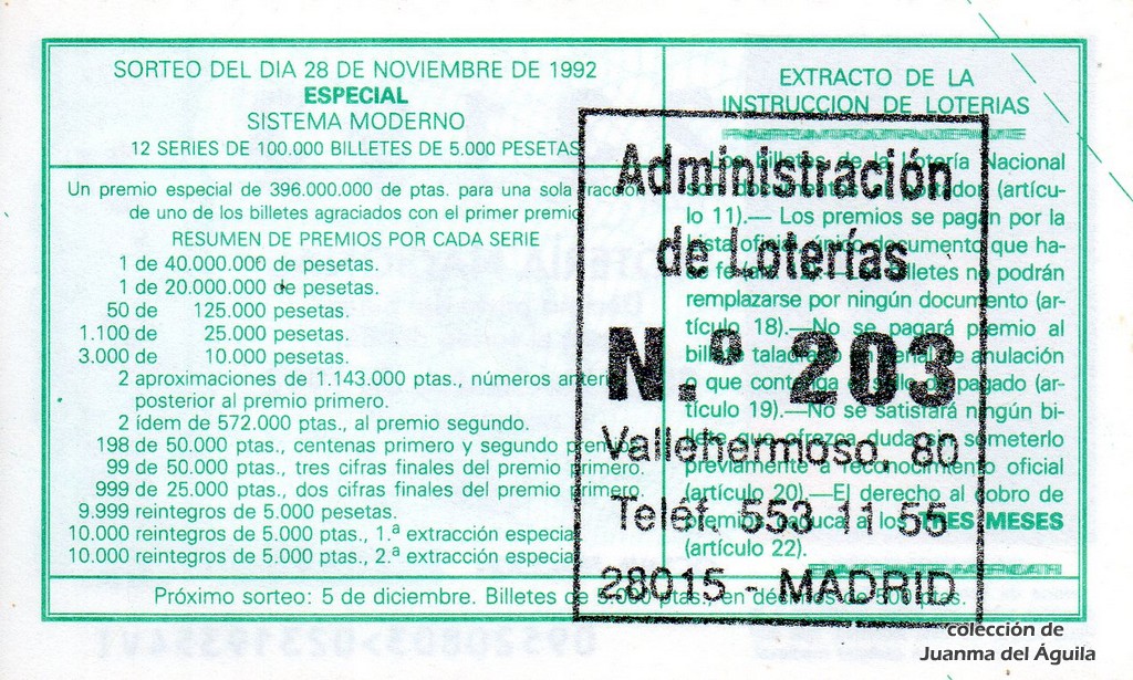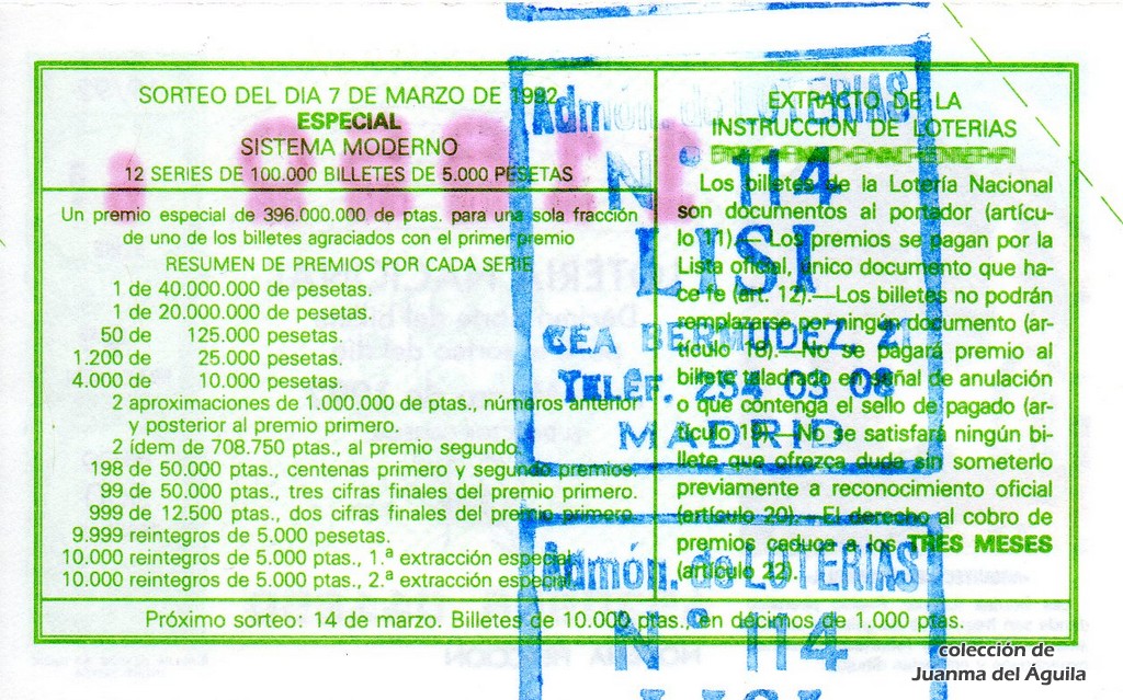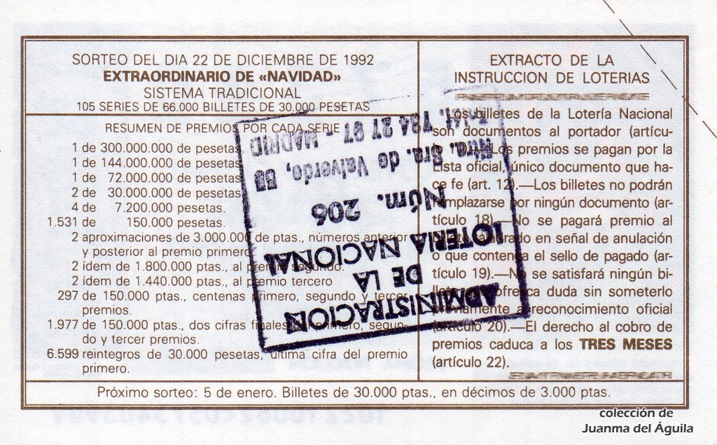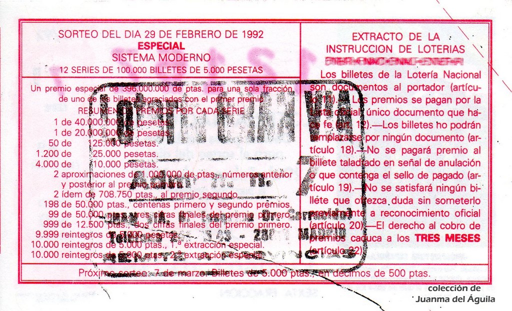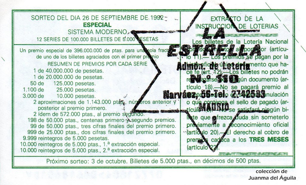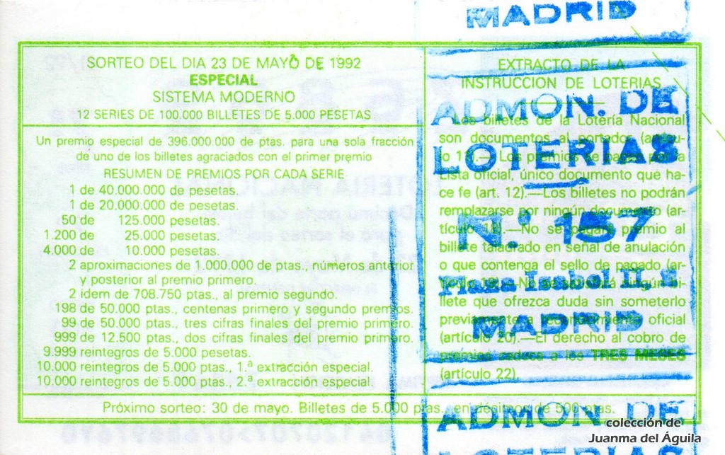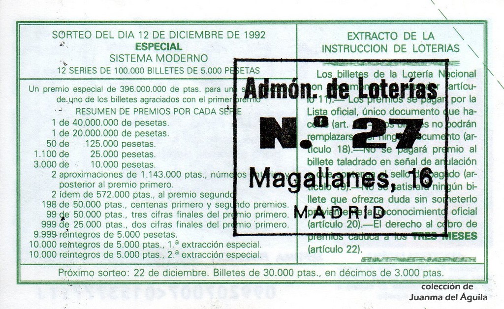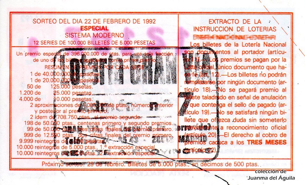 Además se celebró el SORTEO EXTRAORDINARIO «GRAN SORTEO 1992» el 10 de octubre con un primer premio de 100 millones de pesetas.