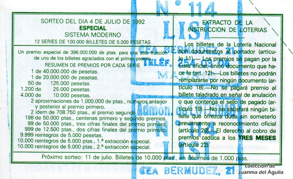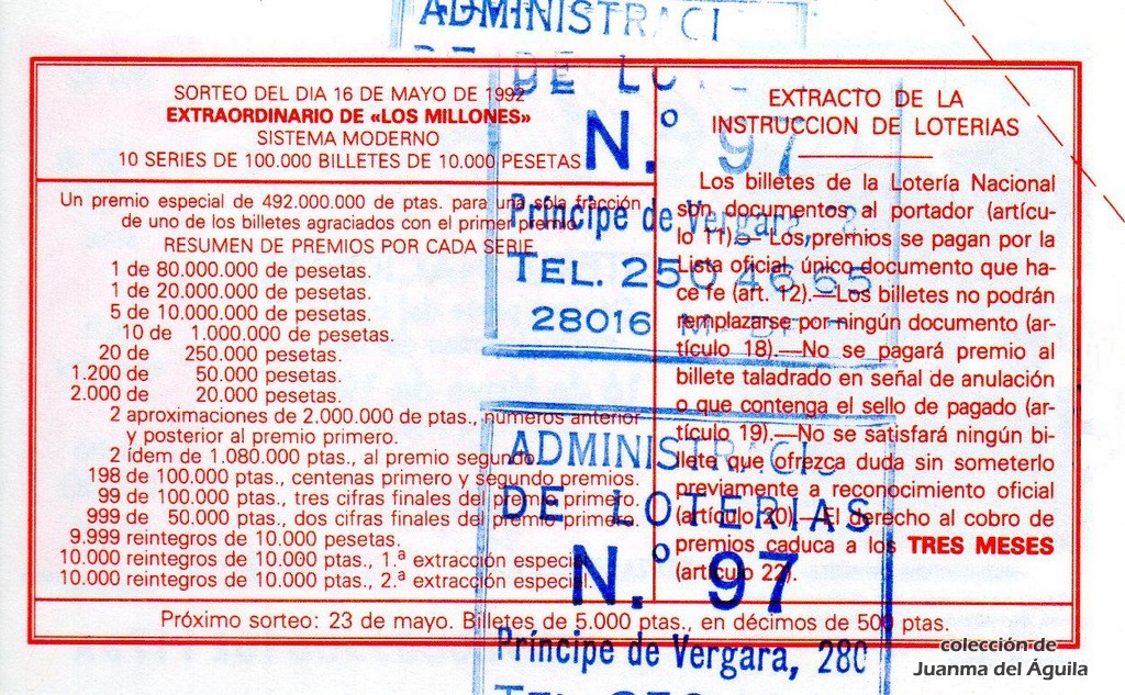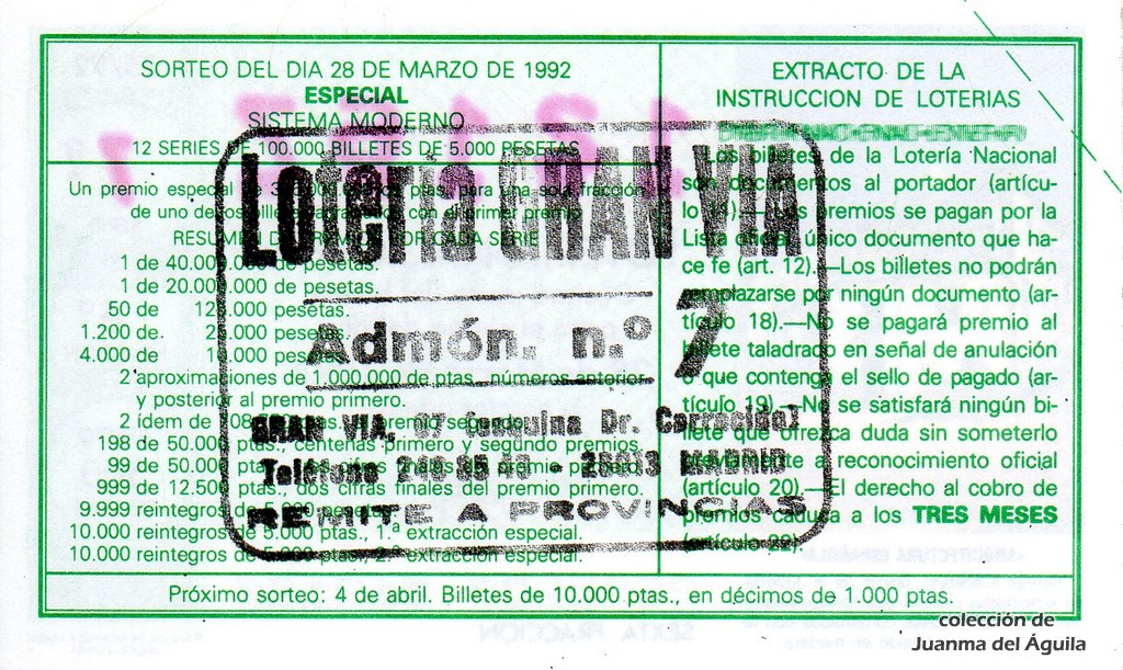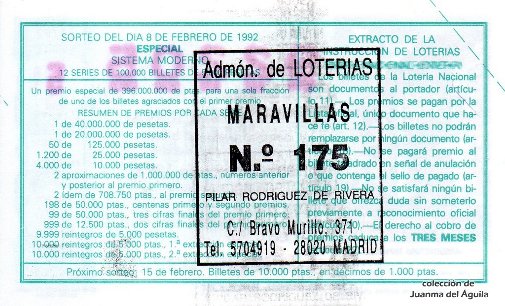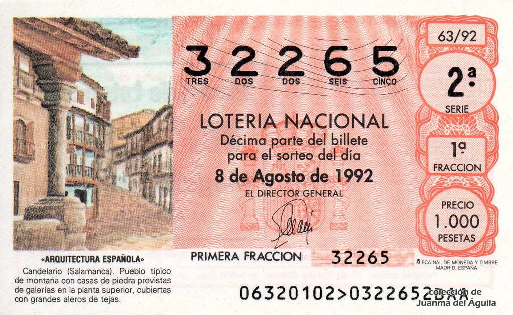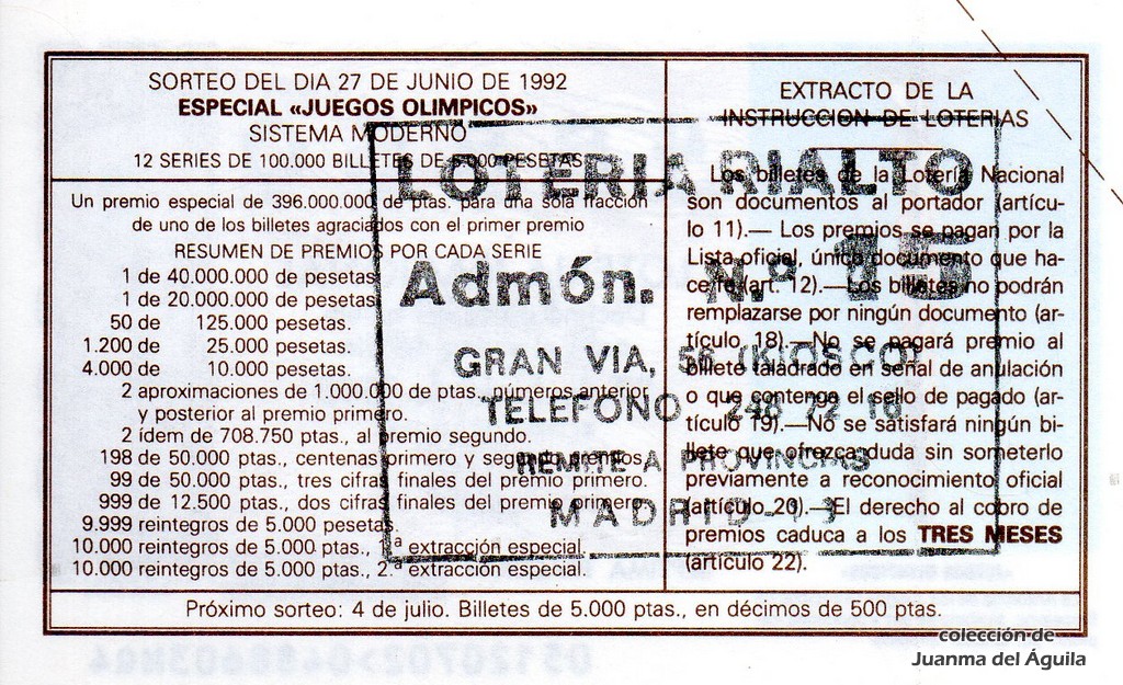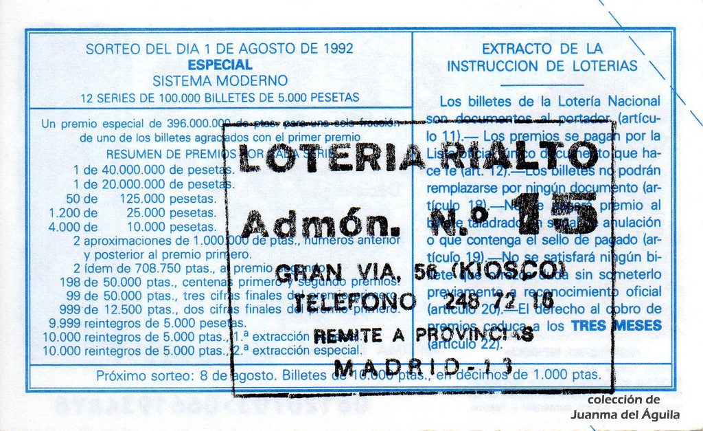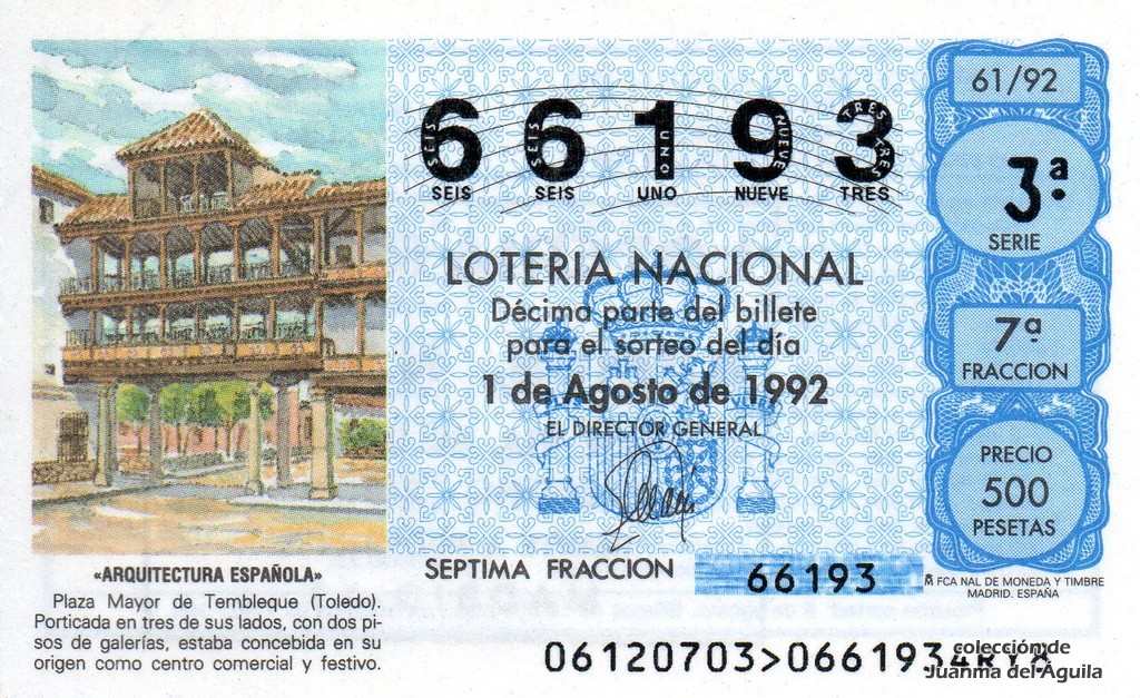 Además se celebró el SORTEO EXTRAORDINARIO «GRAN SORTEO 1992» el 10 de octubre con un primer premio de 100 millones de pesetas.