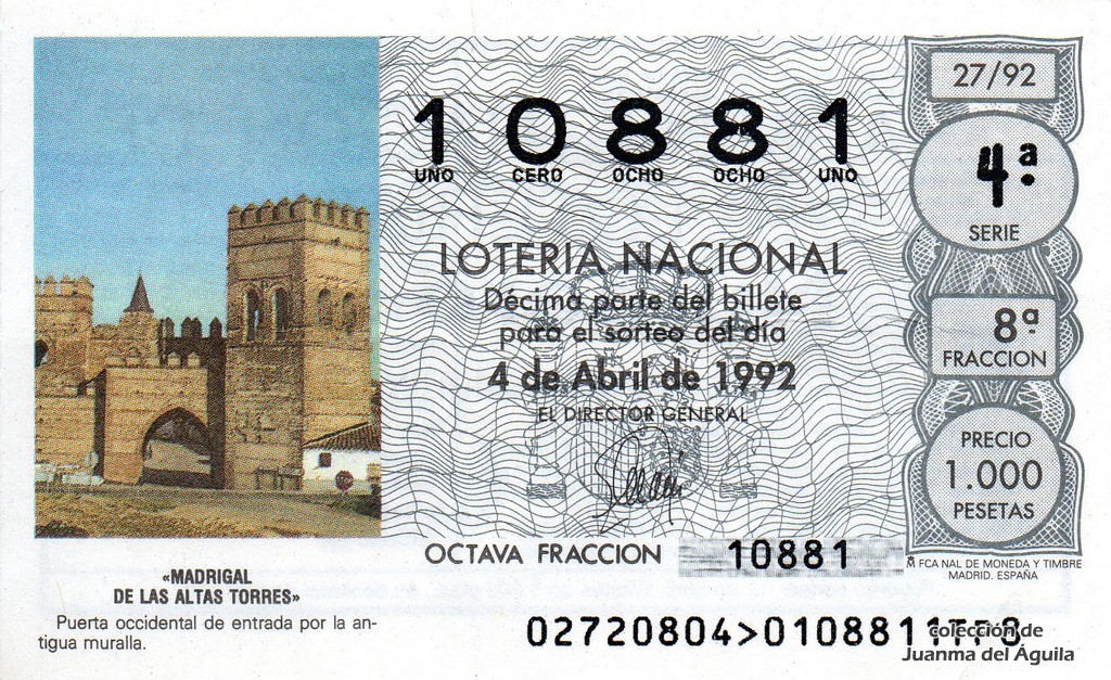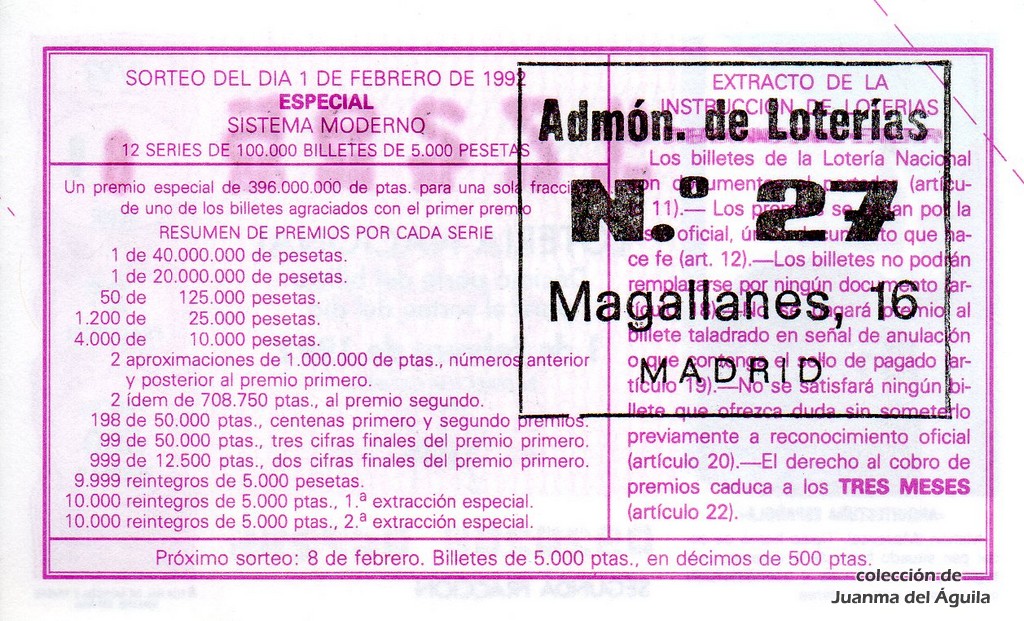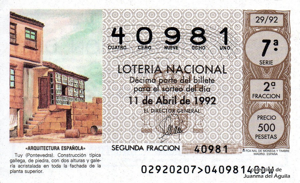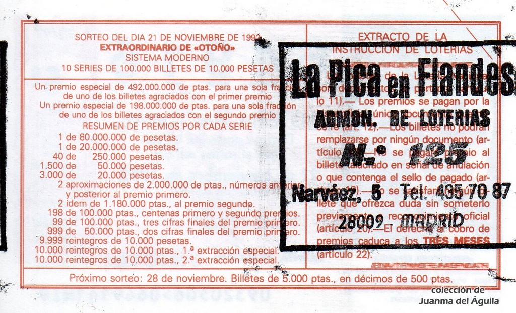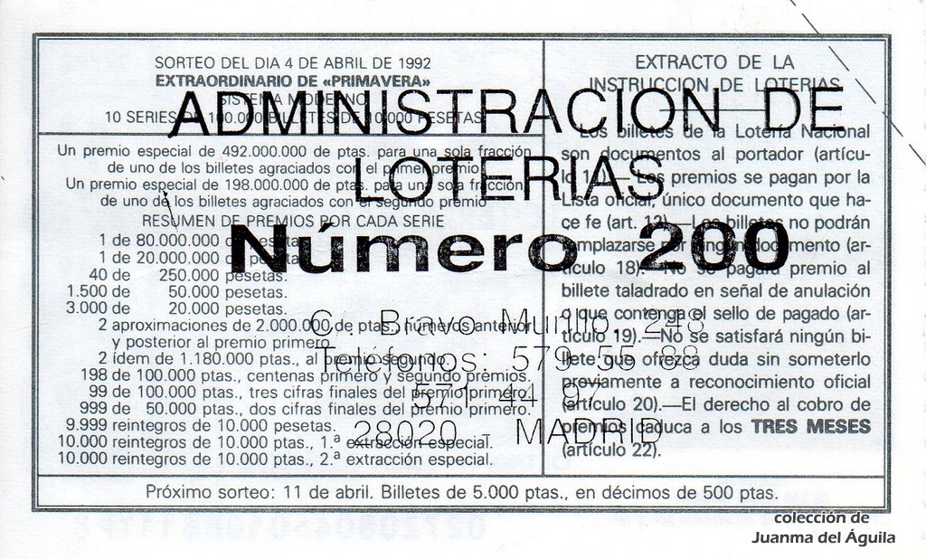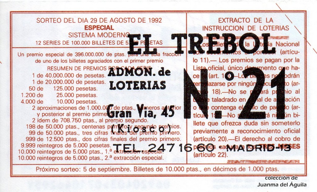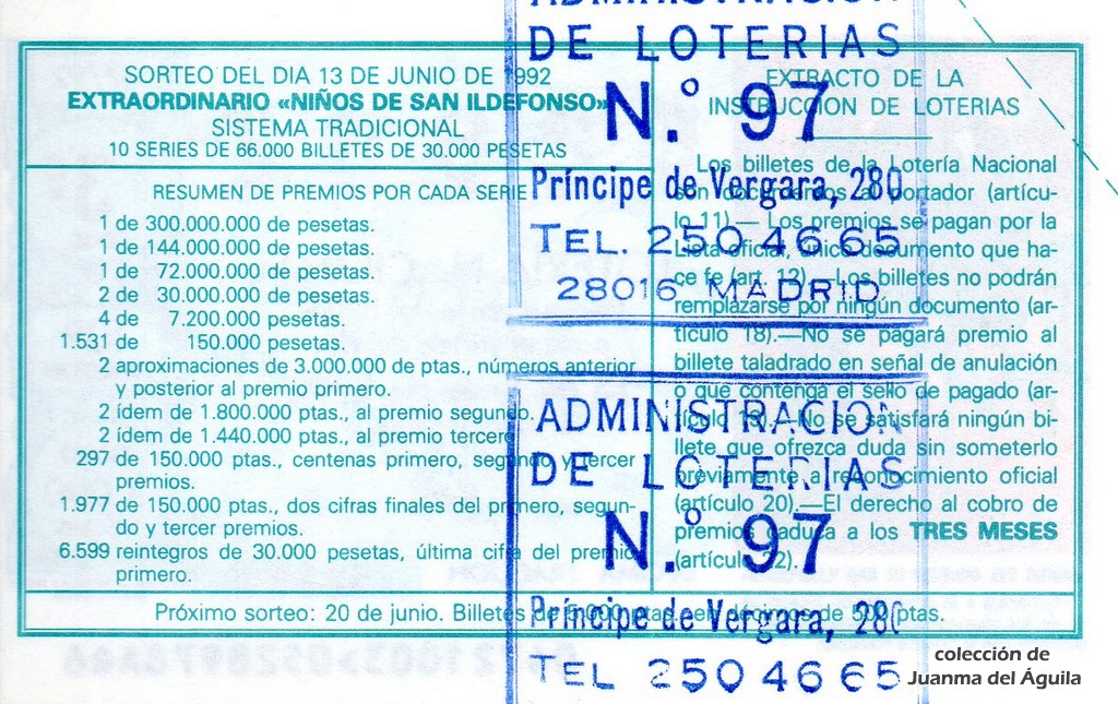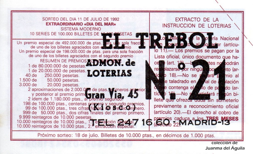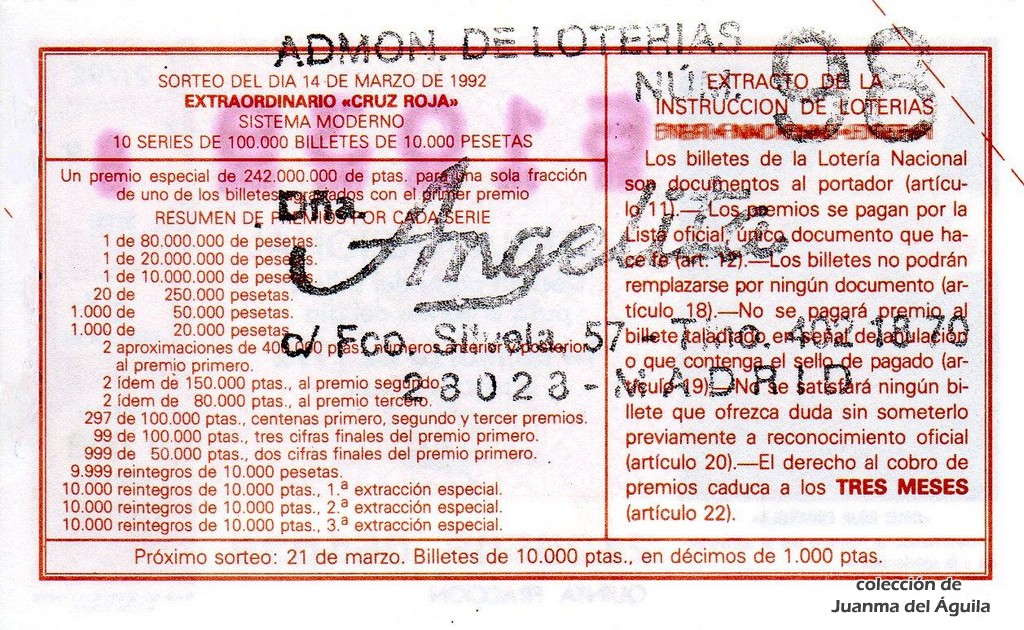 Además se celebró el SORTEO EXTRAORDINARIO «GRAN SORTEO 1992» el 10 de octubre con un primer premio de 100 millones de pesetas.