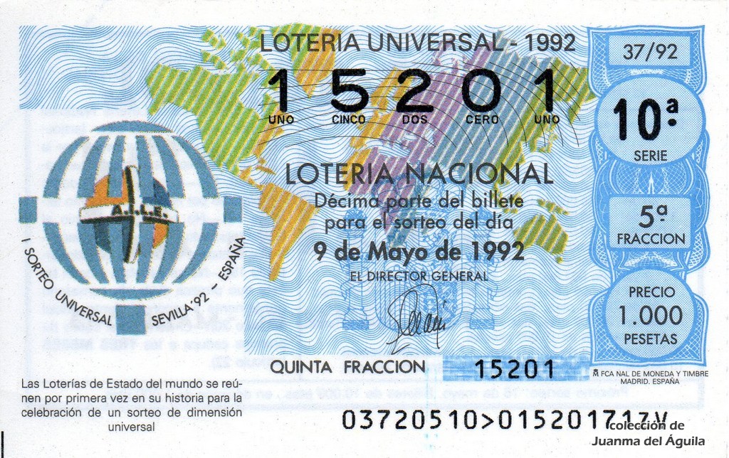 Como colofón a este año inolvidable, el 9 de mayo se celebró, en el recinto ferial de la Expo’92 en Sevilla, el SORTEO EXTRAORDINARIO «SORTEO UNIVERSAL», en el que las loterías de Estado del mundo se reunieron por 1ª vez en su historia para la celebración de un sorteo de dimensión universal.