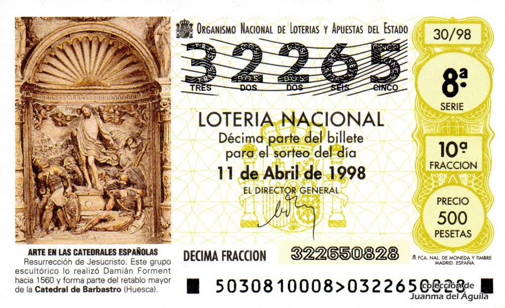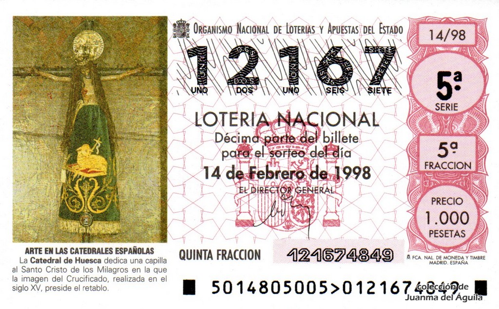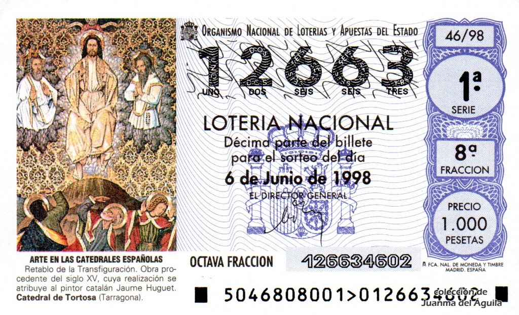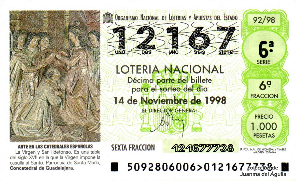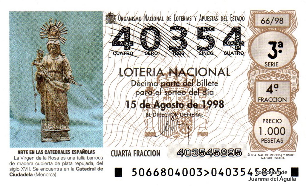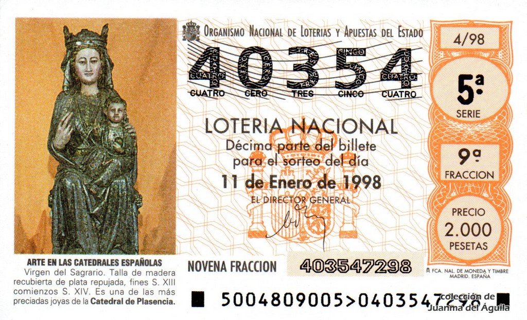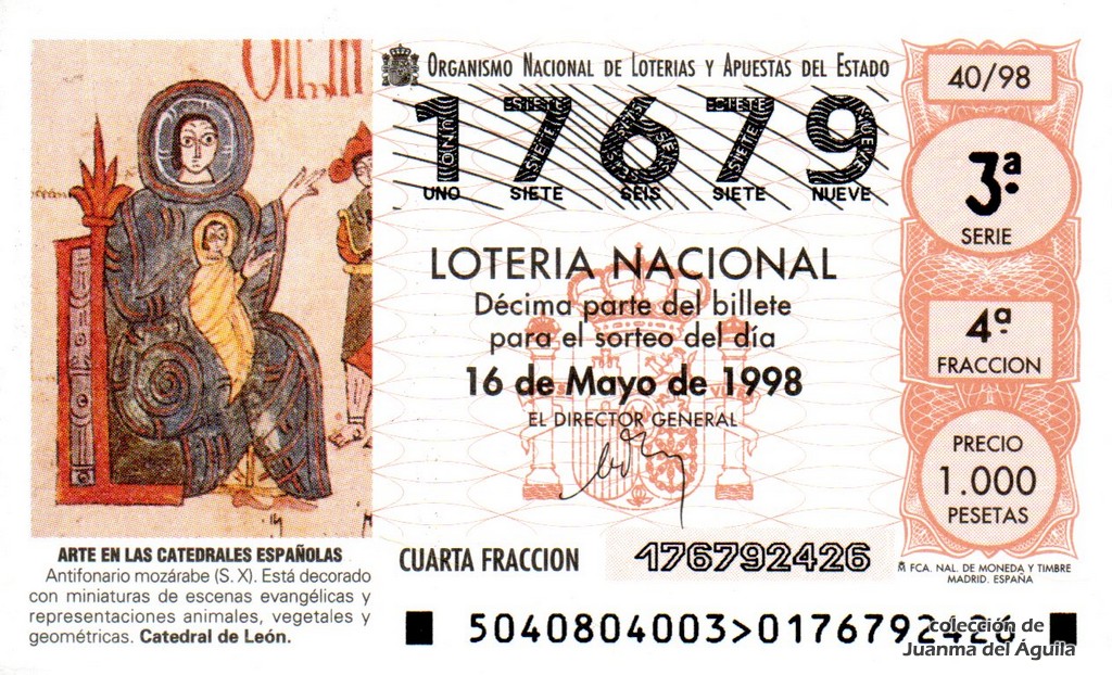 La Lotería Nacional del año 1998 está dedicada a el "Arte en las Catedrales Españolas".