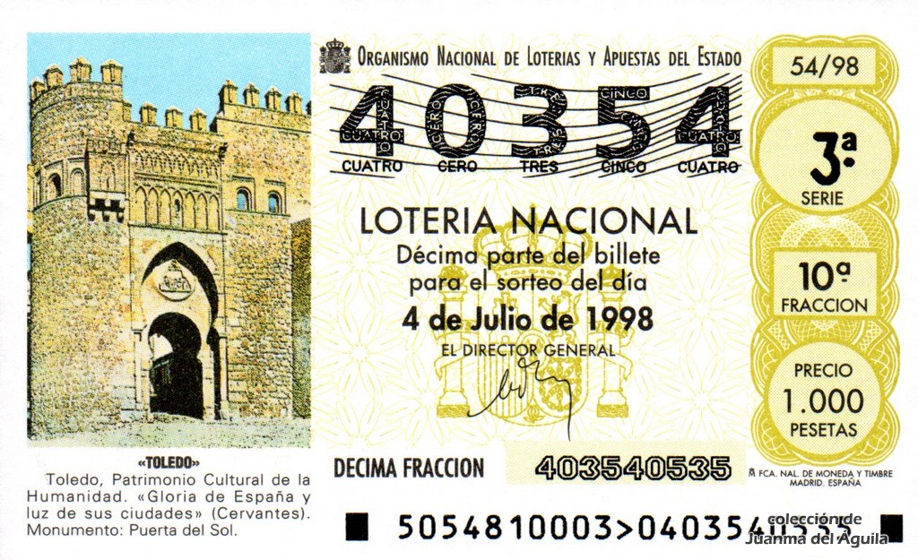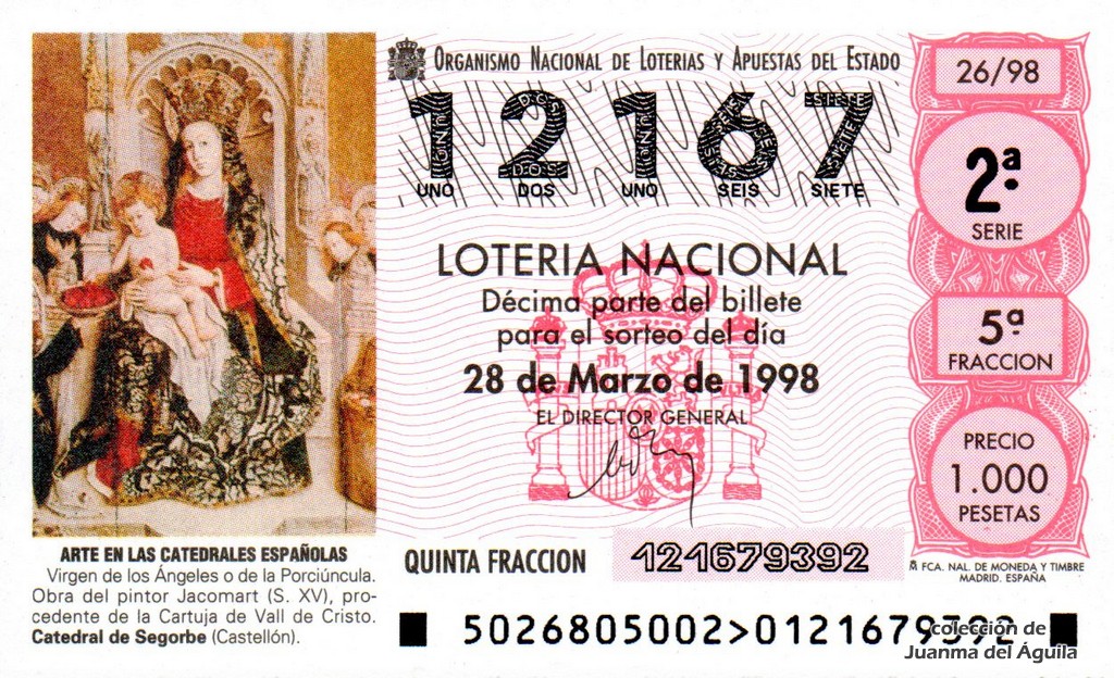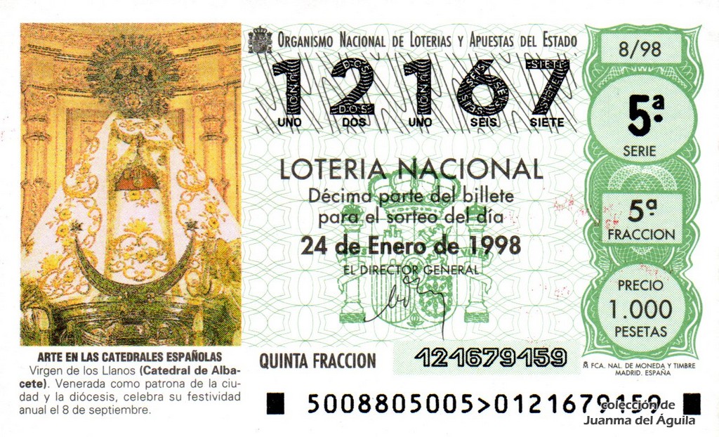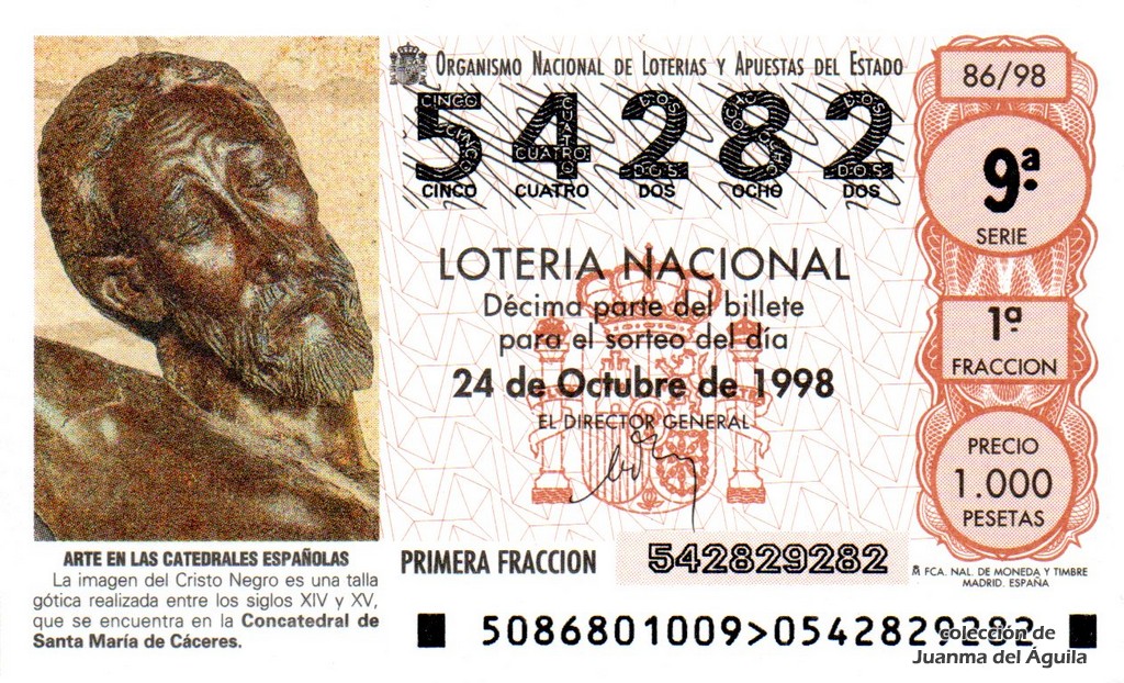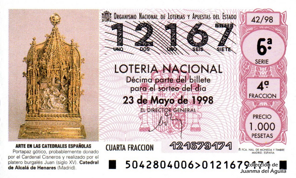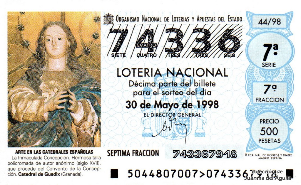 La Lotería Nacional del año 1998 está dedicada a el "Arte en las Catedrales Españolas".