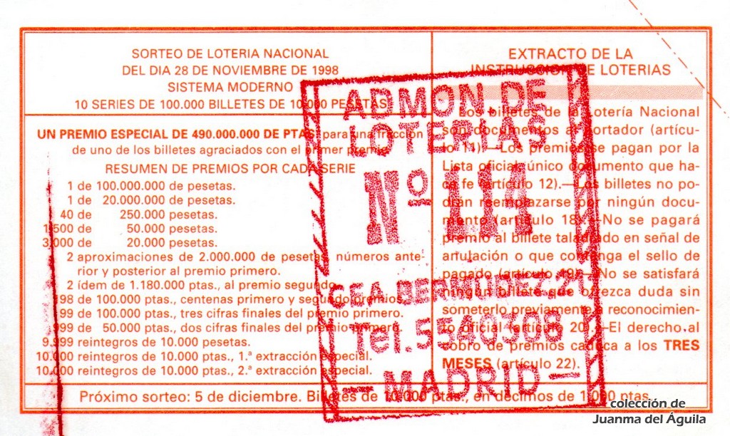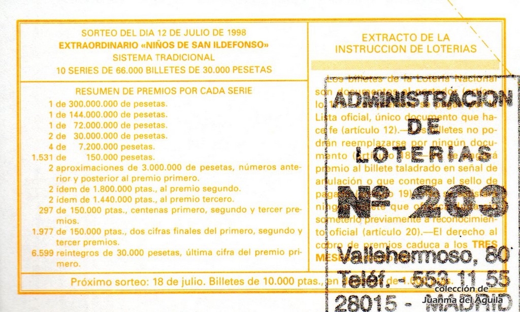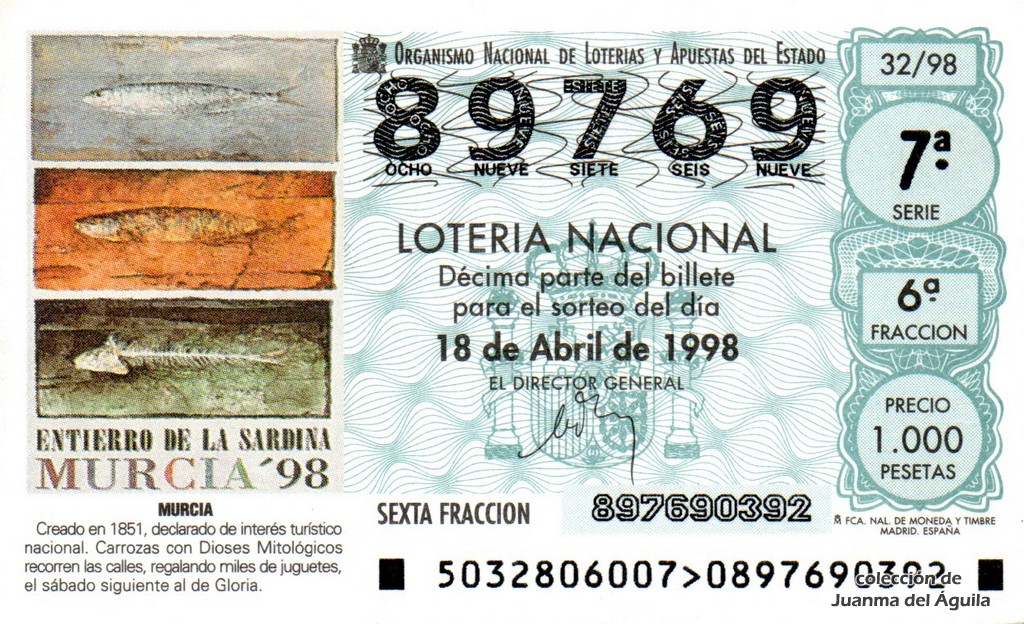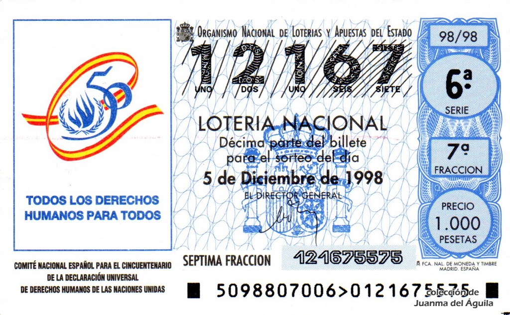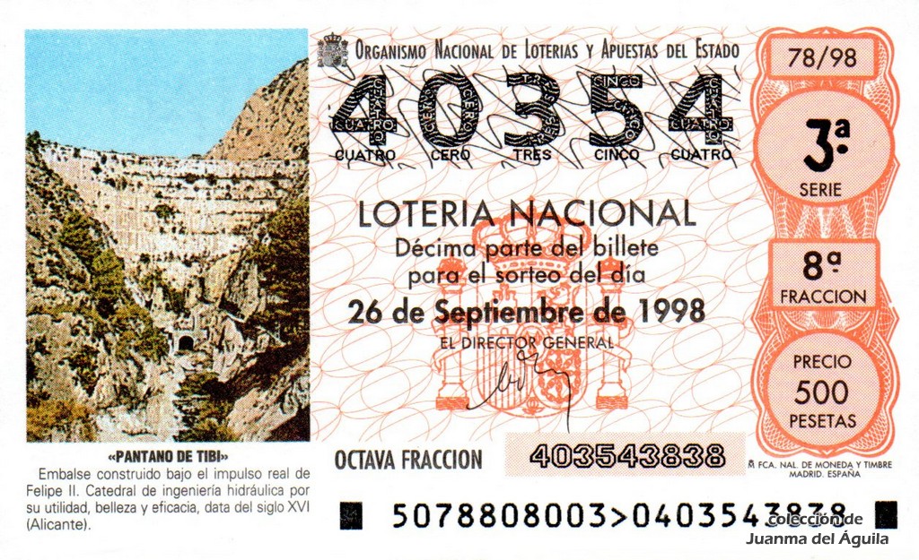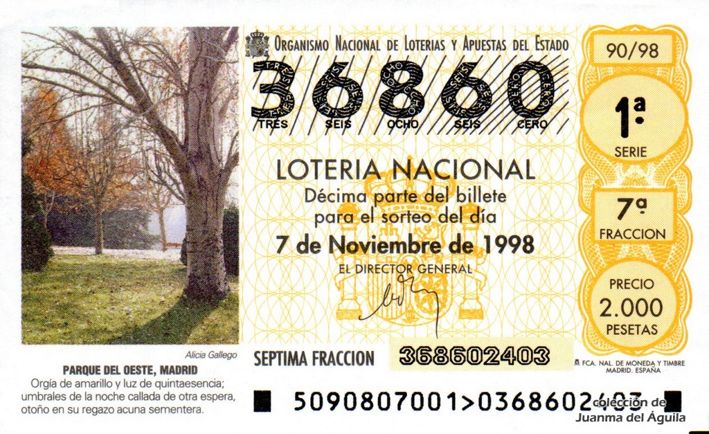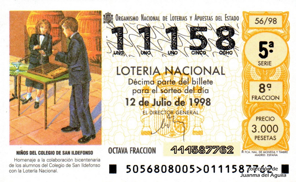 La Lotería Nacional del año 1998 está dedicada a el "Arte en las Catedrales Españolas".