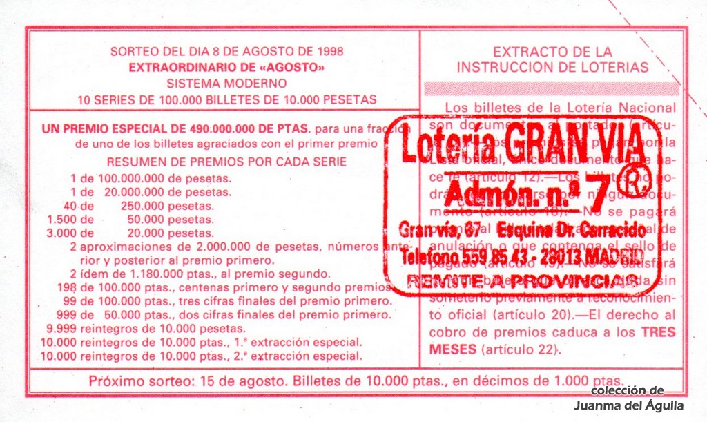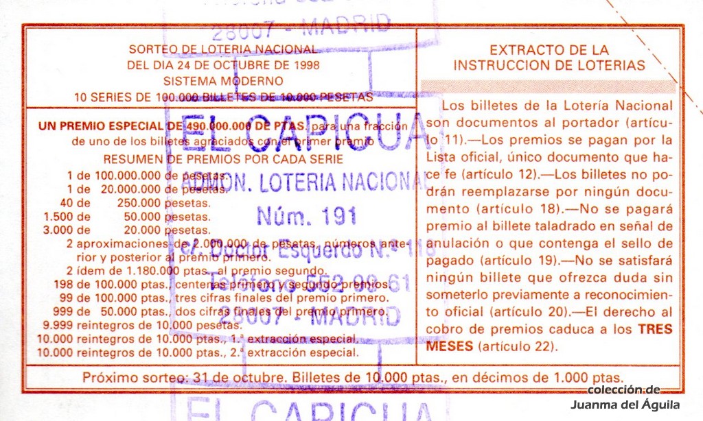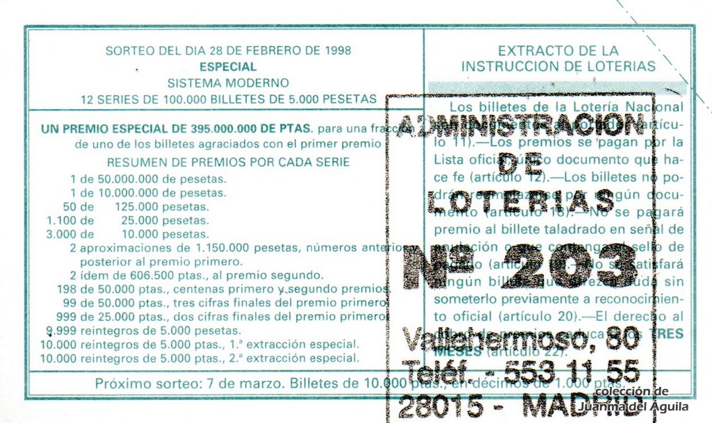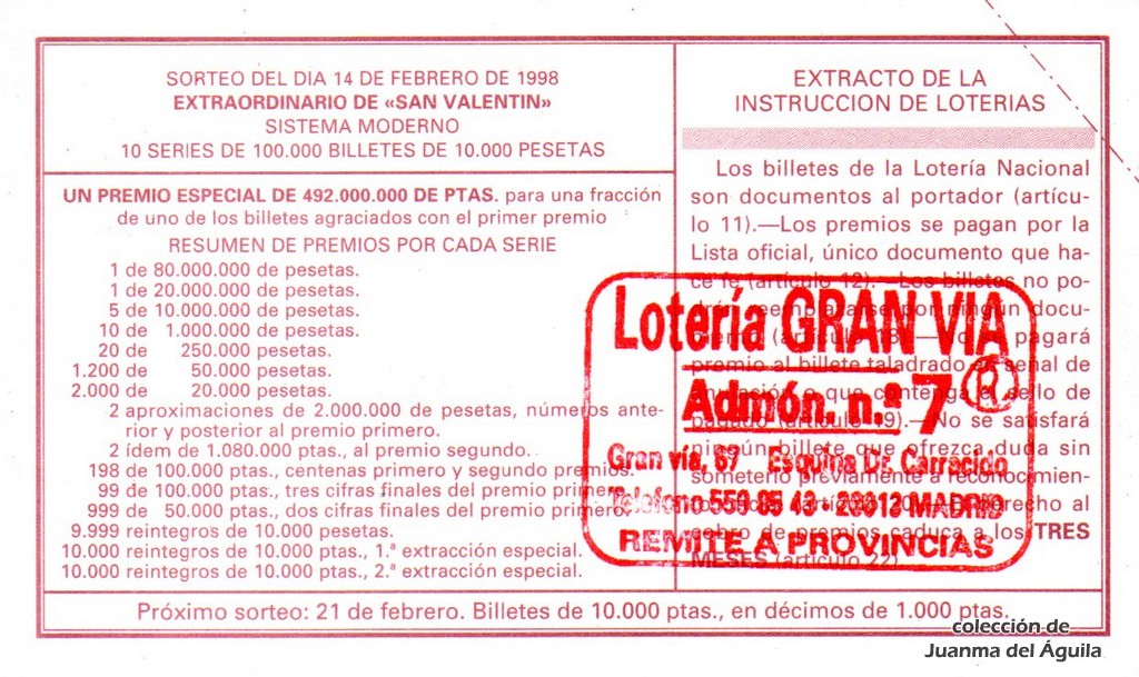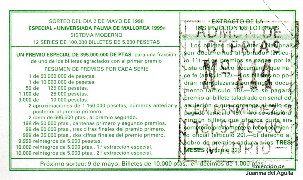 Además se celebraron 2 SORTEOS por el SISTEMA TRADICIONAL que son los siguientes: