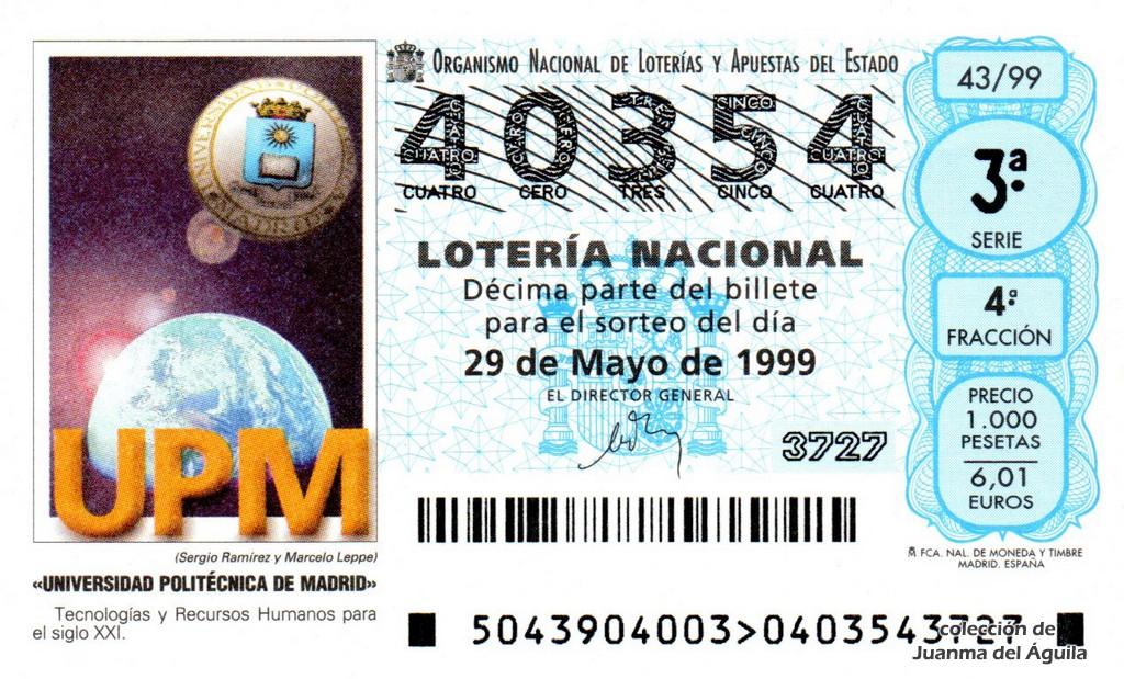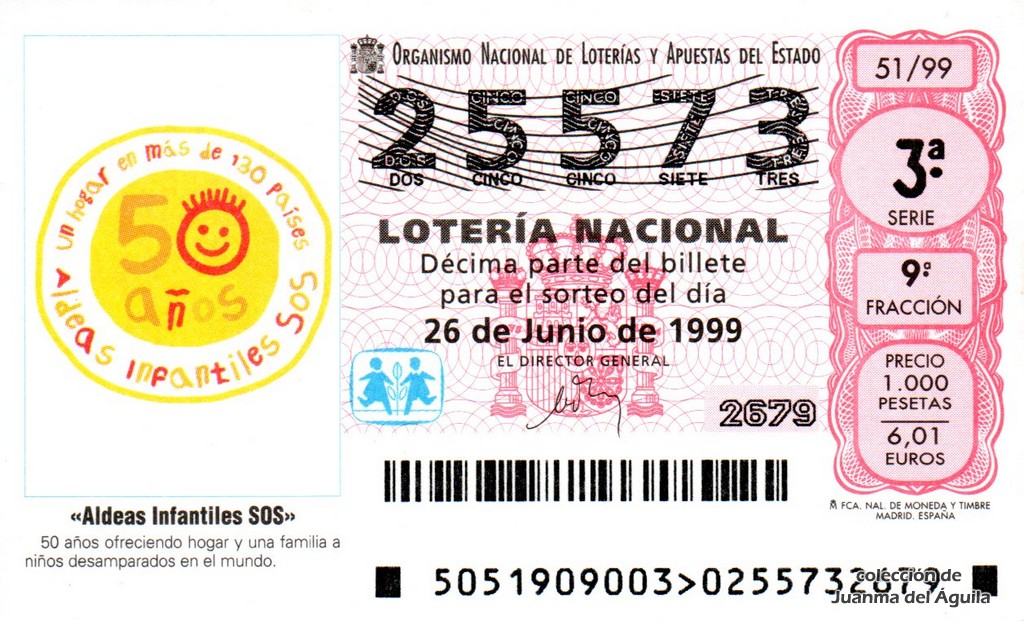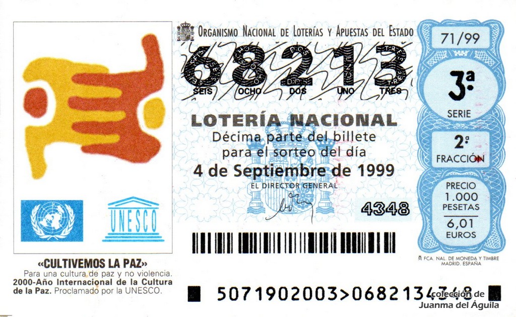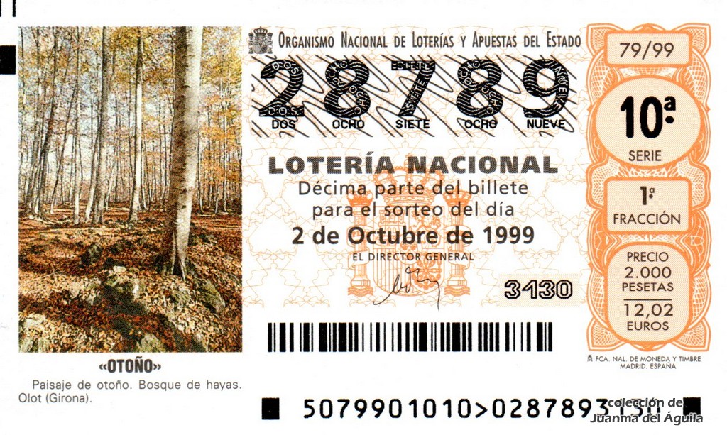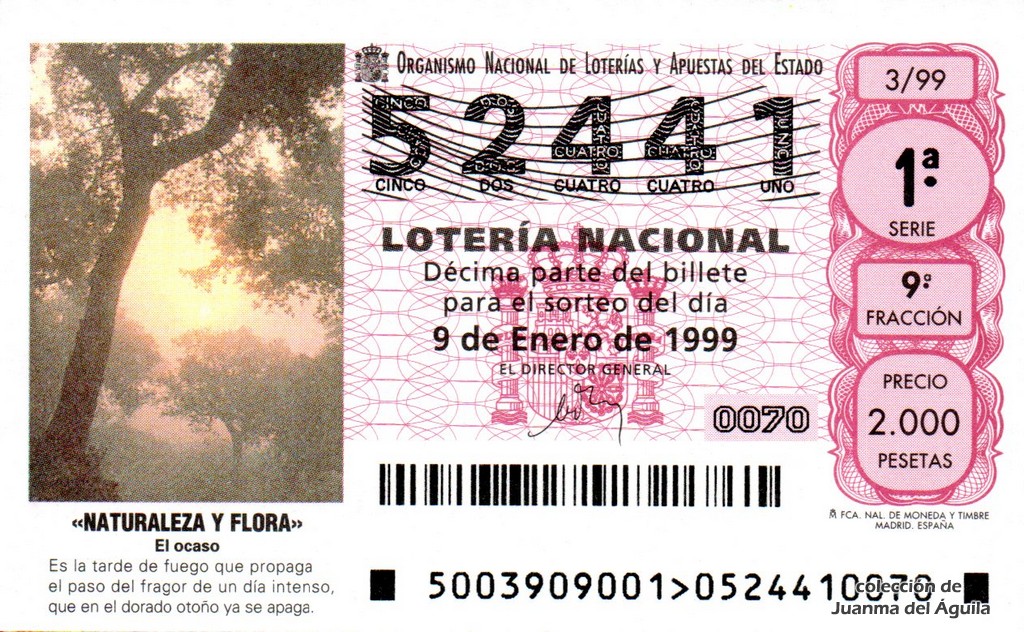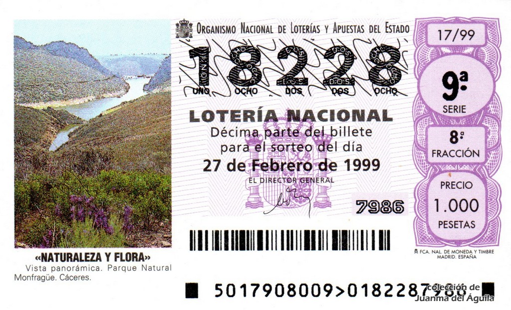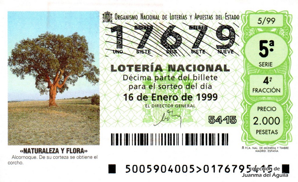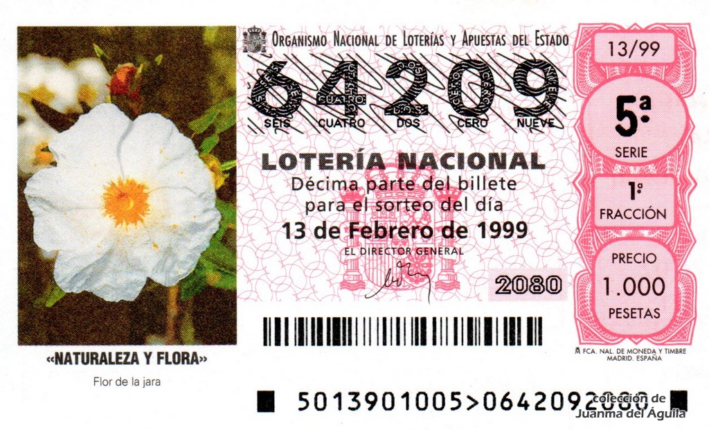 La Lotería Nacional del año 1999 está dedicada a "Naturaleza y Flora".