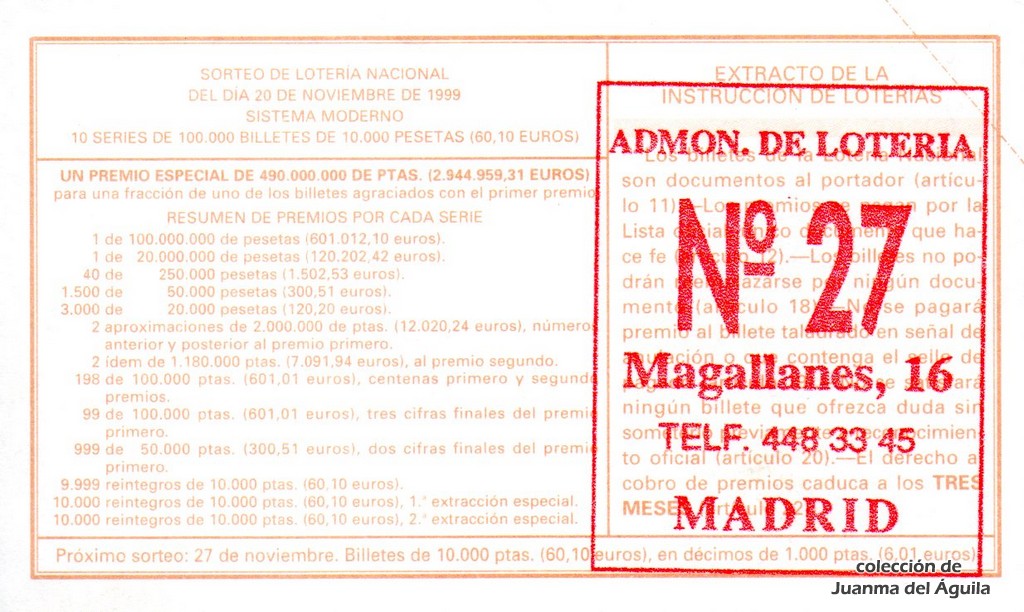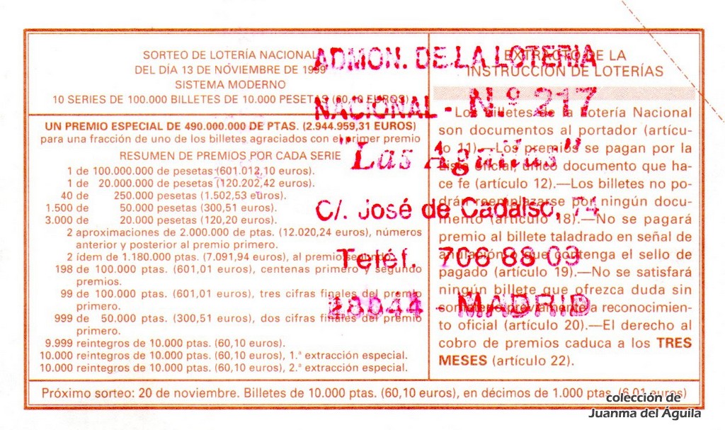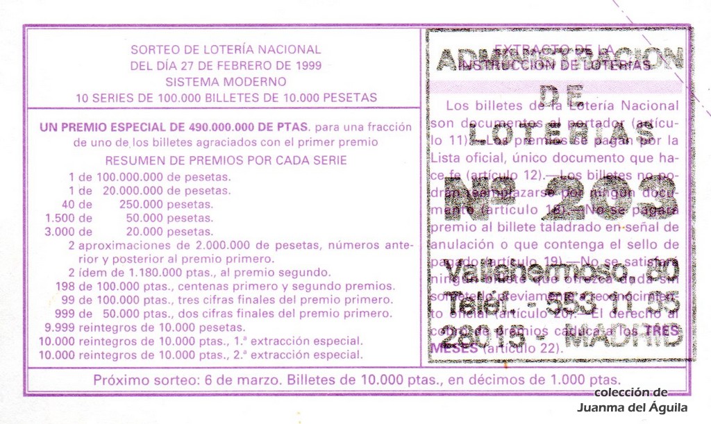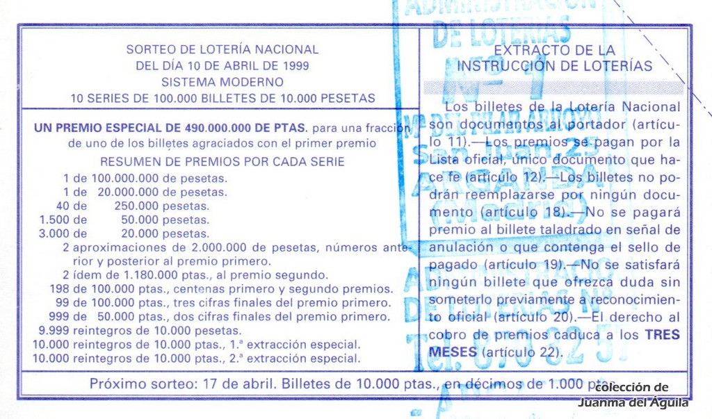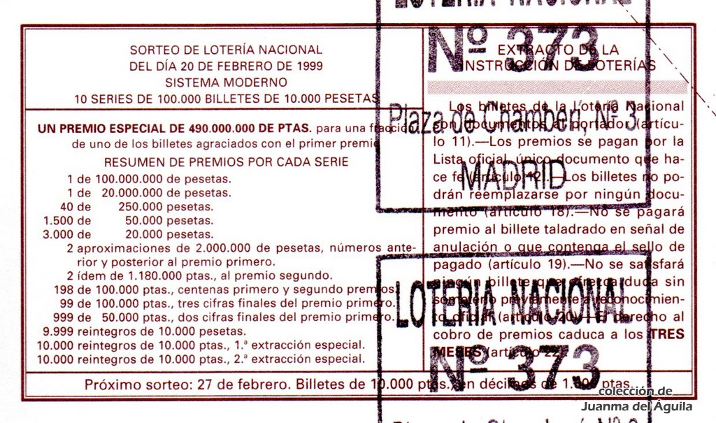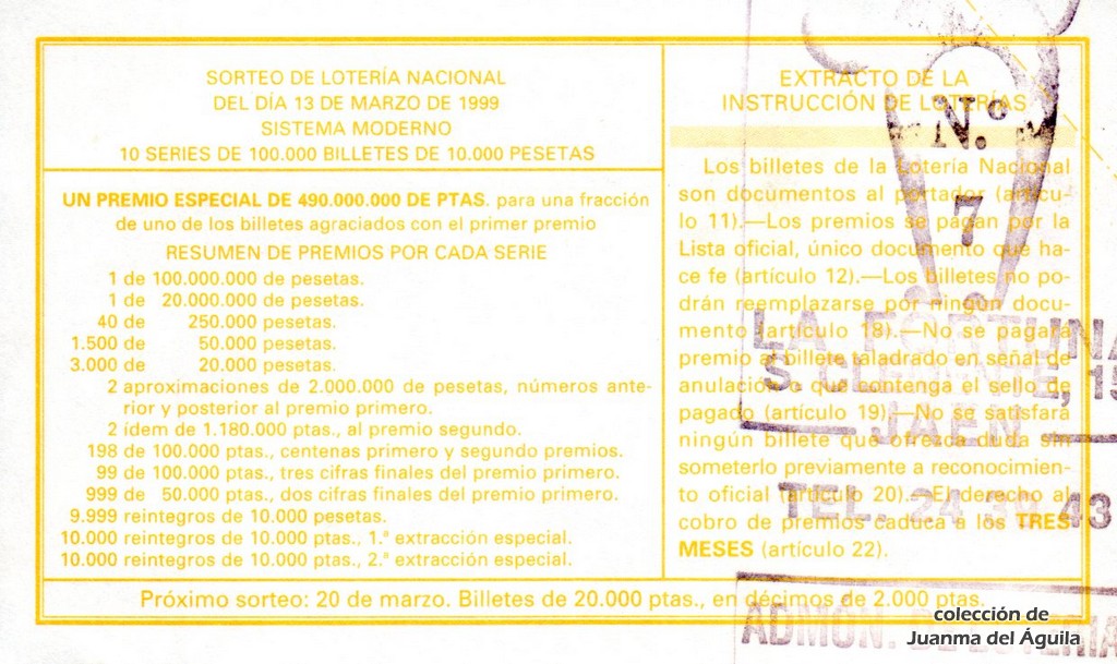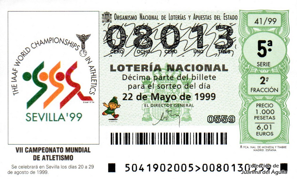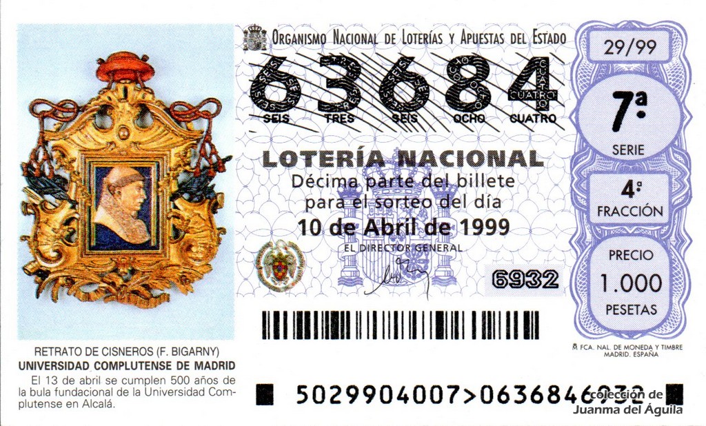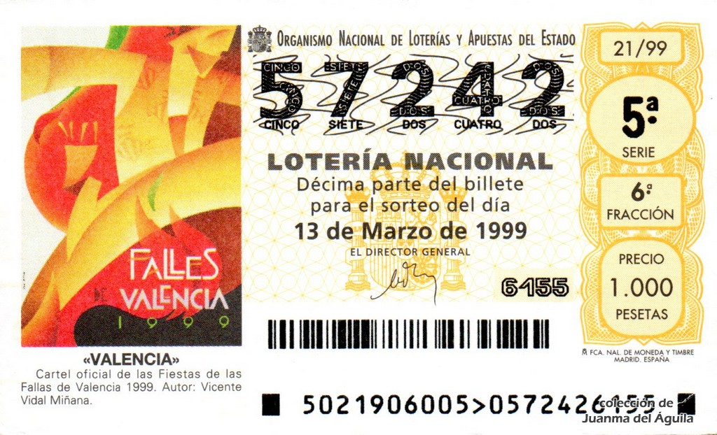 La Lotería Nacional del año 1999 está dedicada a "Naturaleza y Flora".