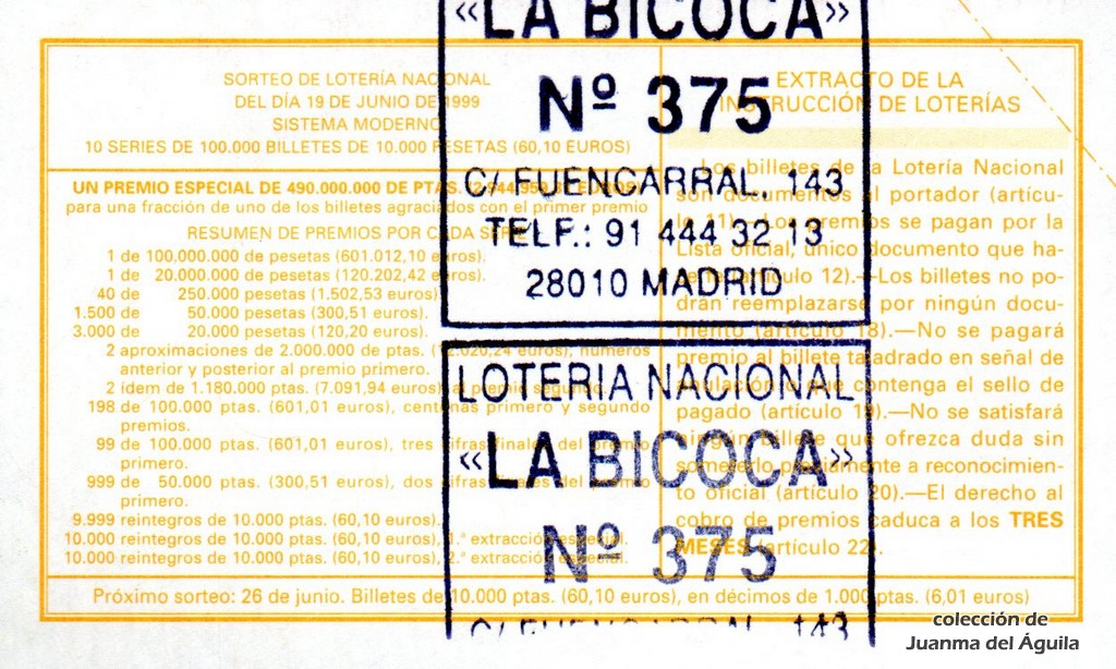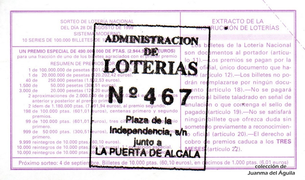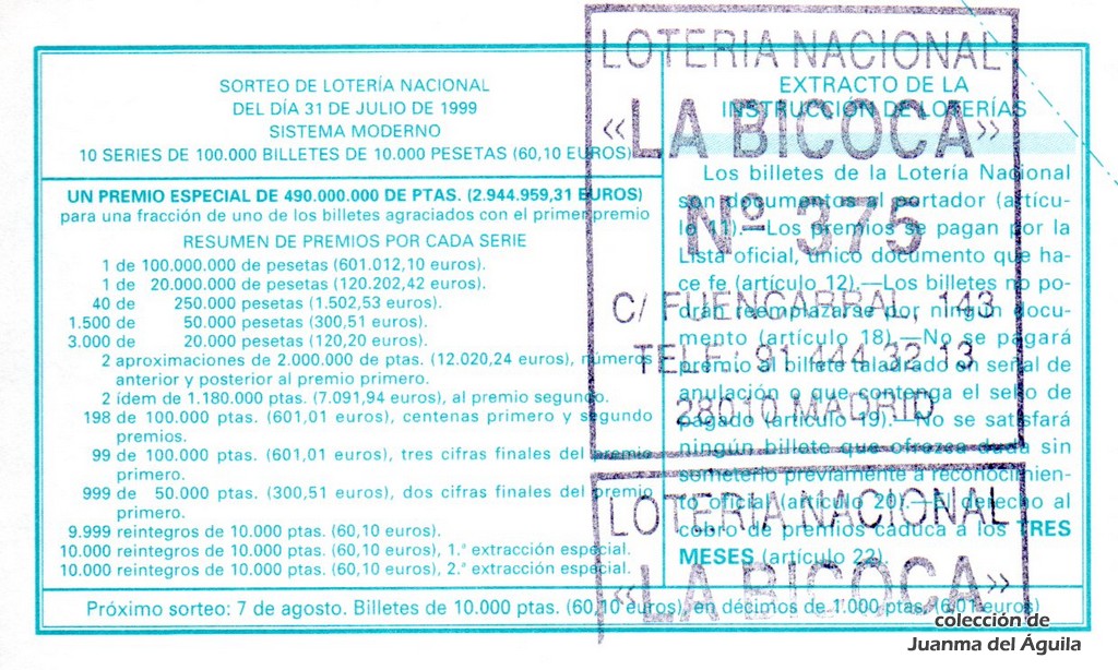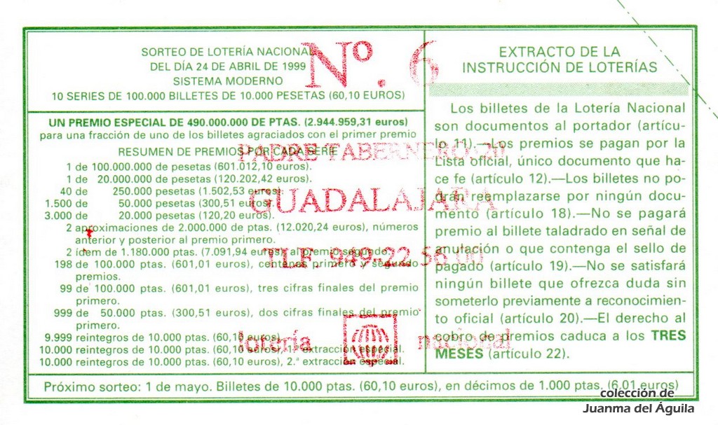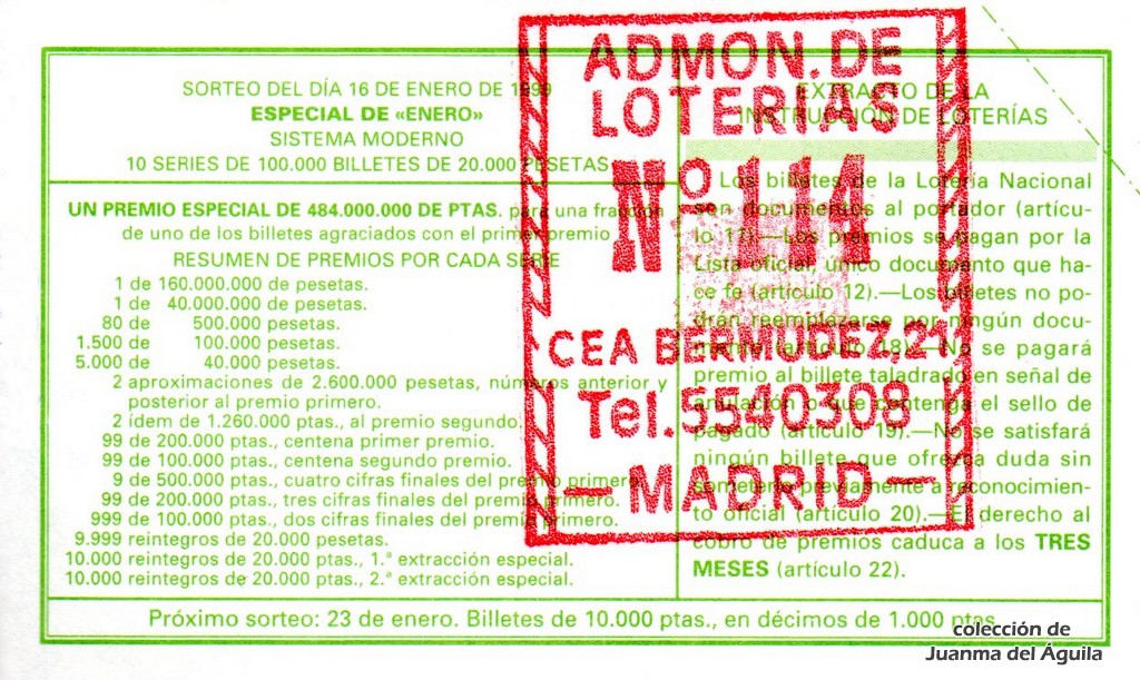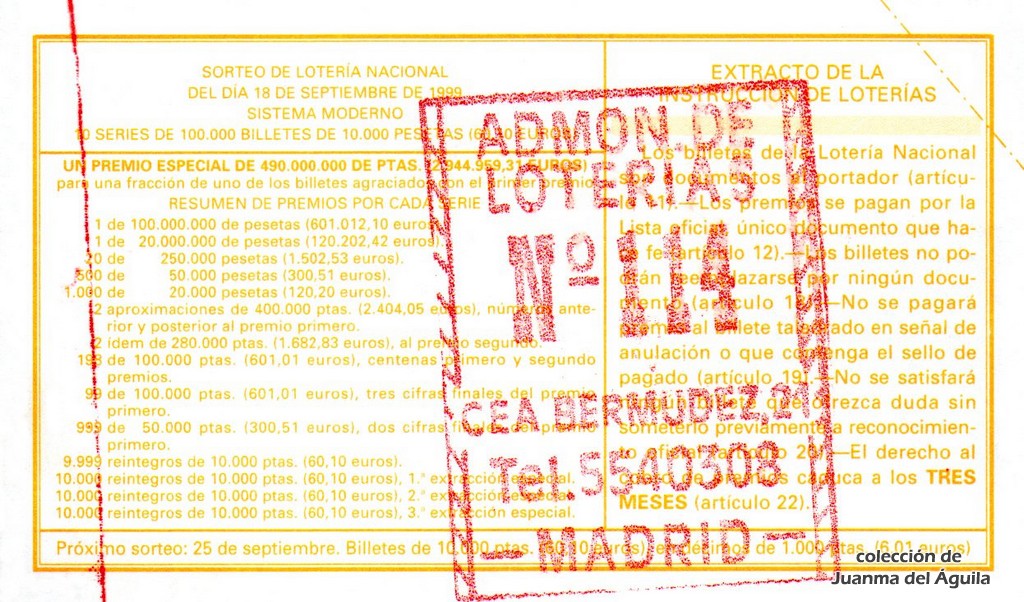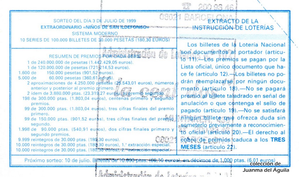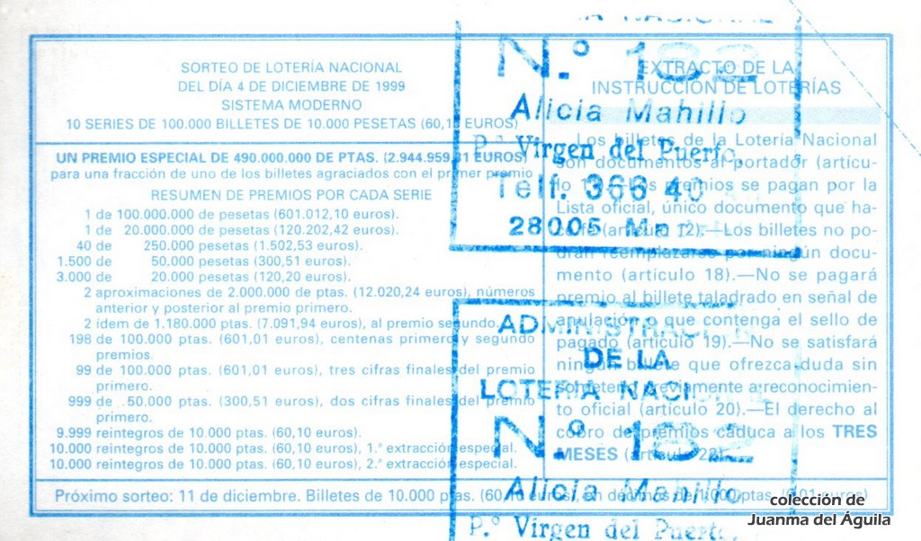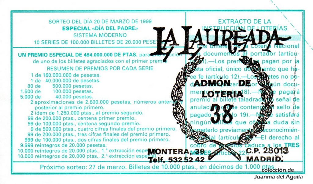 La Lotería Nacional del año 1999 está dedicada a "Naturaleza y Flora".
