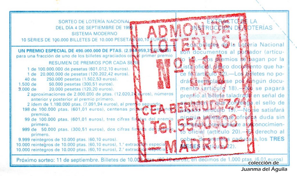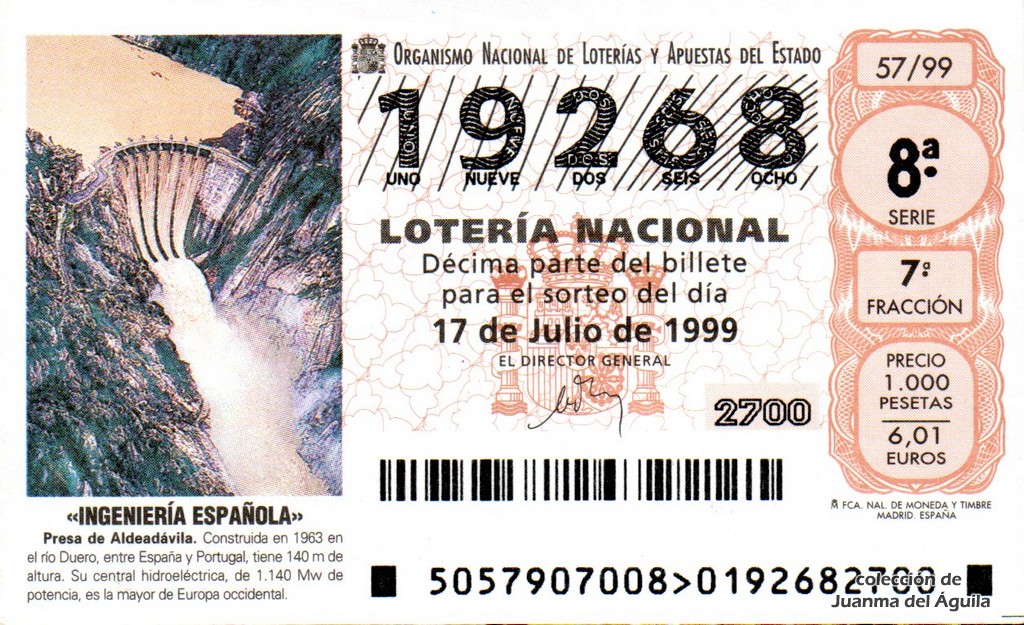 5 sorteos fueron dedicados al tema "INGENIERÍA ESPAÑOLA"; el 17 y 31 de julio y el 7, 14 y 28 de agosto.