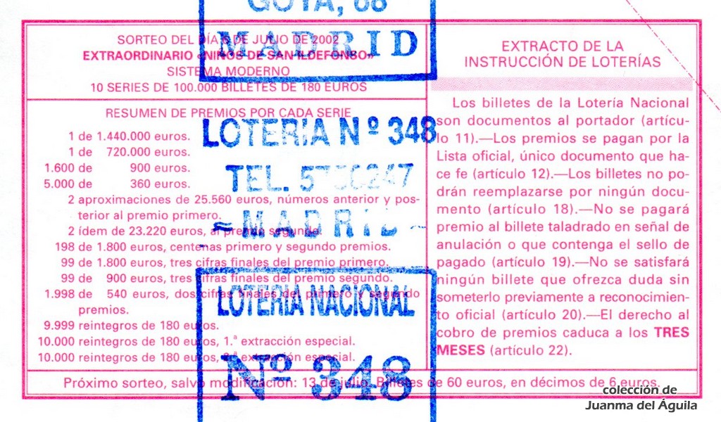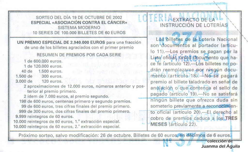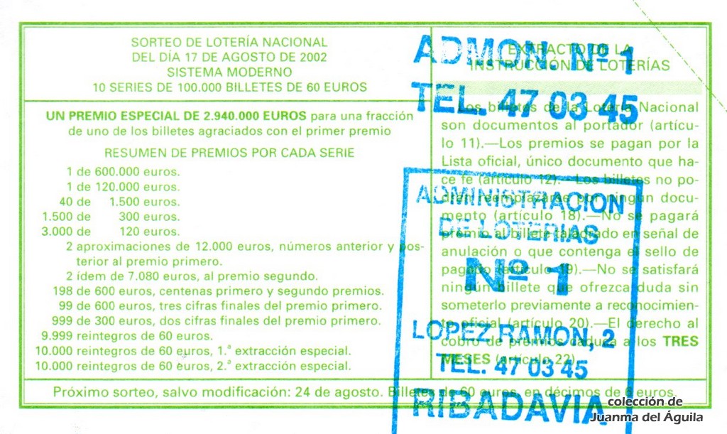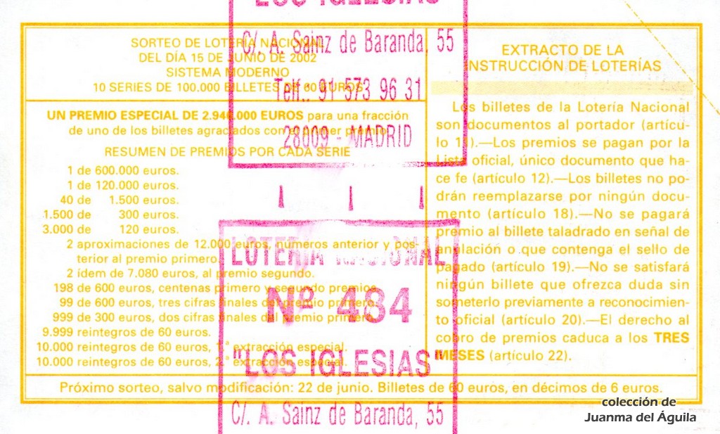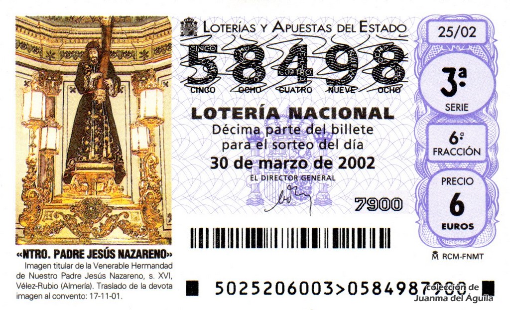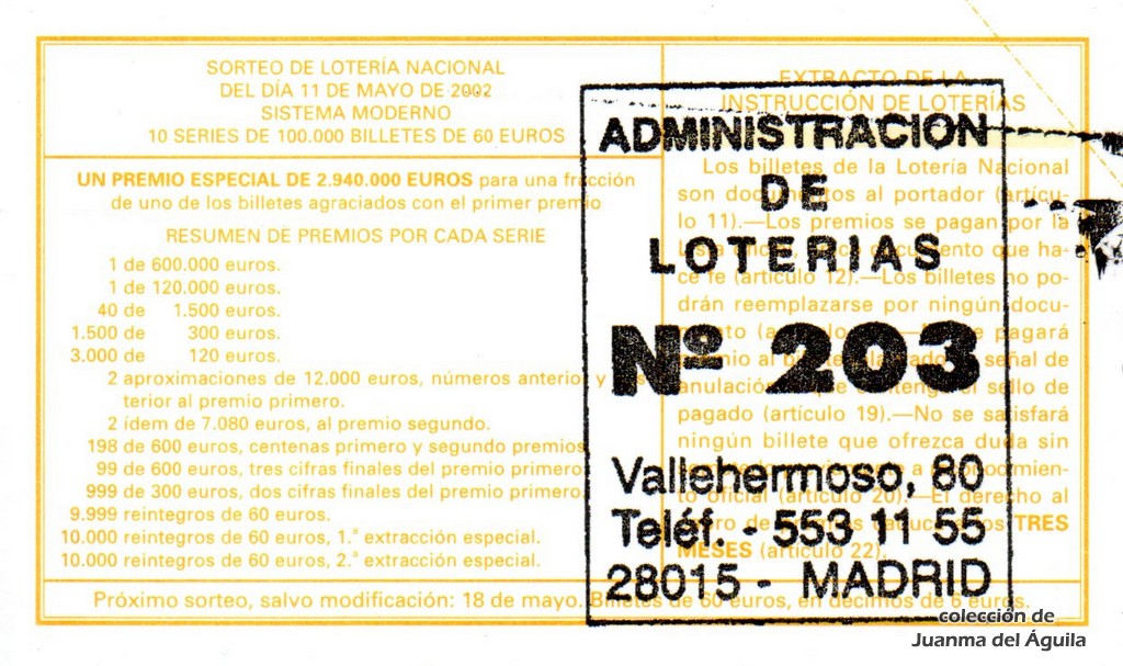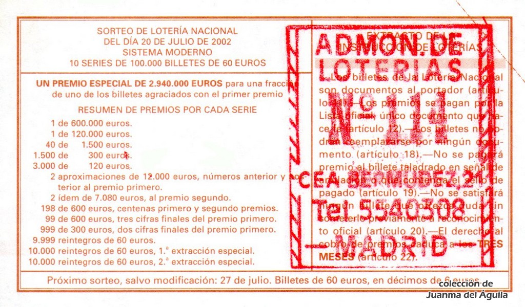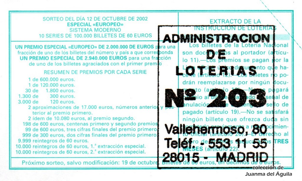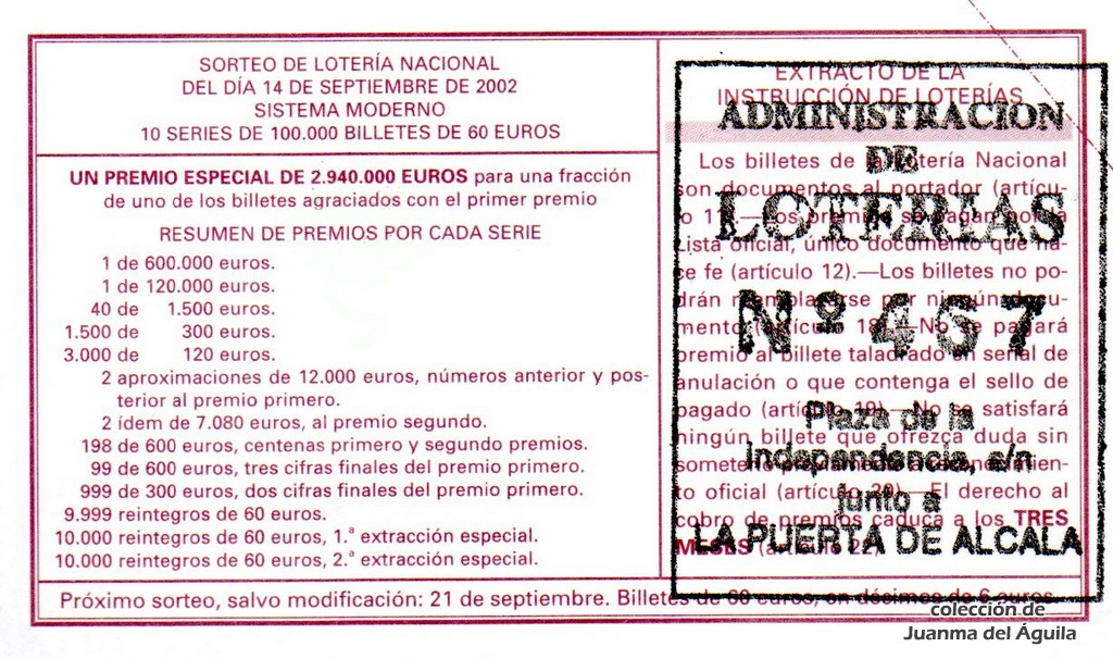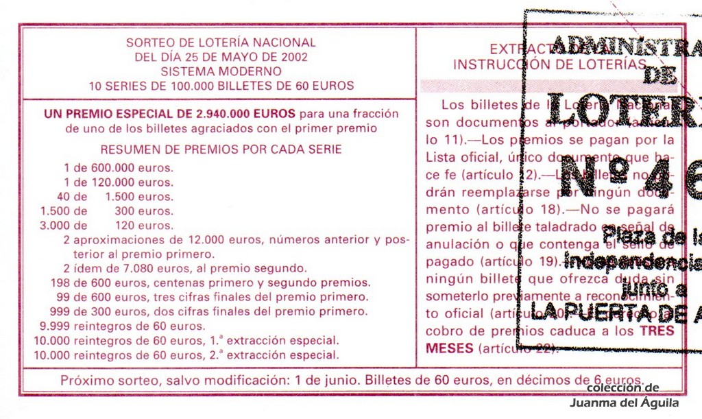 Los premios de este sorteo, a partir del 1 de marzo de 2002, se cobrarán en euros.