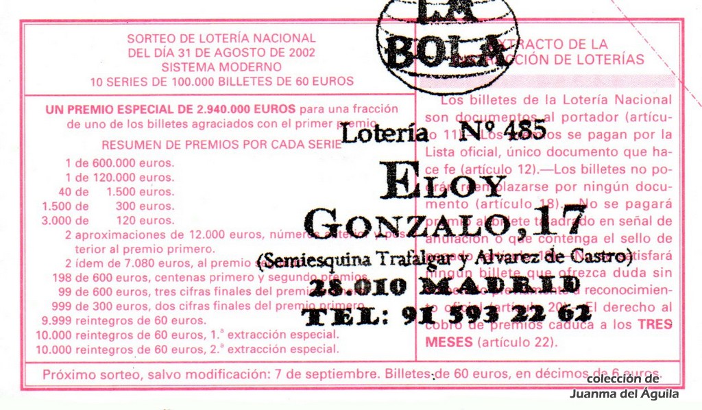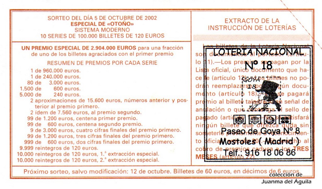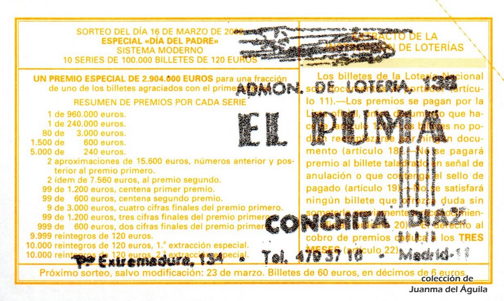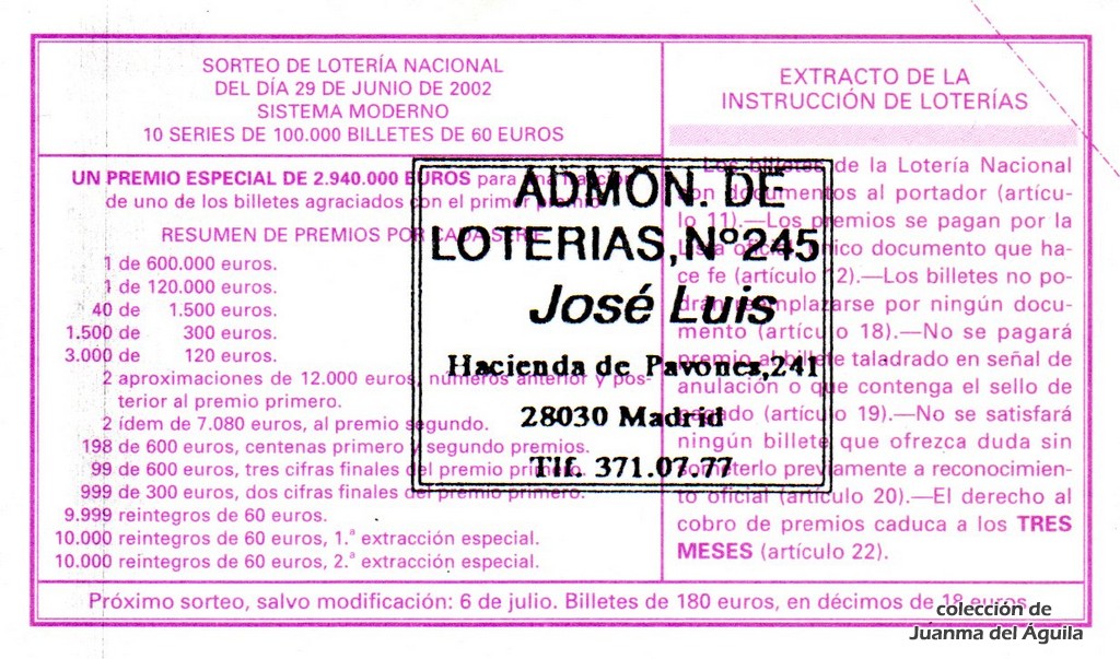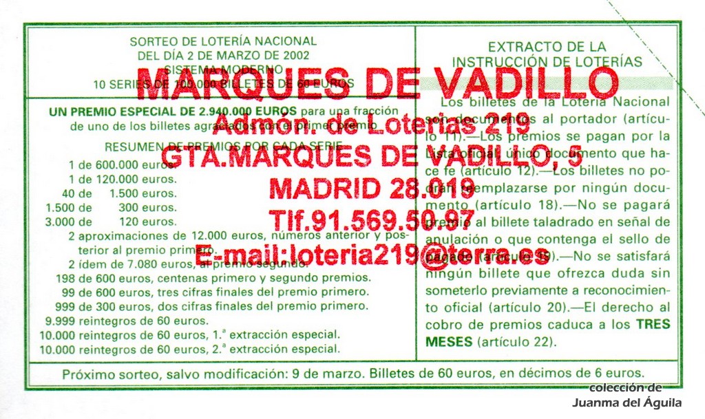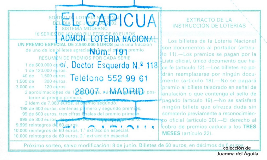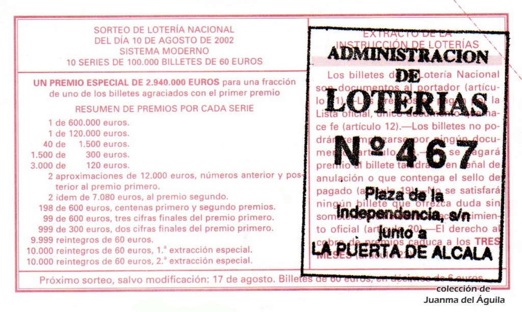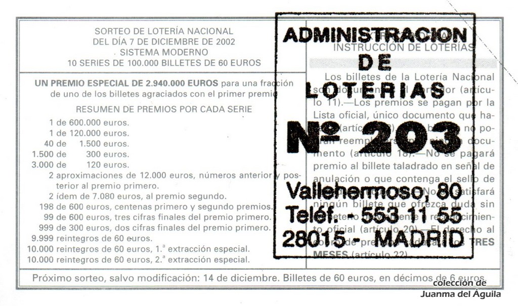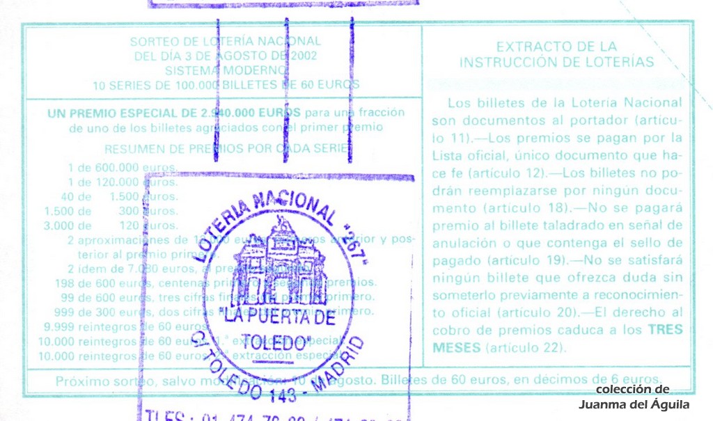 Los premios de este sorteo, a partir del 1 de marzo de 2002, se cobrarán en euros.