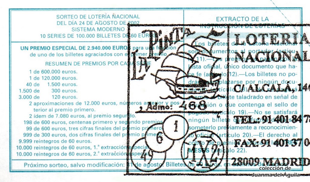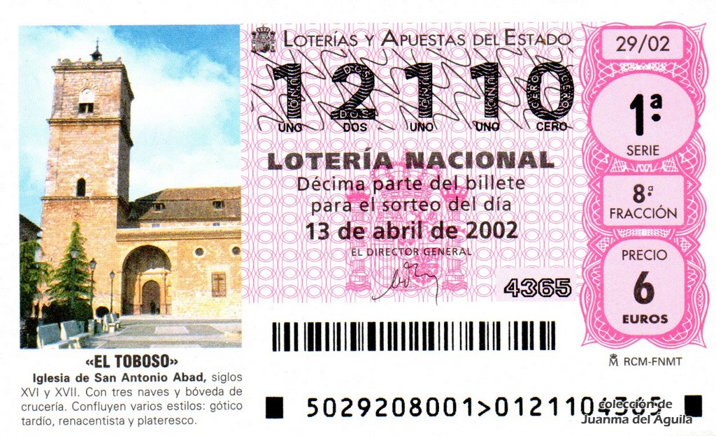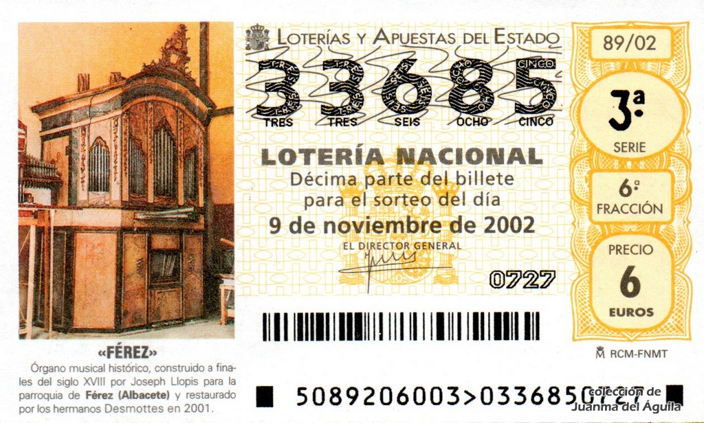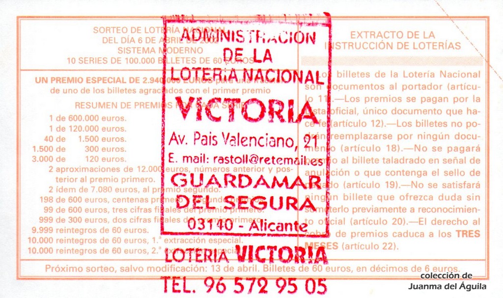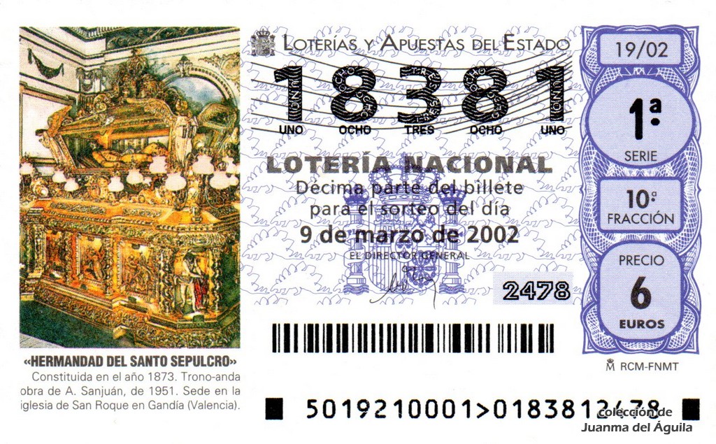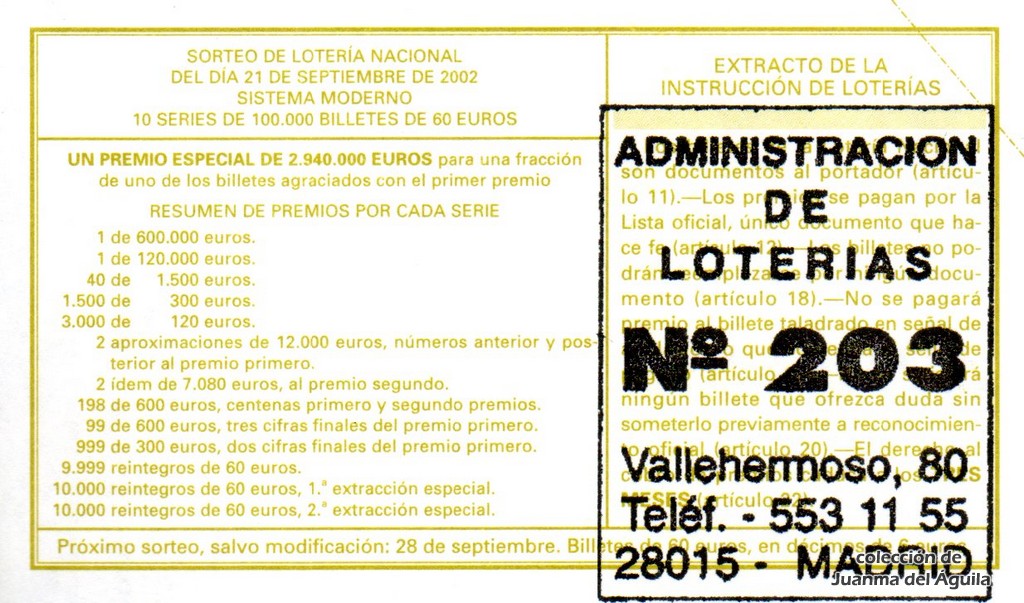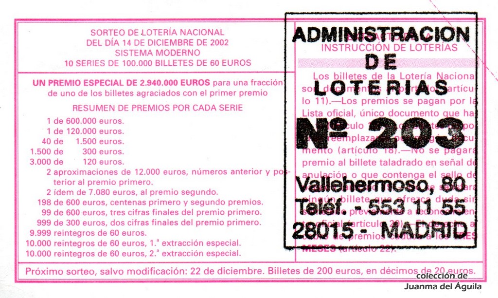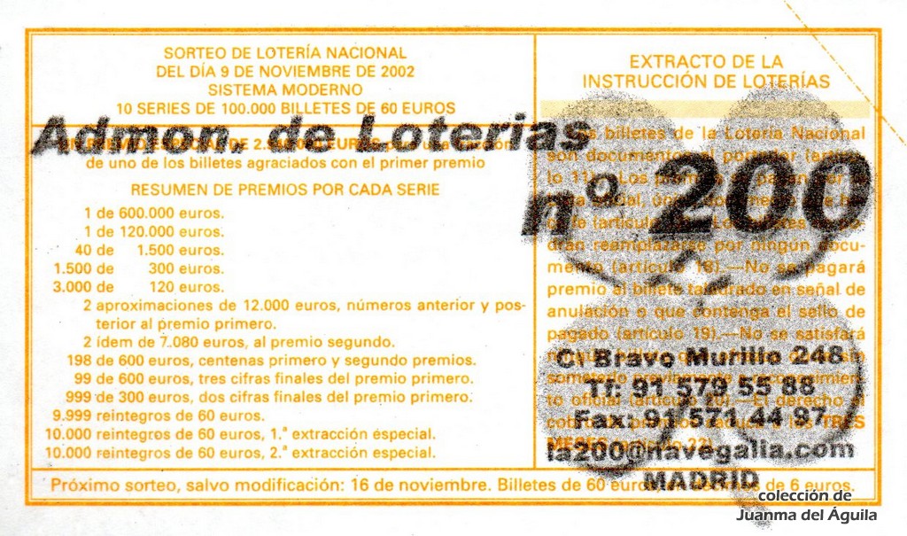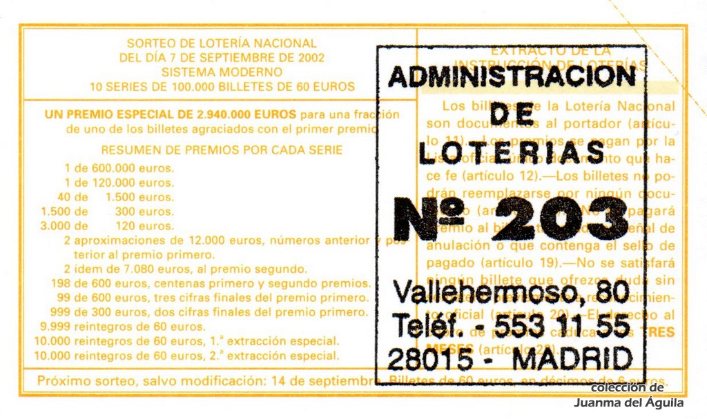 Los premios de este sorteo, a partir del 1 de marzo de 2002, se cobrarán en euros.