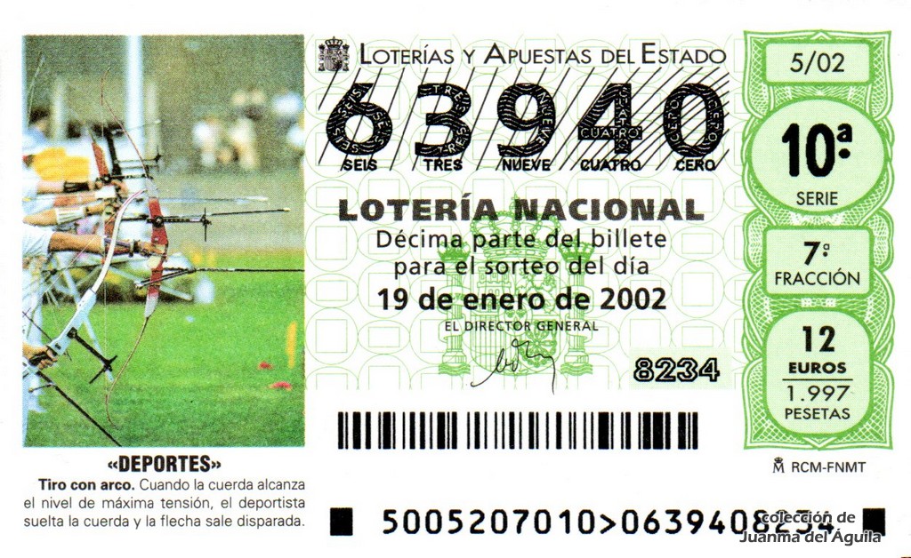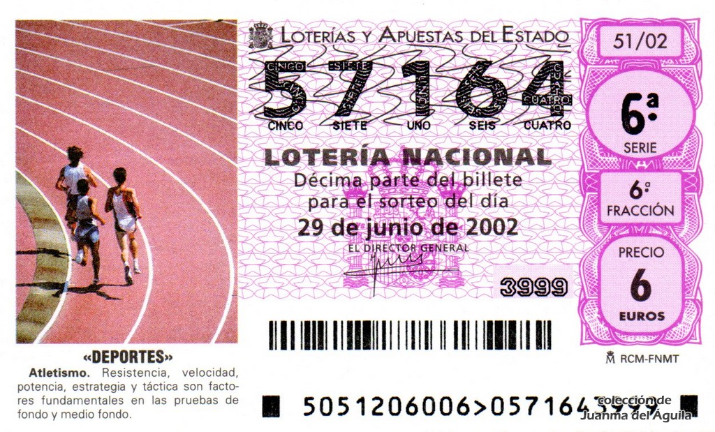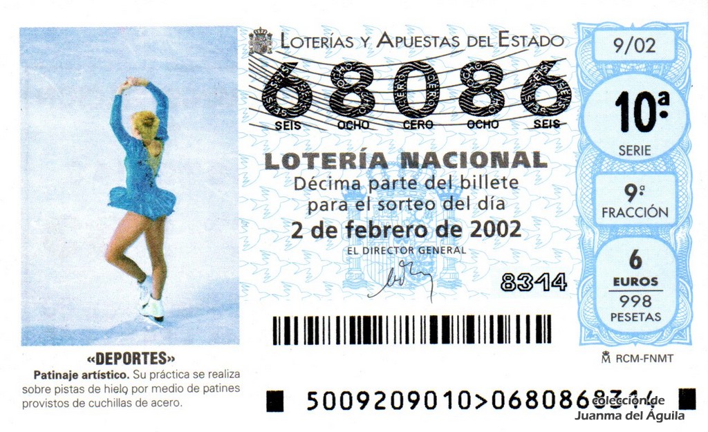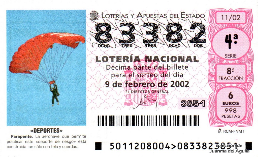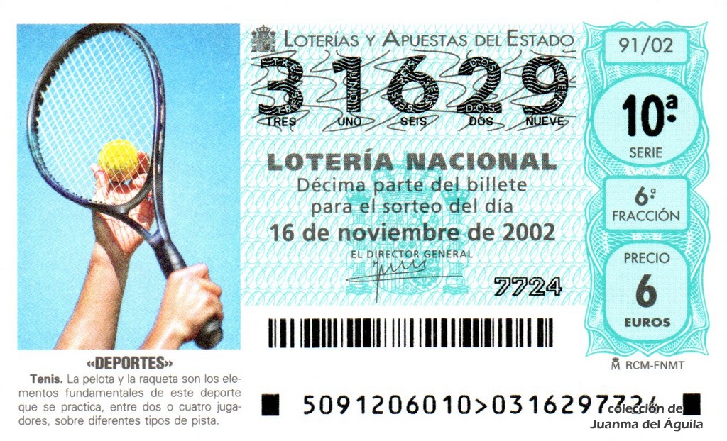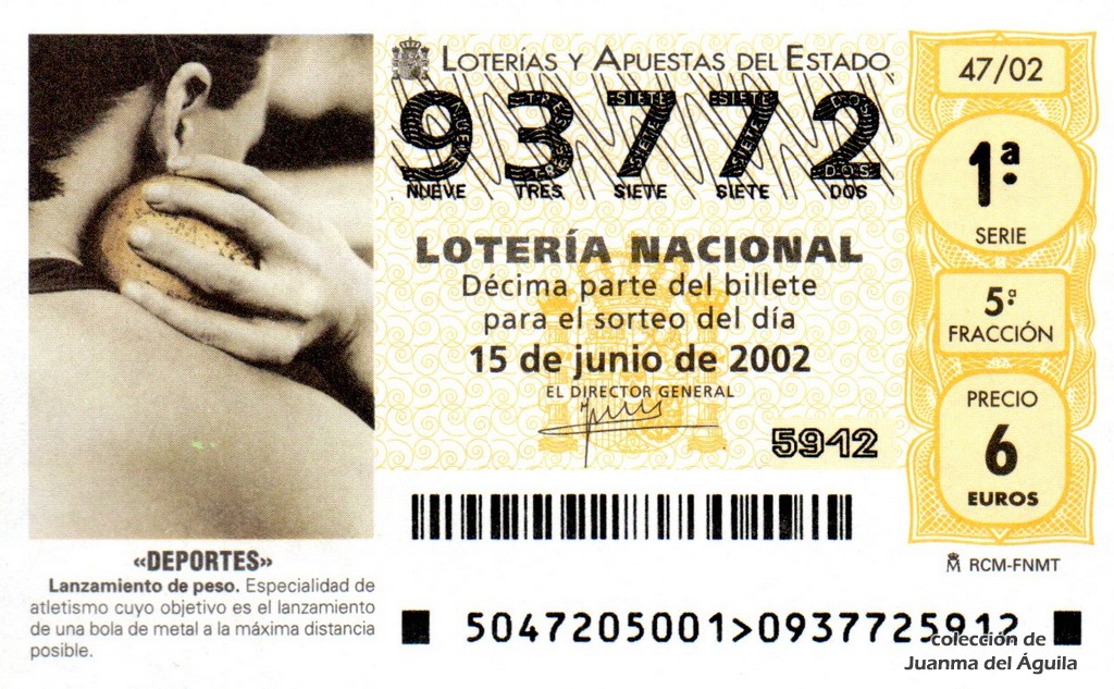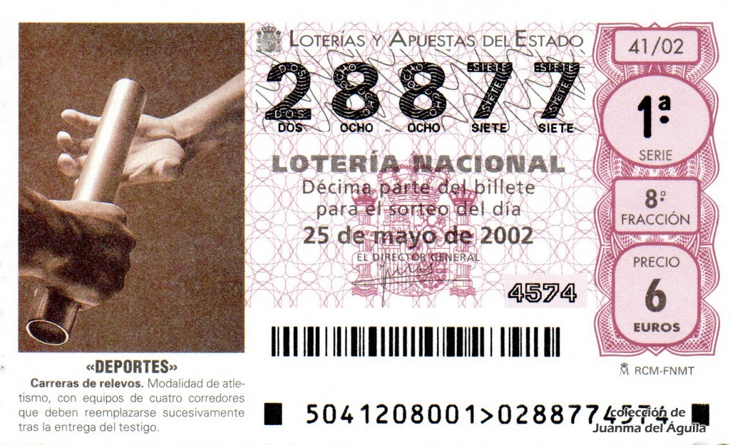 La Lotería Nacional del año 2002 está dedicada a "Deportes".