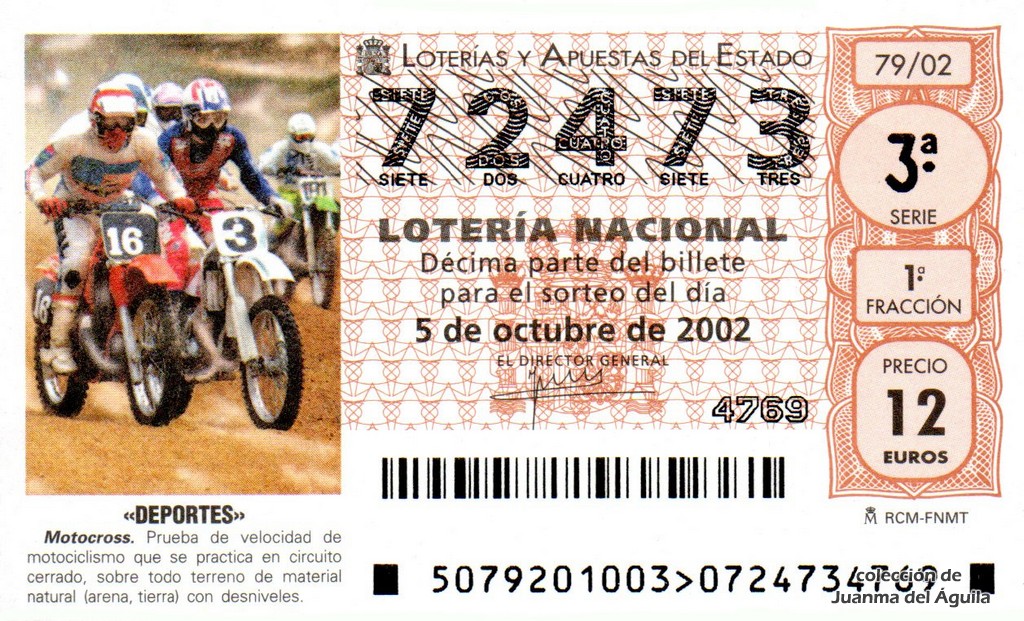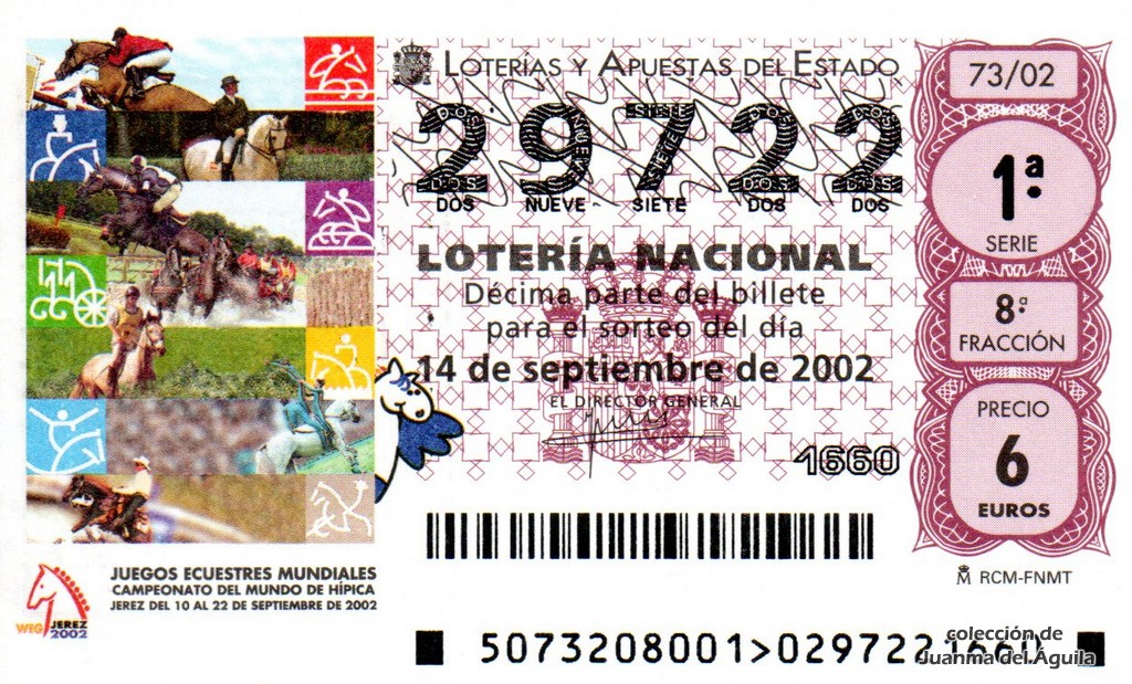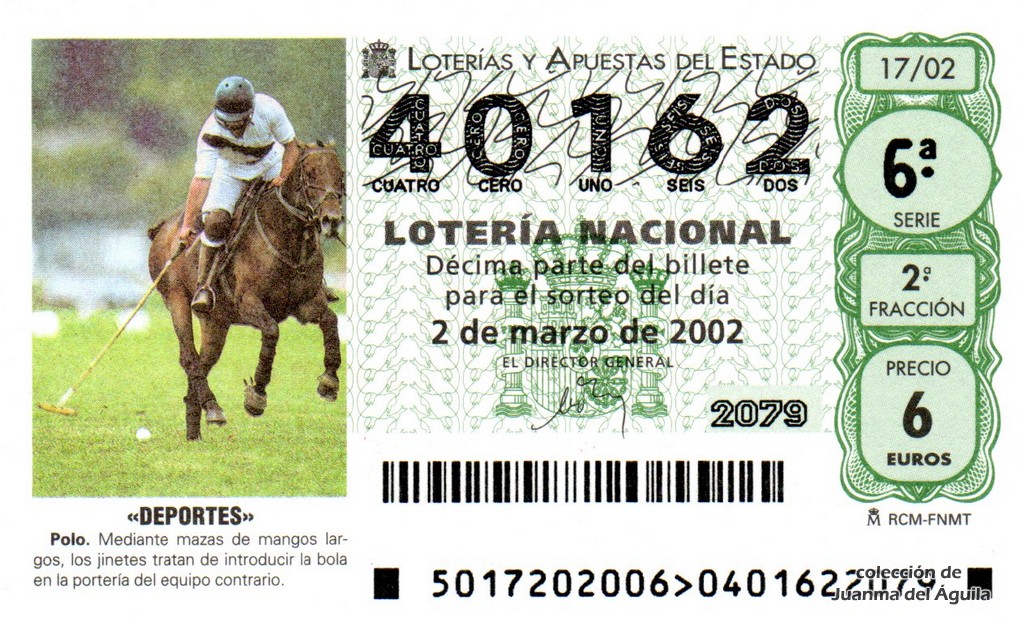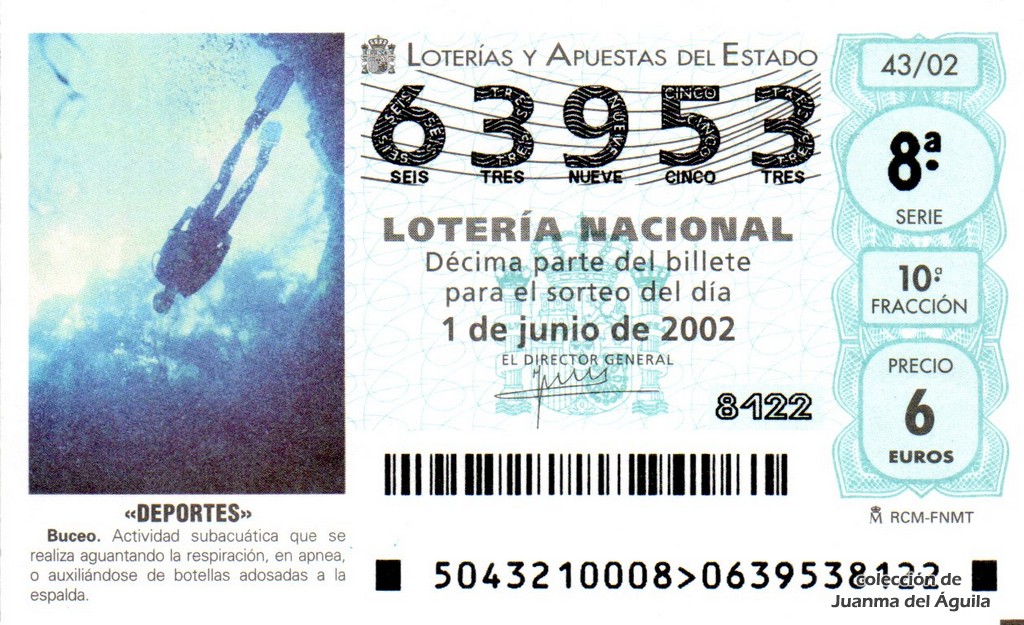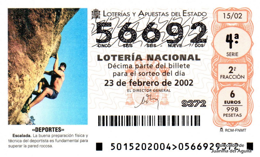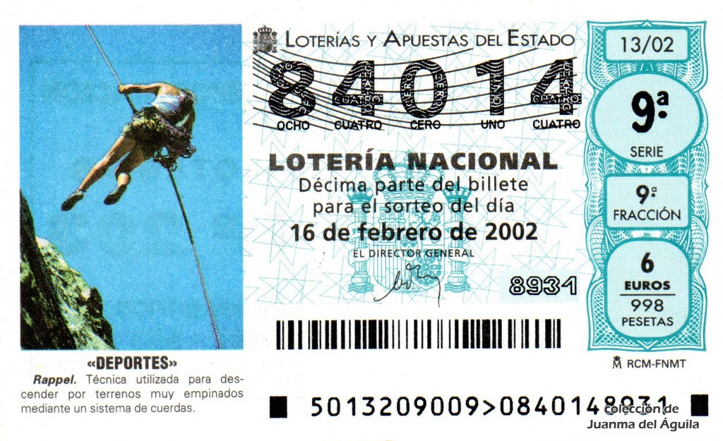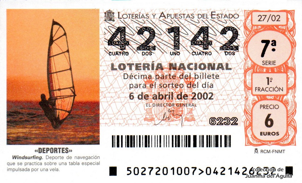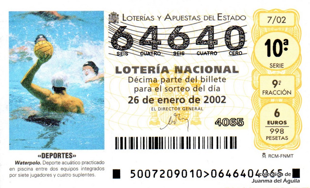 La Lotería Nacional del año 2002 está dedicada a "Deportes".