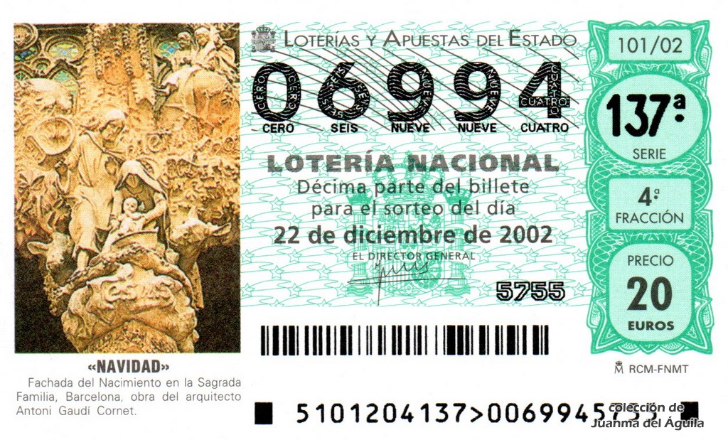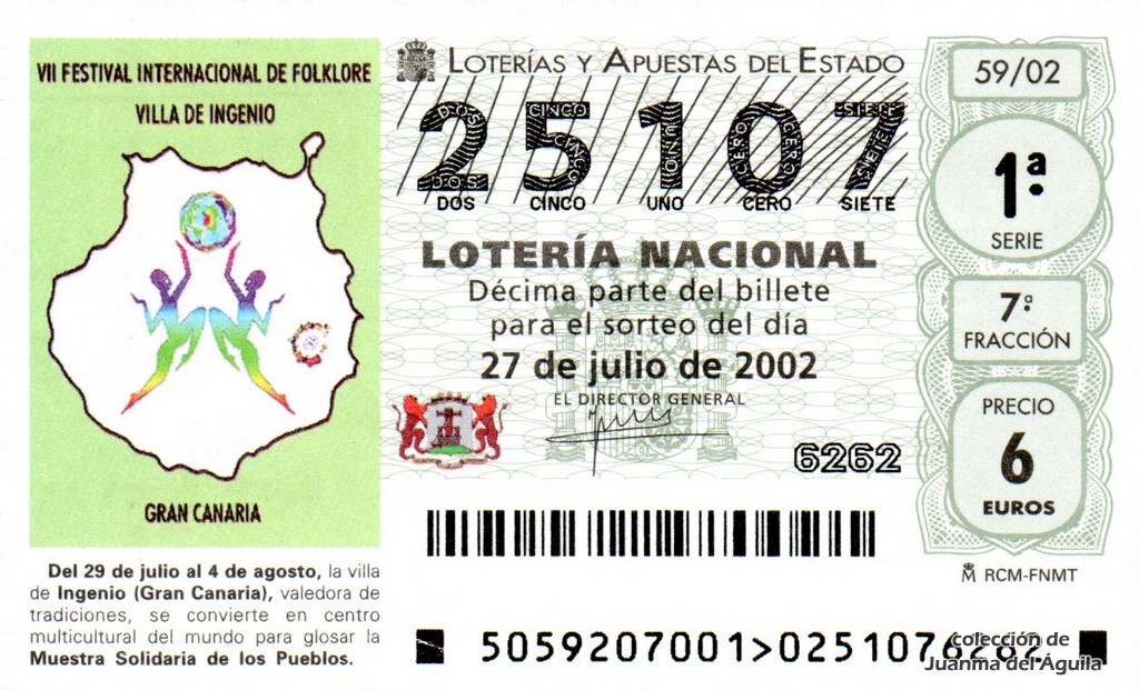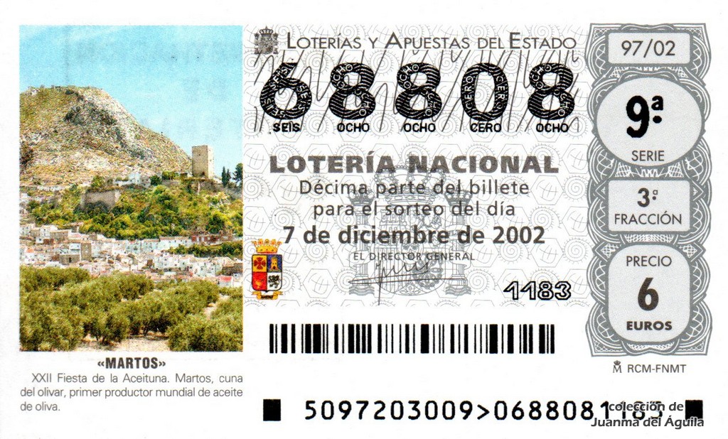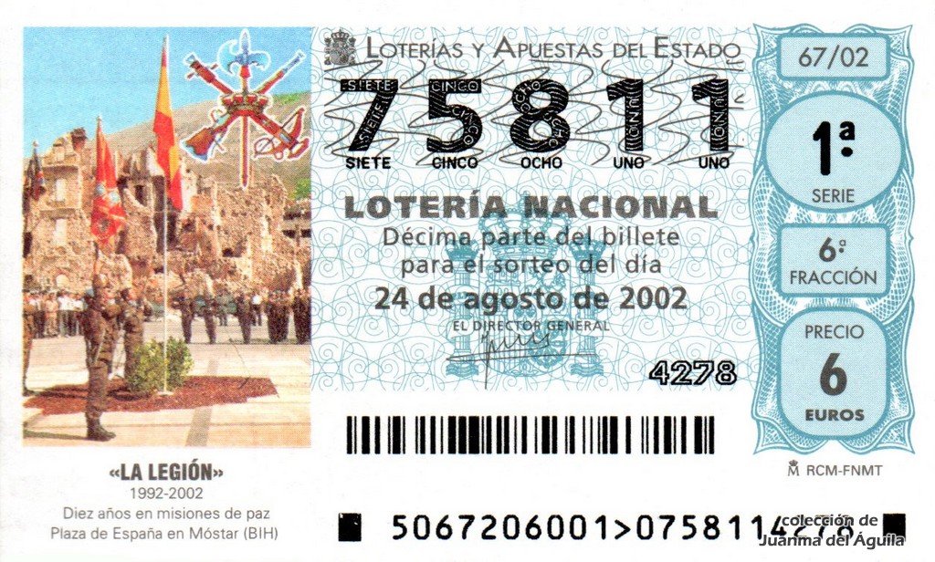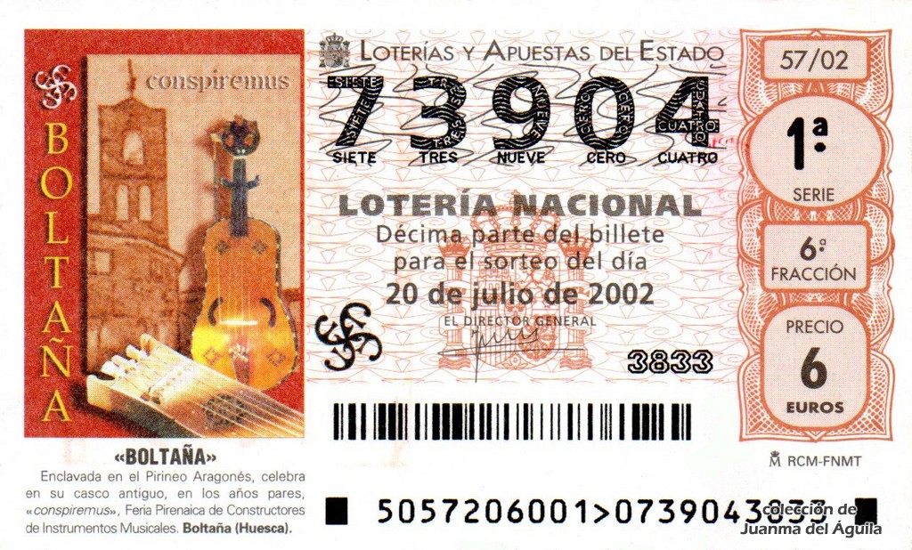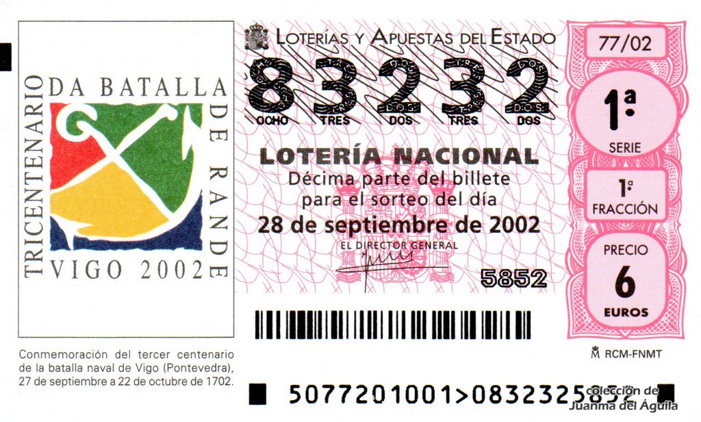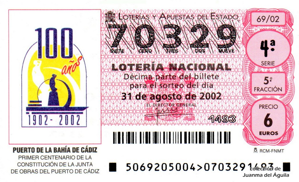 La Lotería Nacional del año 2002 está dedicada a "Deportes".