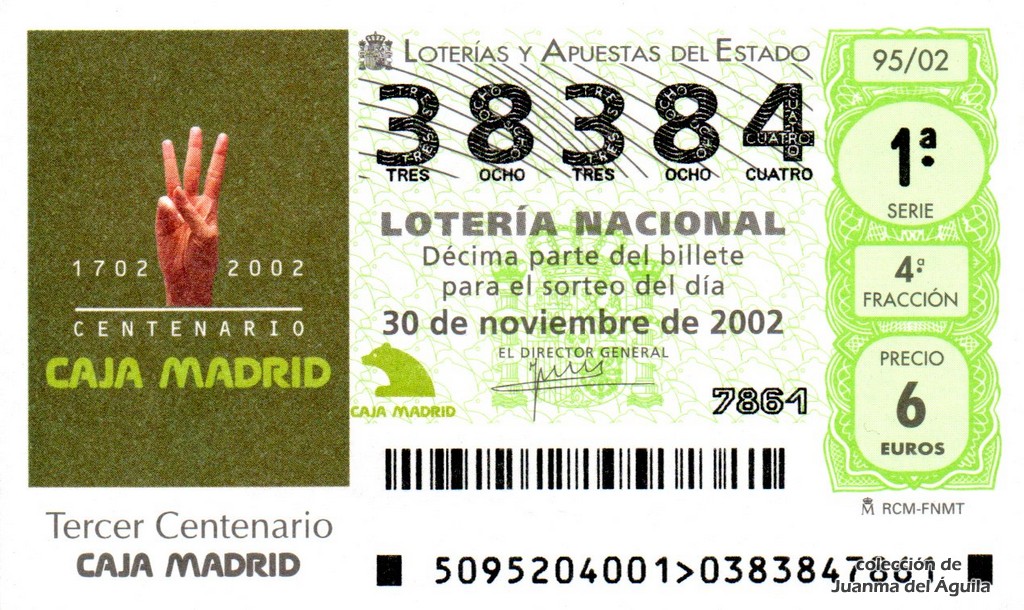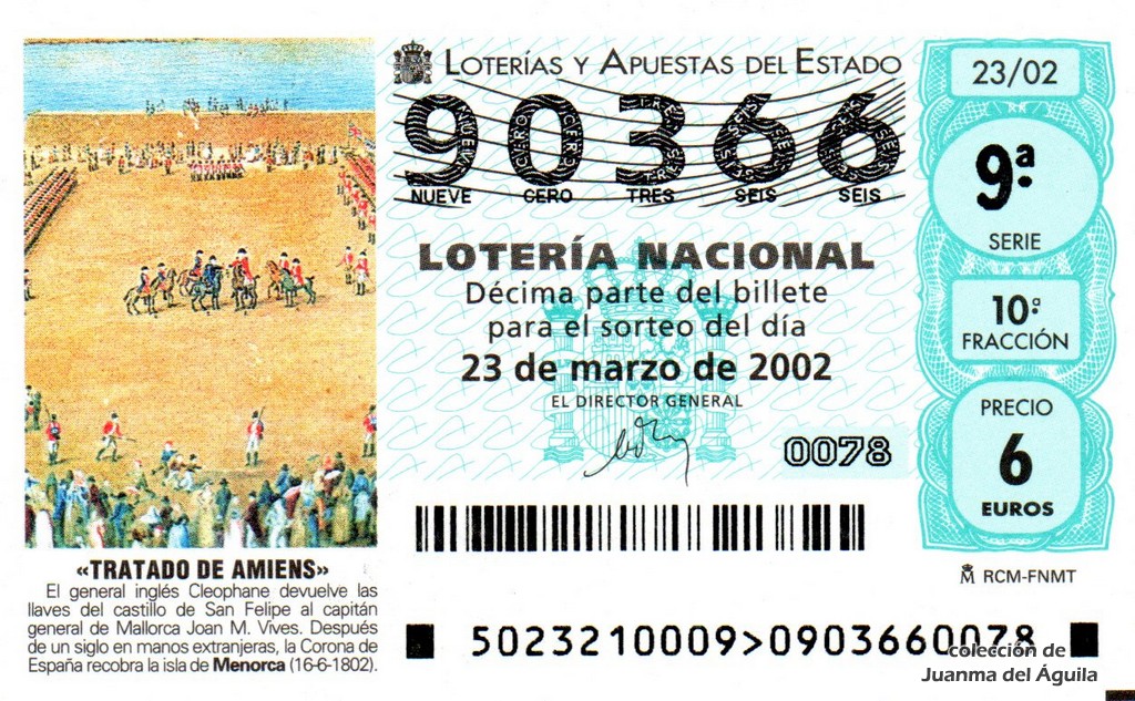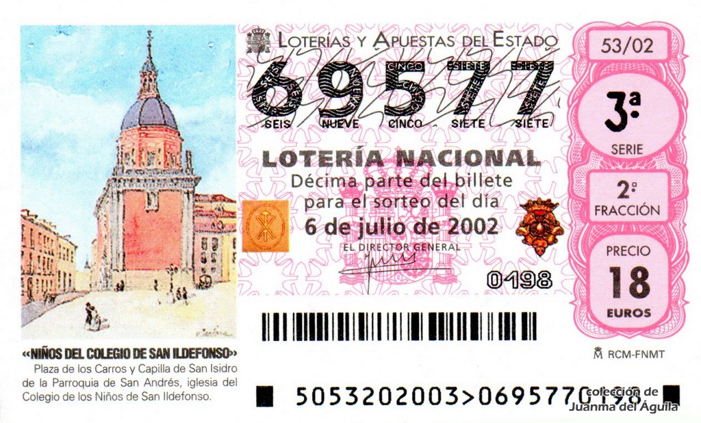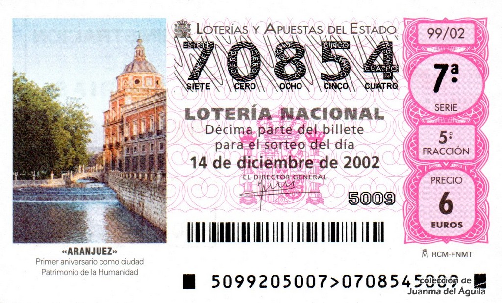 Precio del décimo: 18,03 euros / 3.000 pesetas