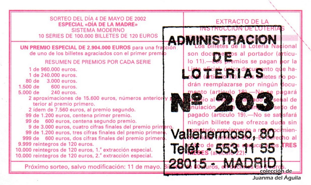 Décimo: 84014 serie 9ª fracción 9ª de la administración nº 203 de Madrid
