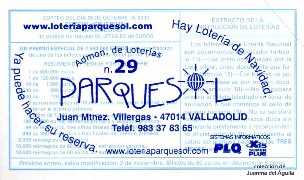 Décimo: 43093 serie 7ª fracción 5ª de la administración nº 29 de Valladolid. PARQUESOL