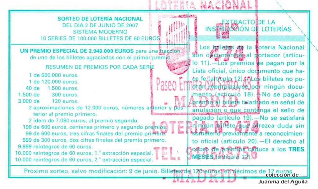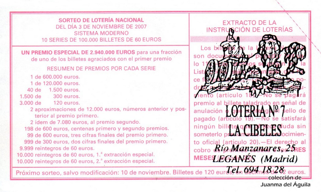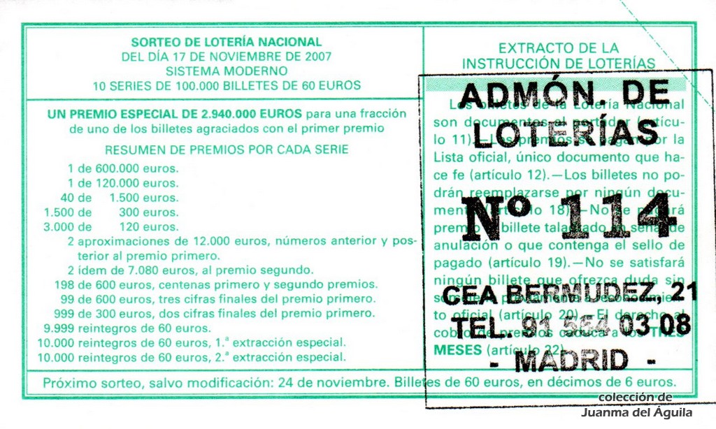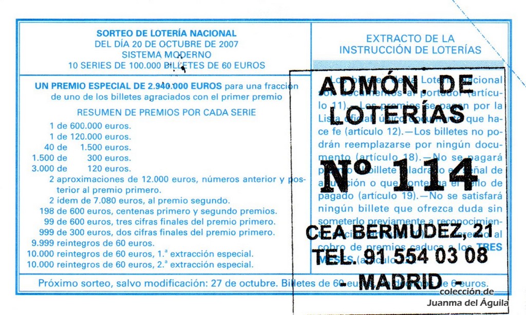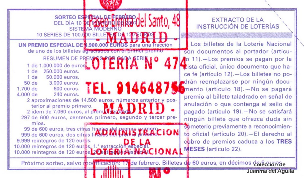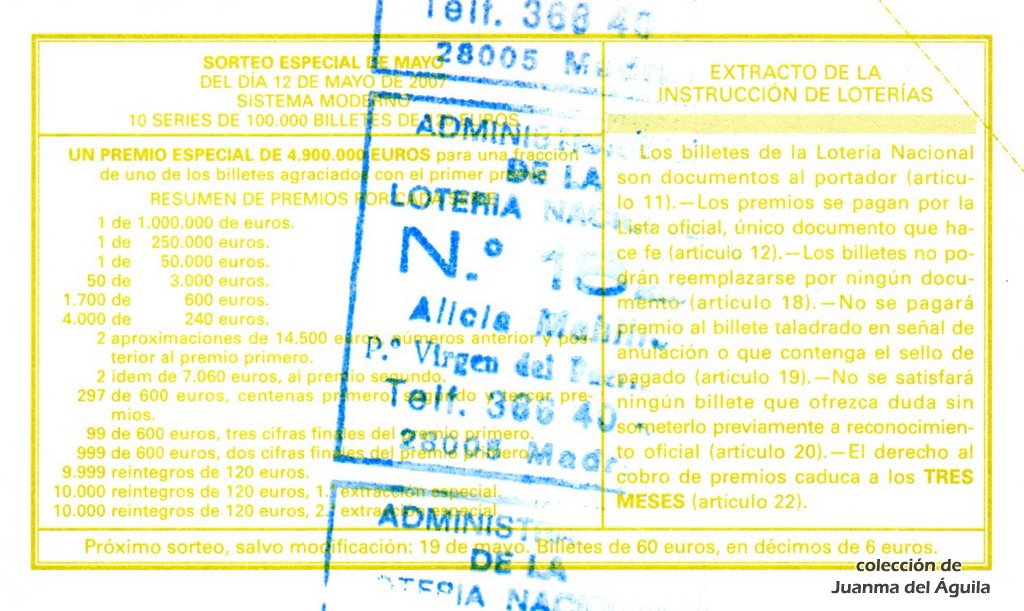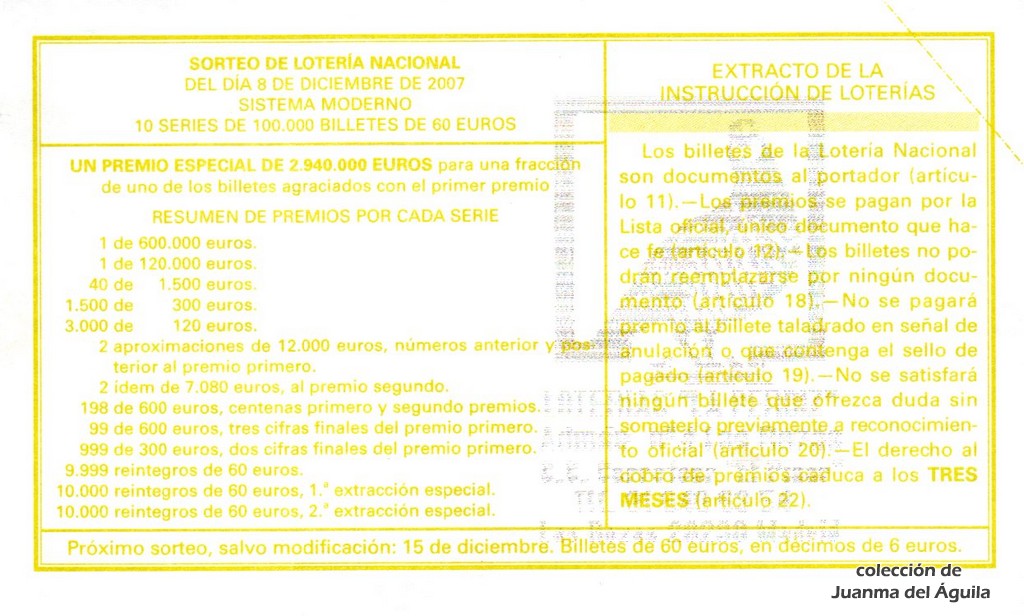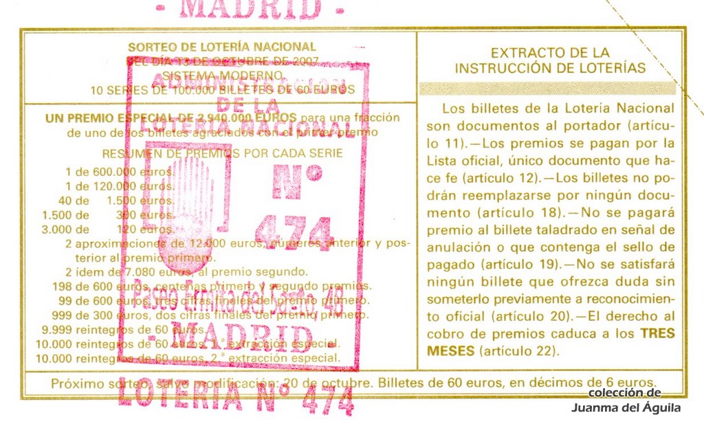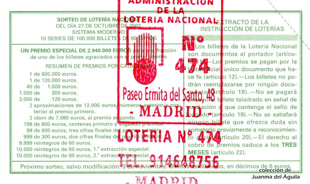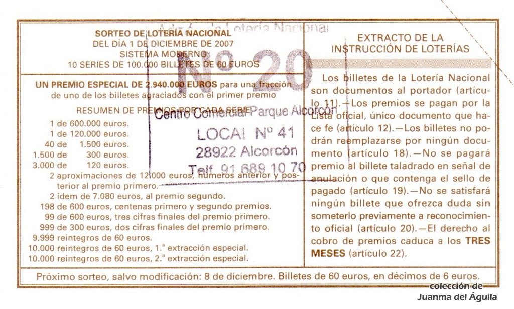 Precio del décimo: 20 euros