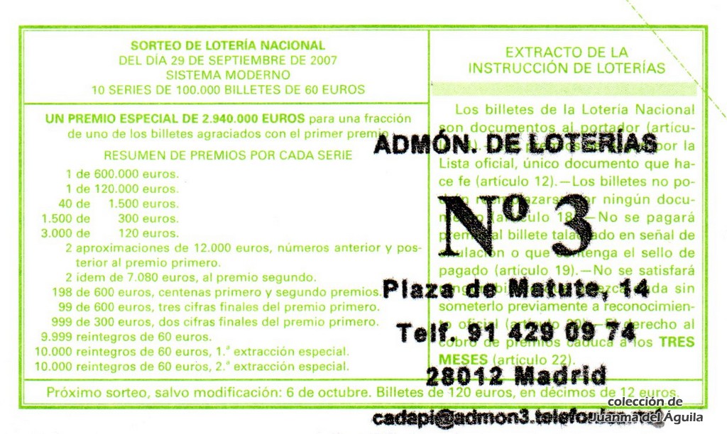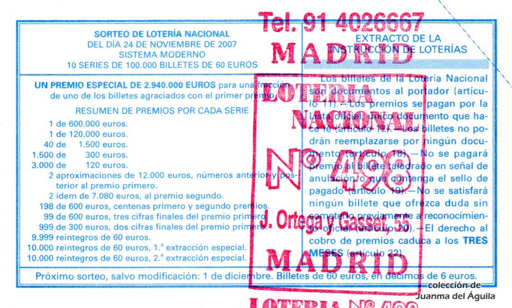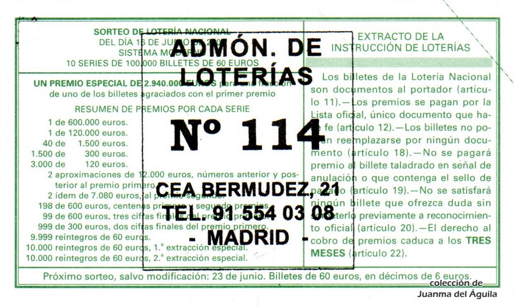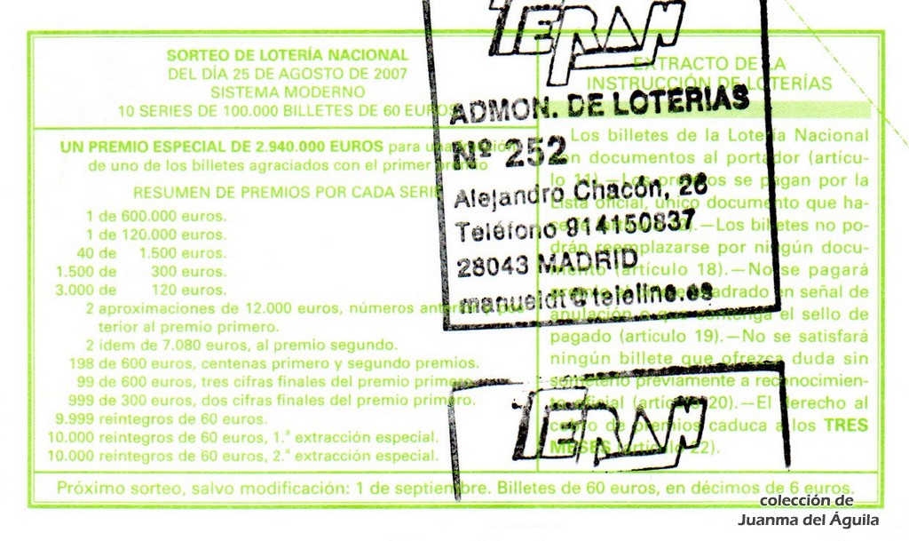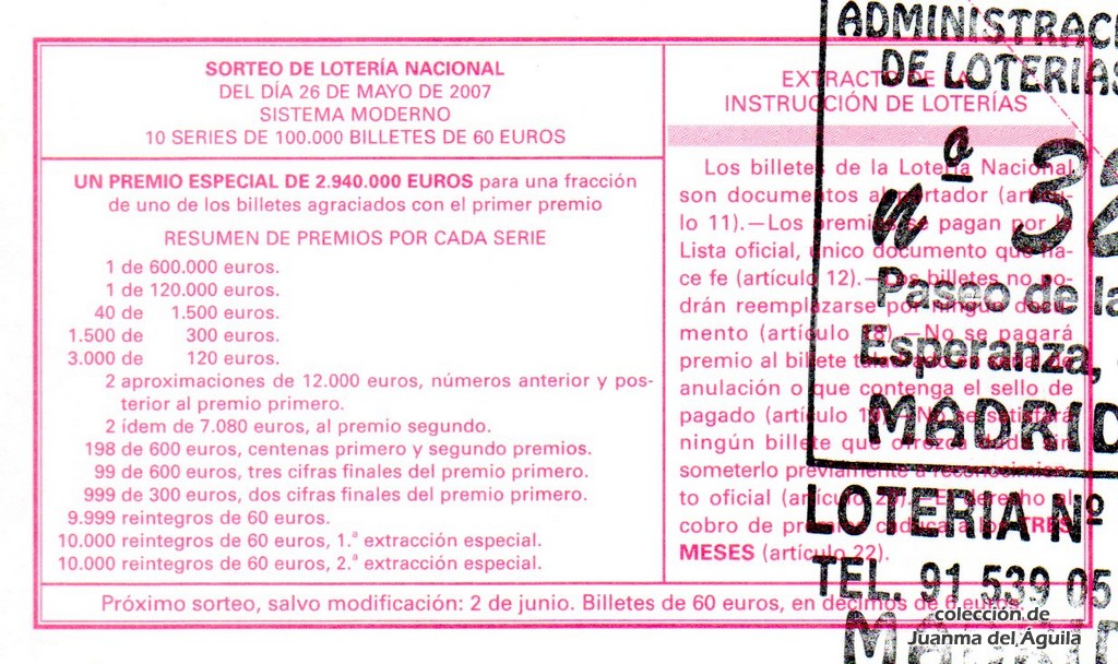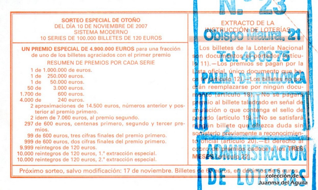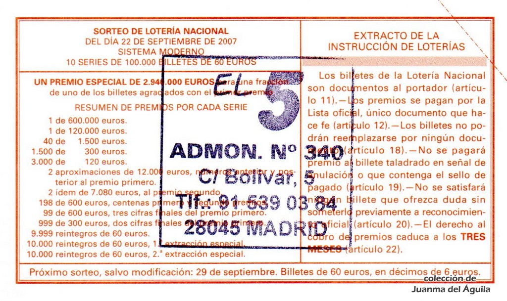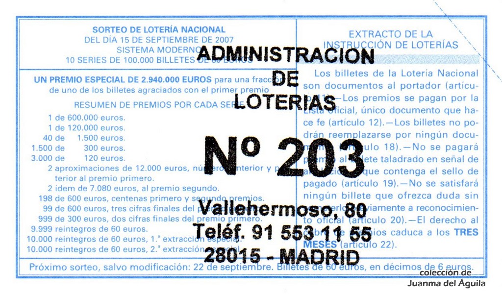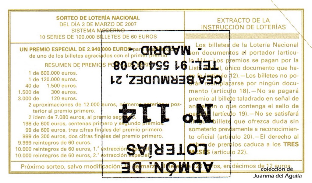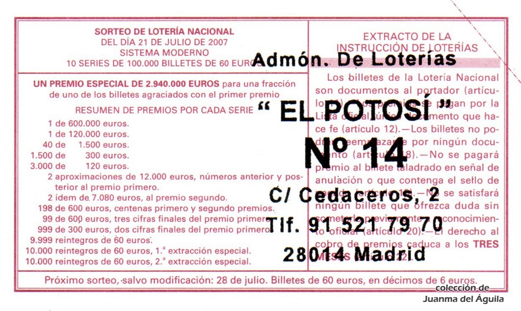 Precio del décimo: 20 euros