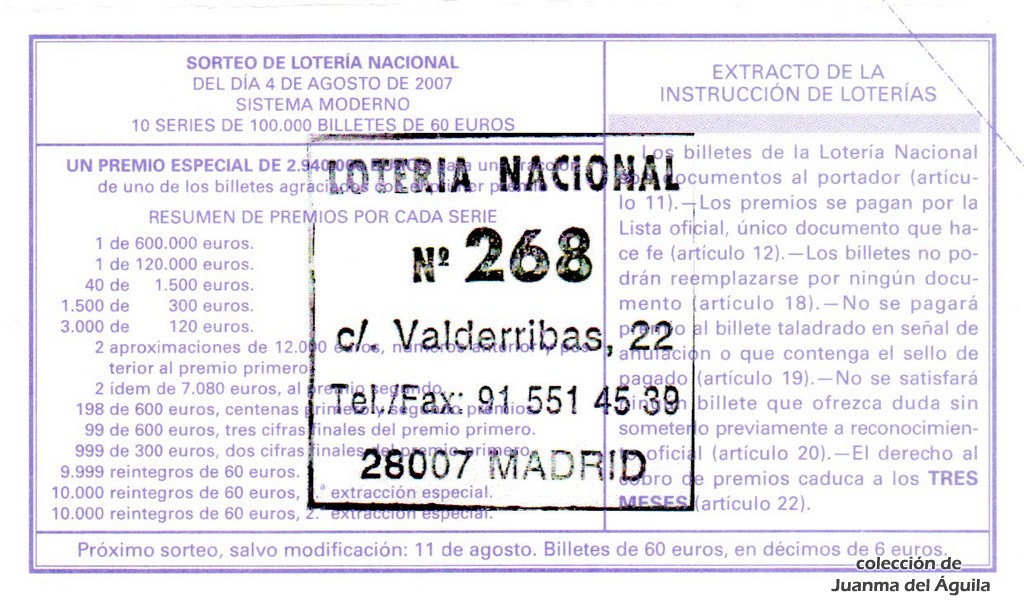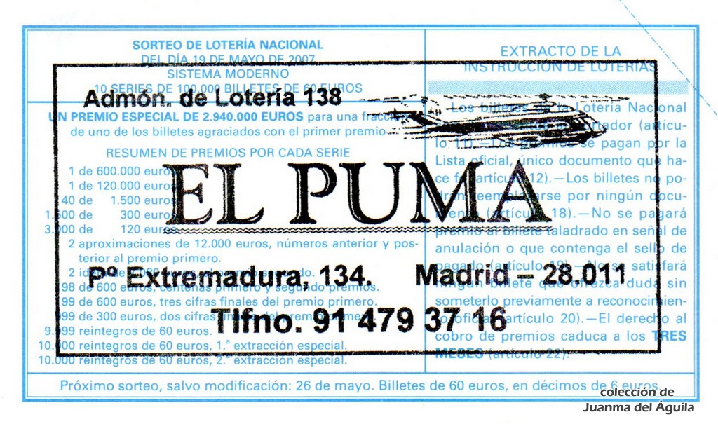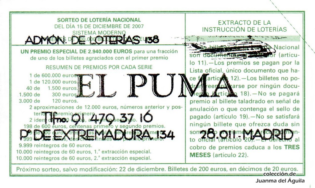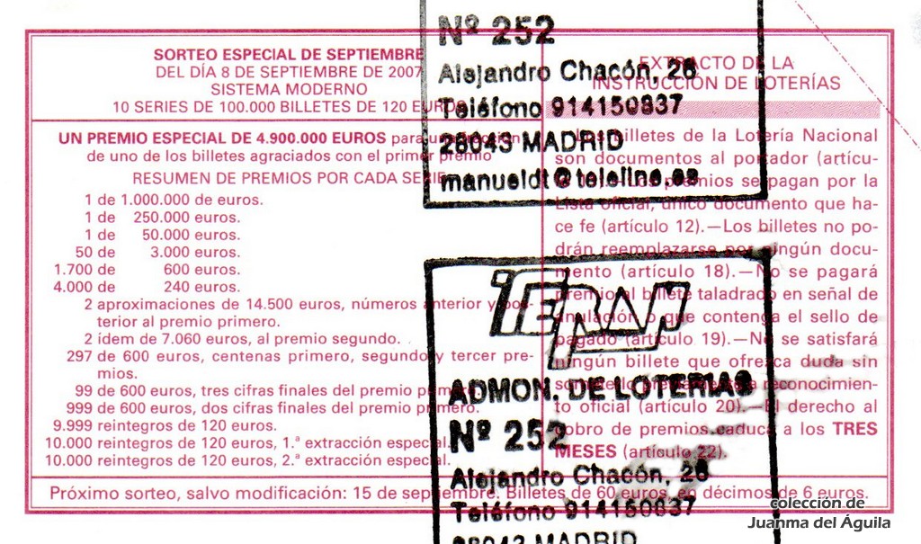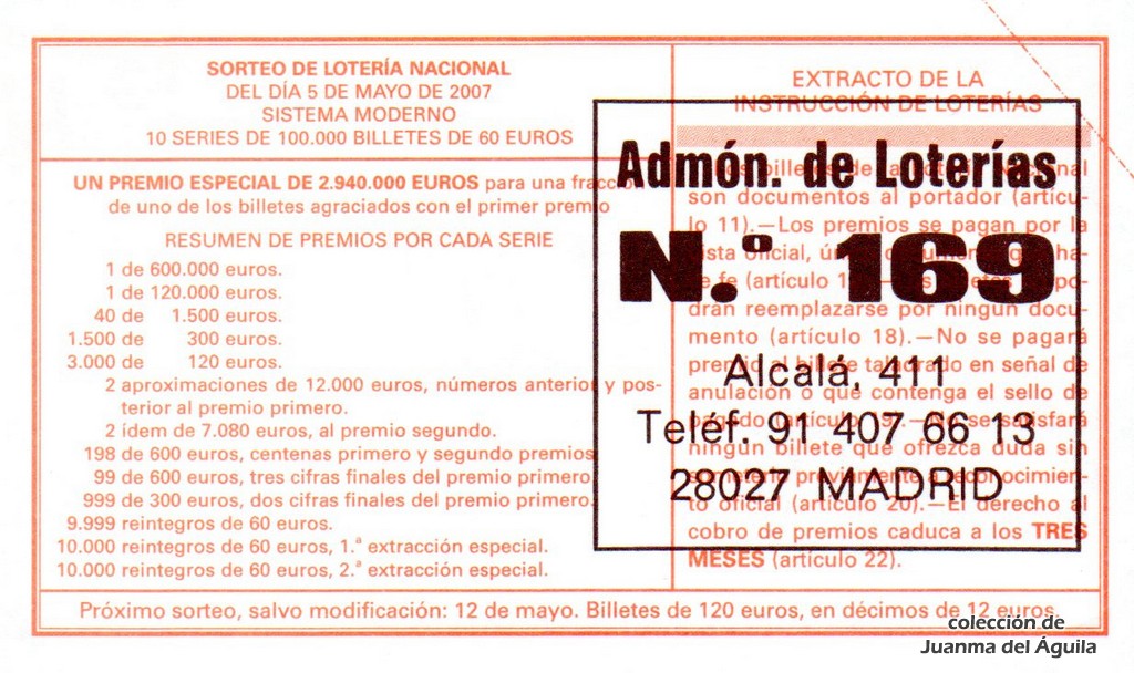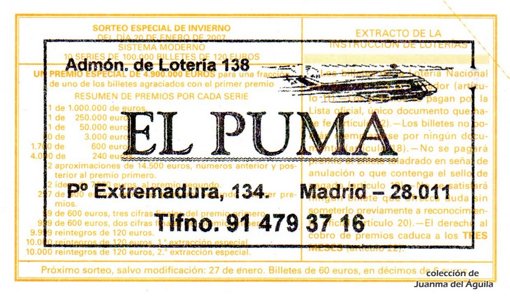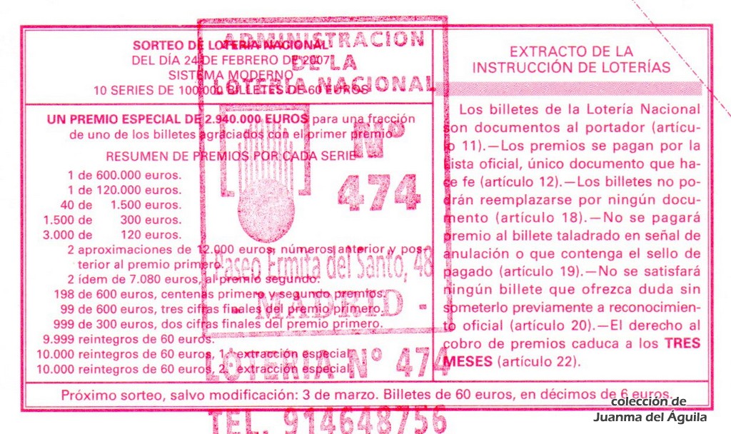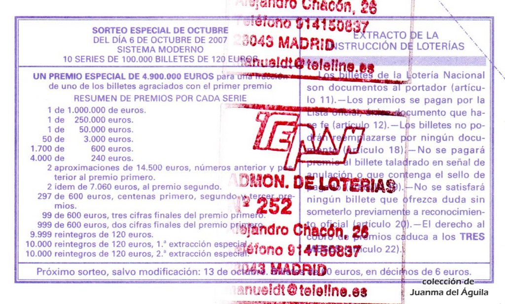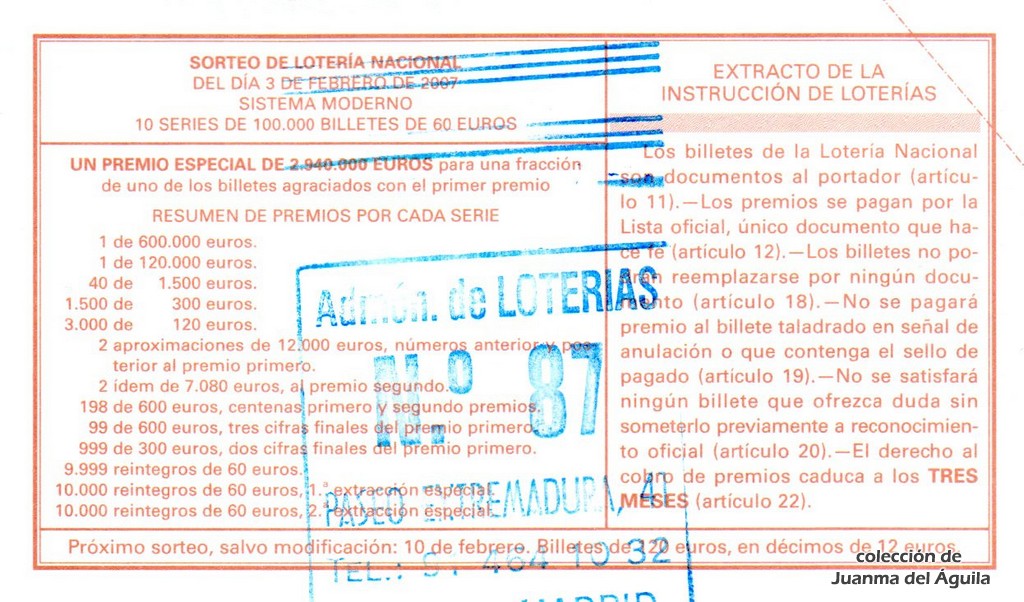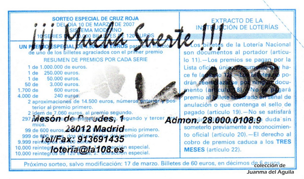 Precio del décimo: 20 euros