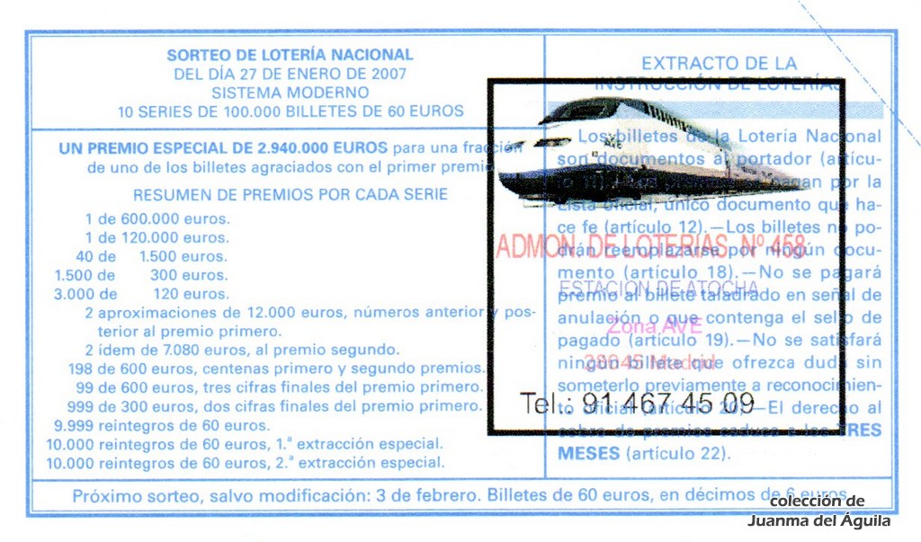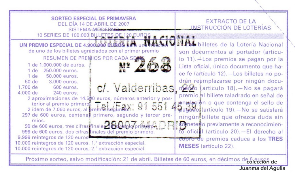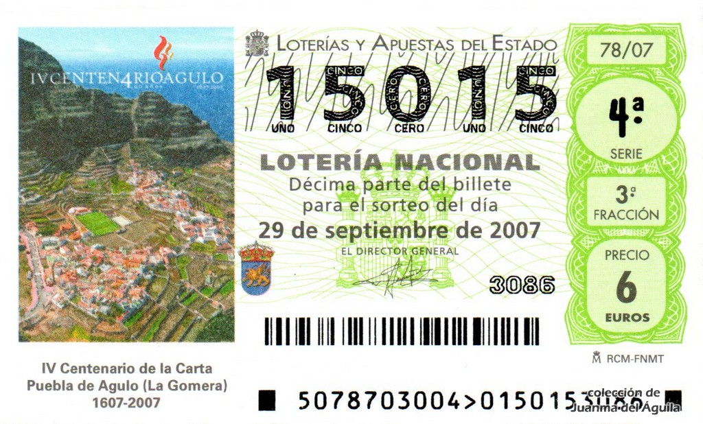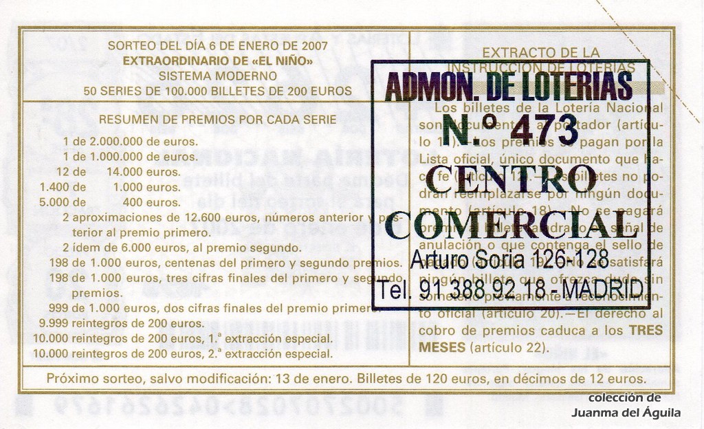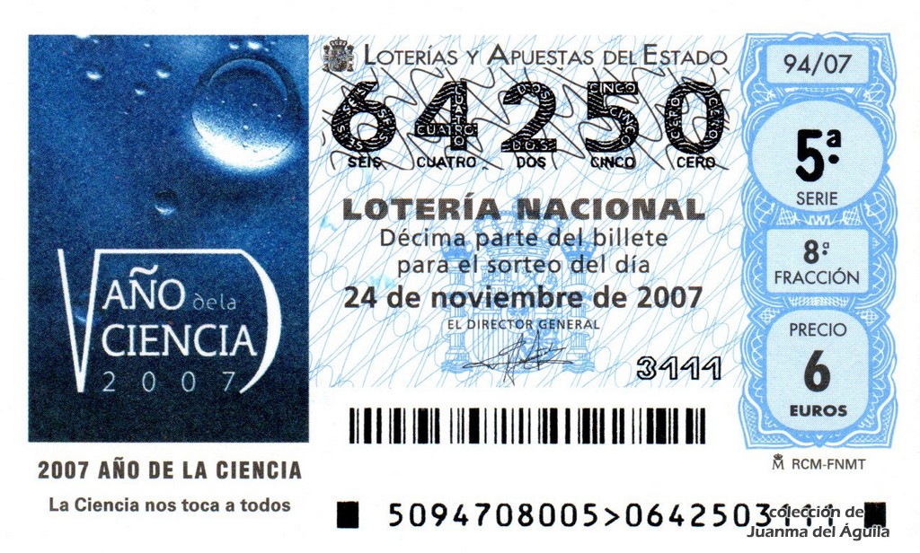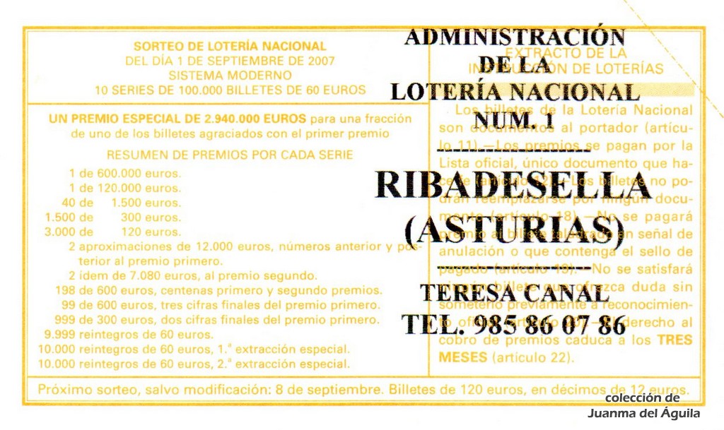 Localidades agraciadas: Yanes, Avilés, Nava, Almería (Tíjola), Madrid, Santiago de Compostela, Carballo, Bilbao, Alcañiz, Talavera de la Reina, Vic, El Prat de Llobregat, Sort y Santa Cruz de Tenerife