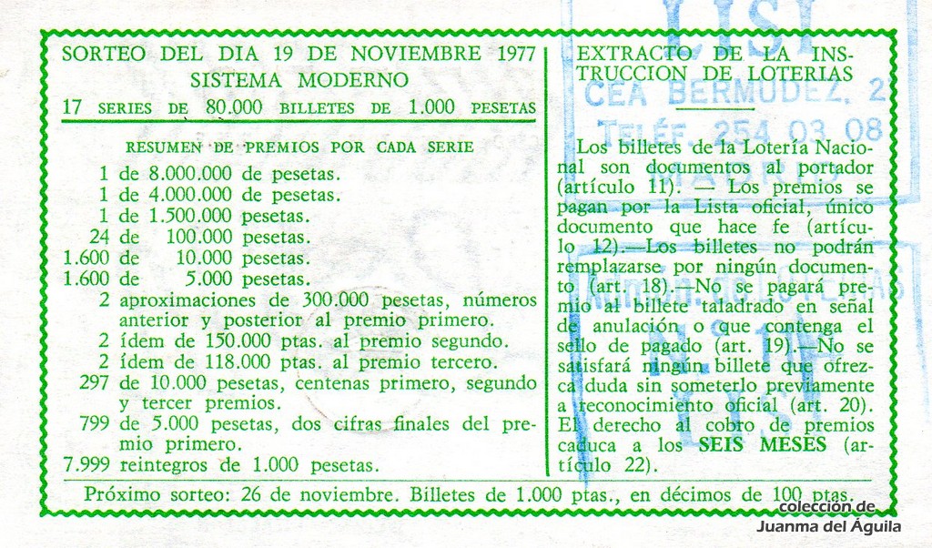 Sorteo: 45/1977 del Sabado 19 de Noviembre de 1977