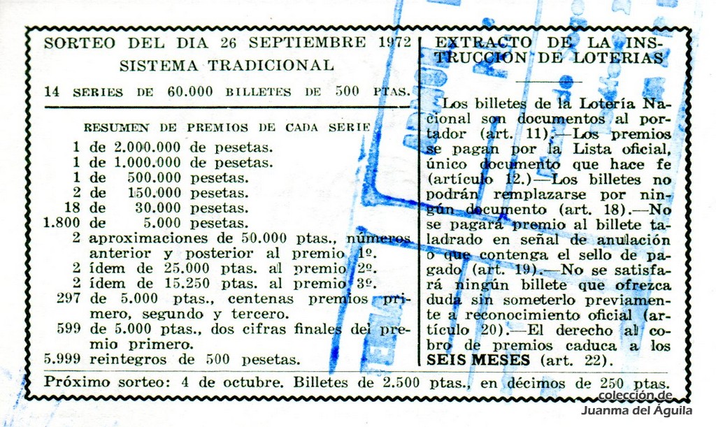 Sorteo: 30/1972 del Martes 26 de Septiembre de 1972